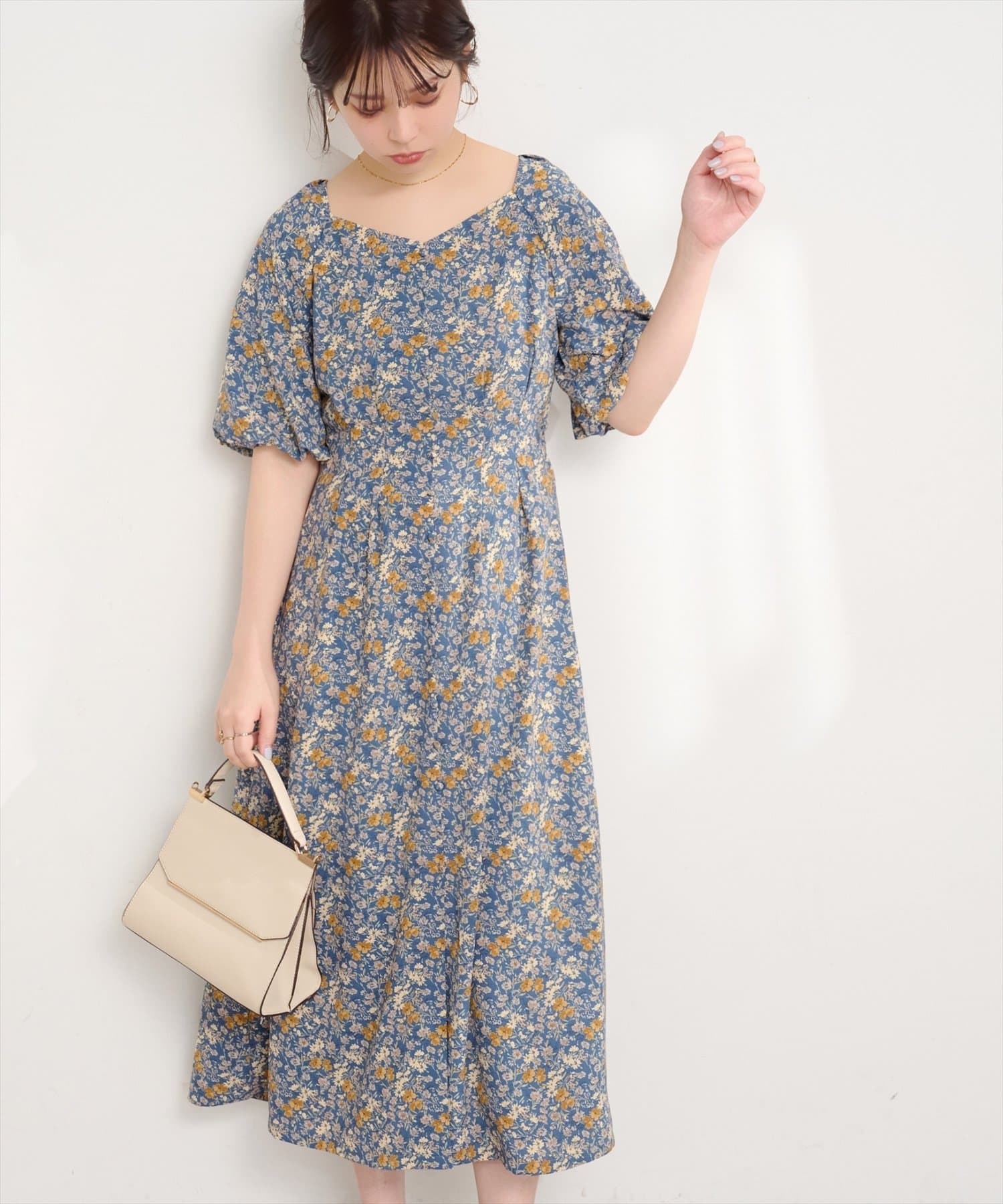 • natural couture(ナチュラルクチュール) バルーンスリーブガーリーワンピース