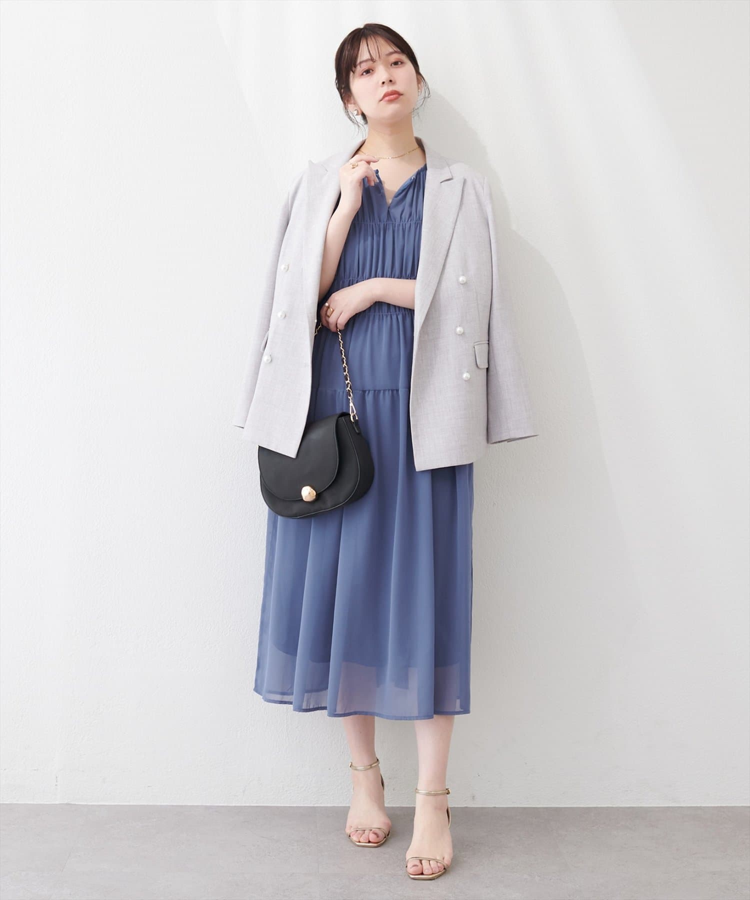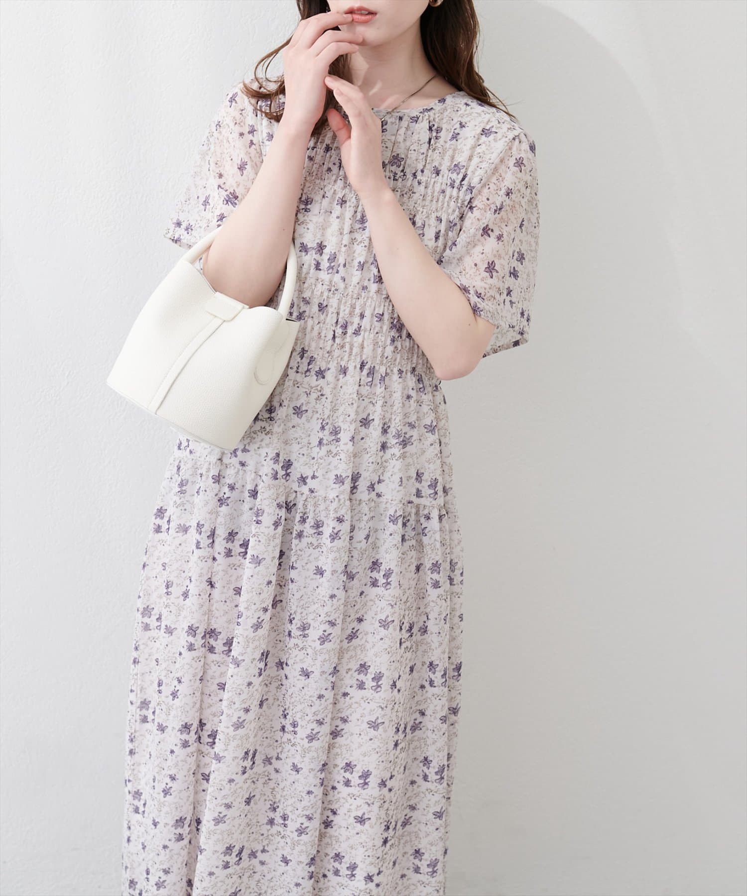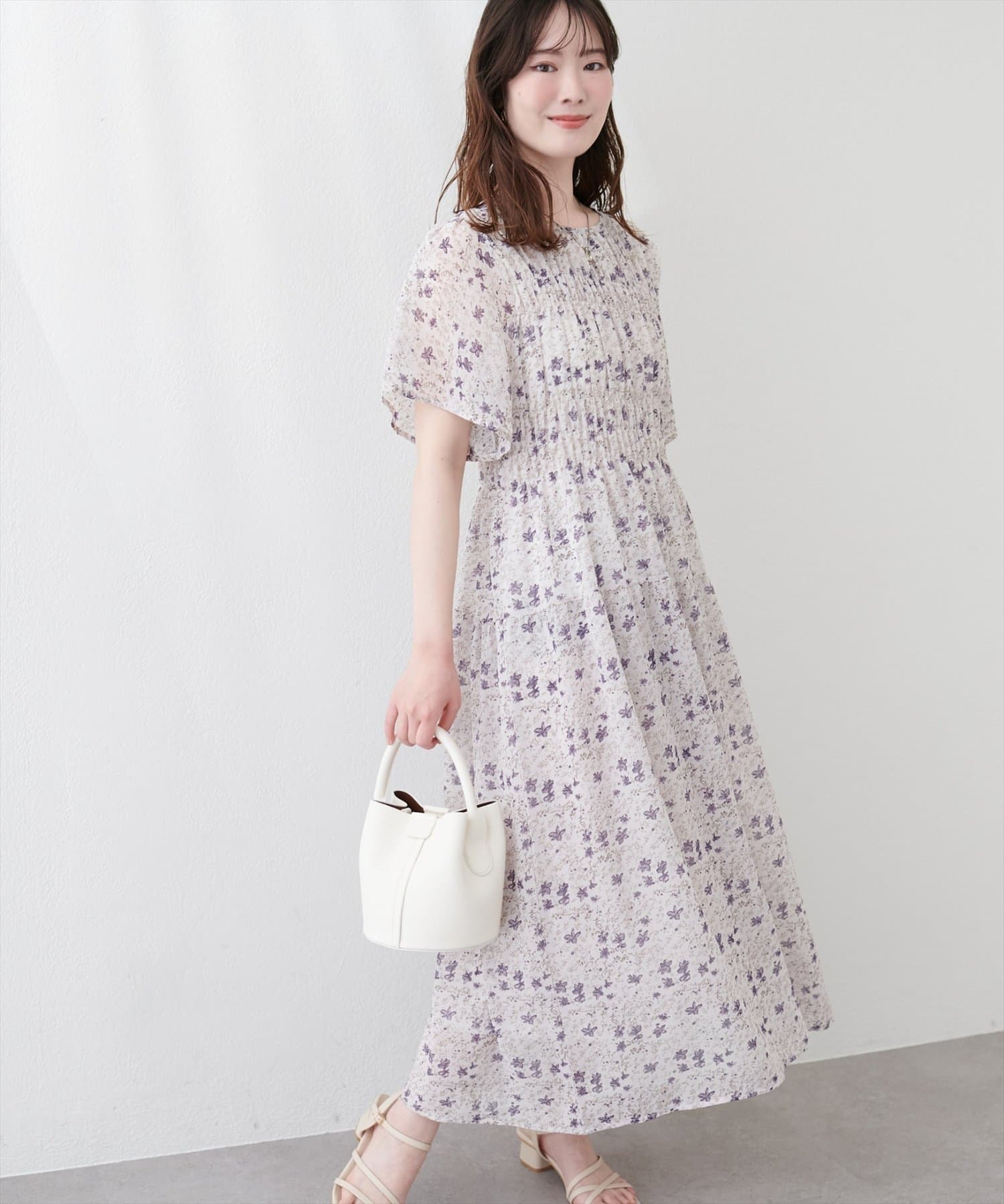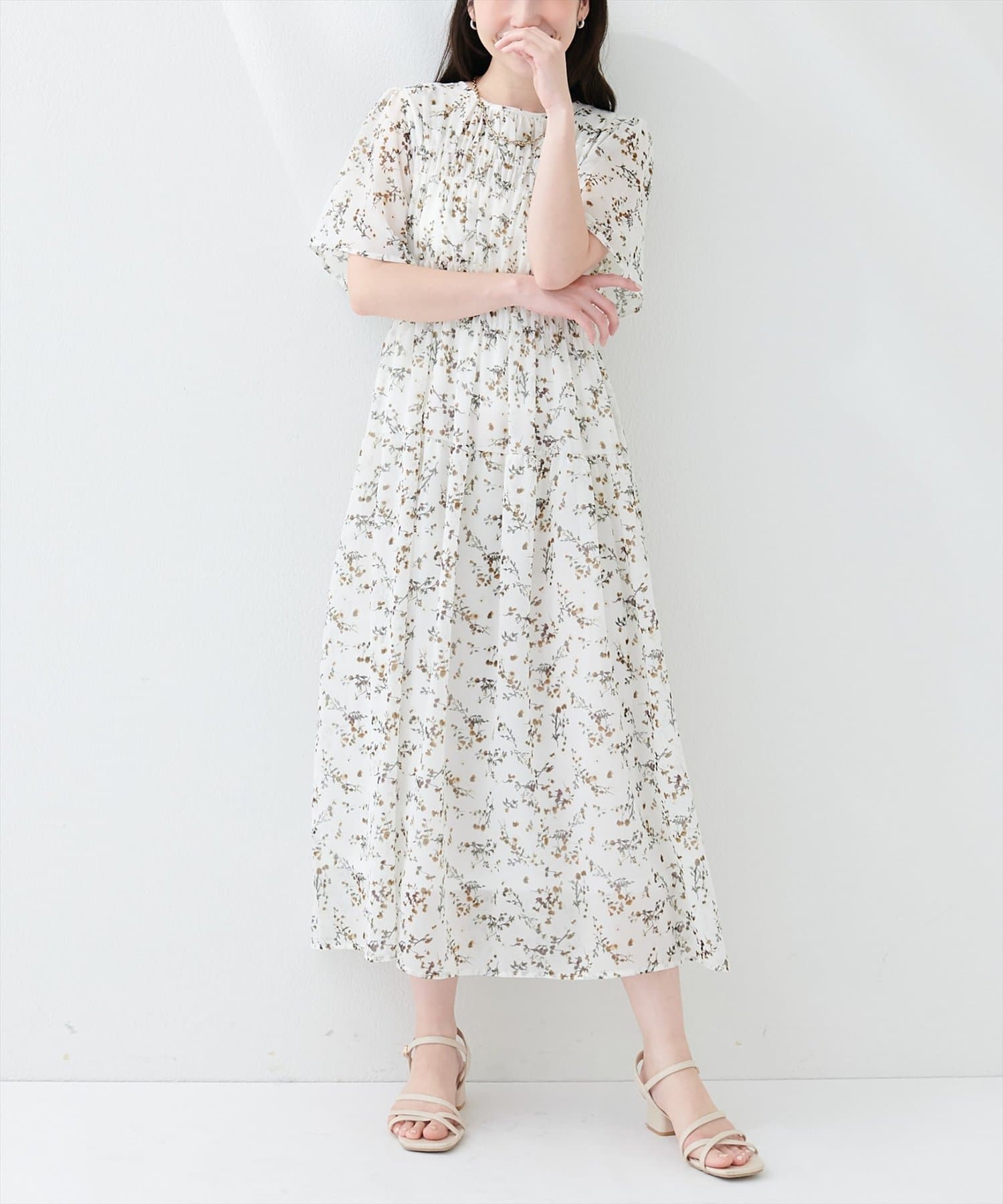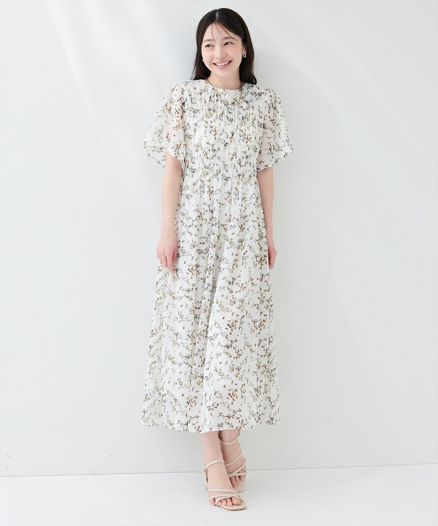 見頃部分にたっぷりシャーリングの入ったワンピース。