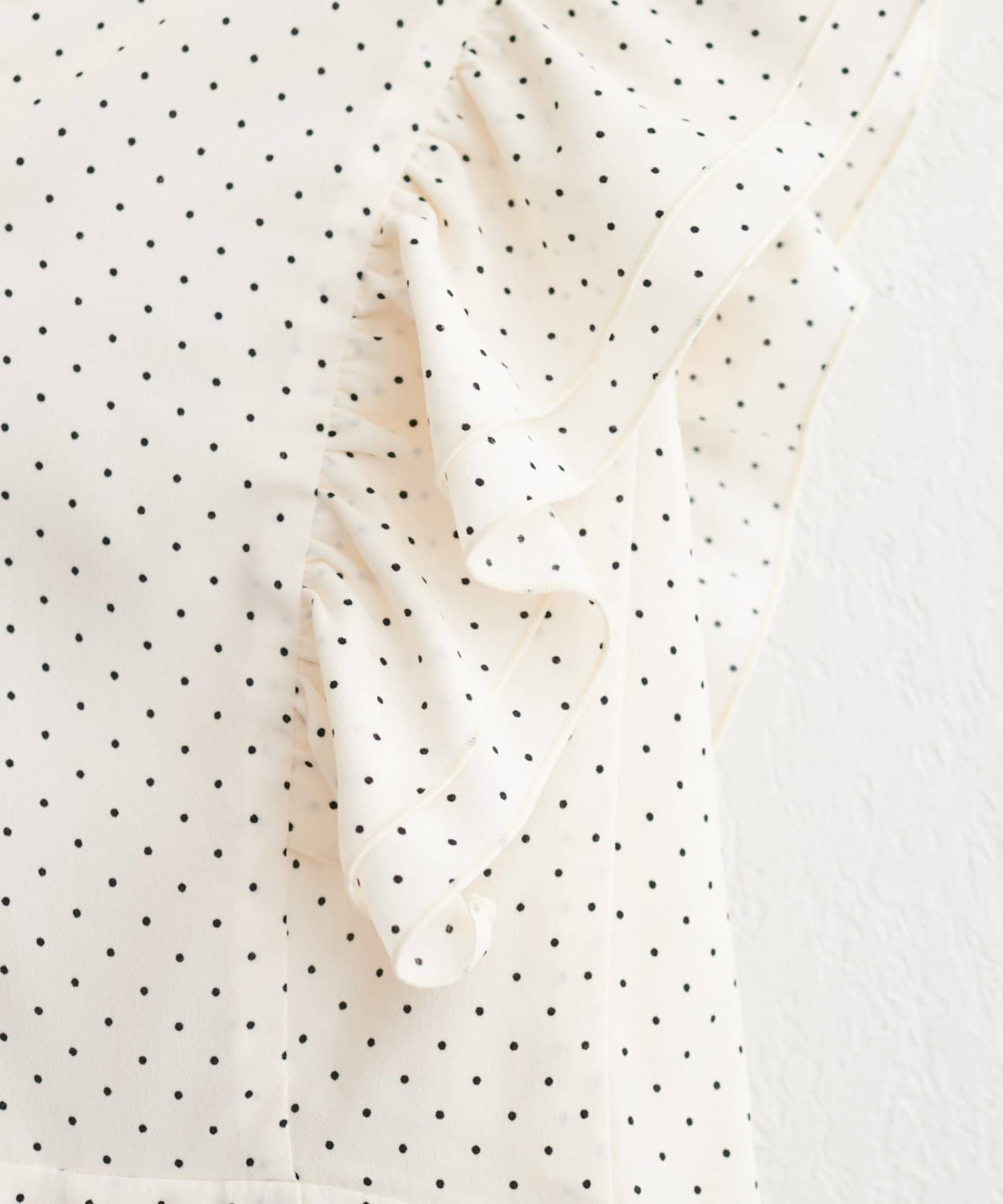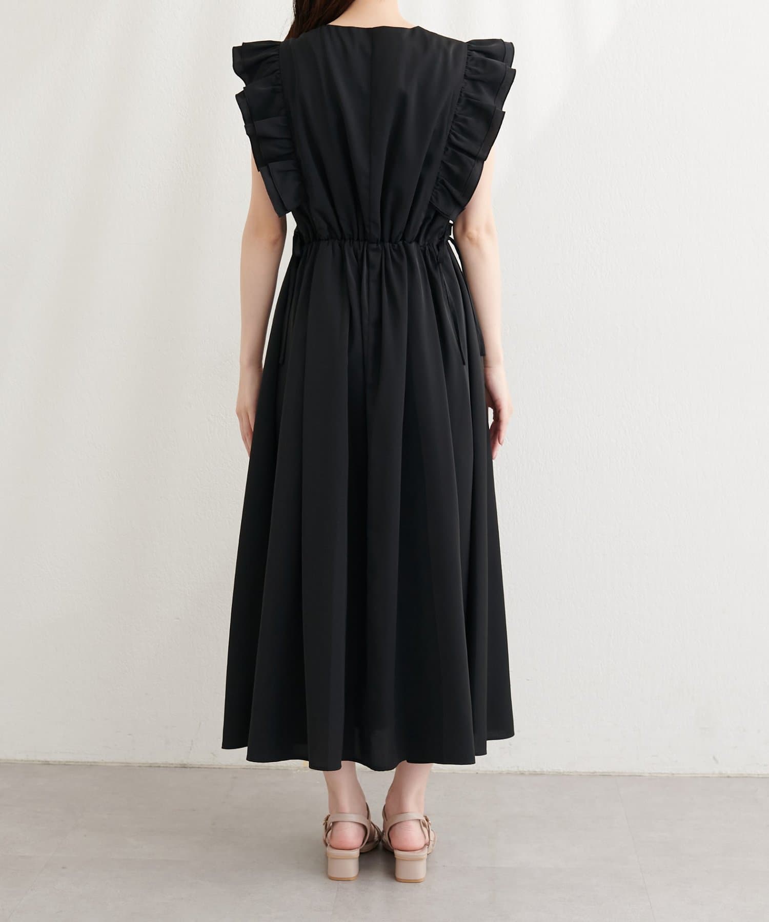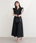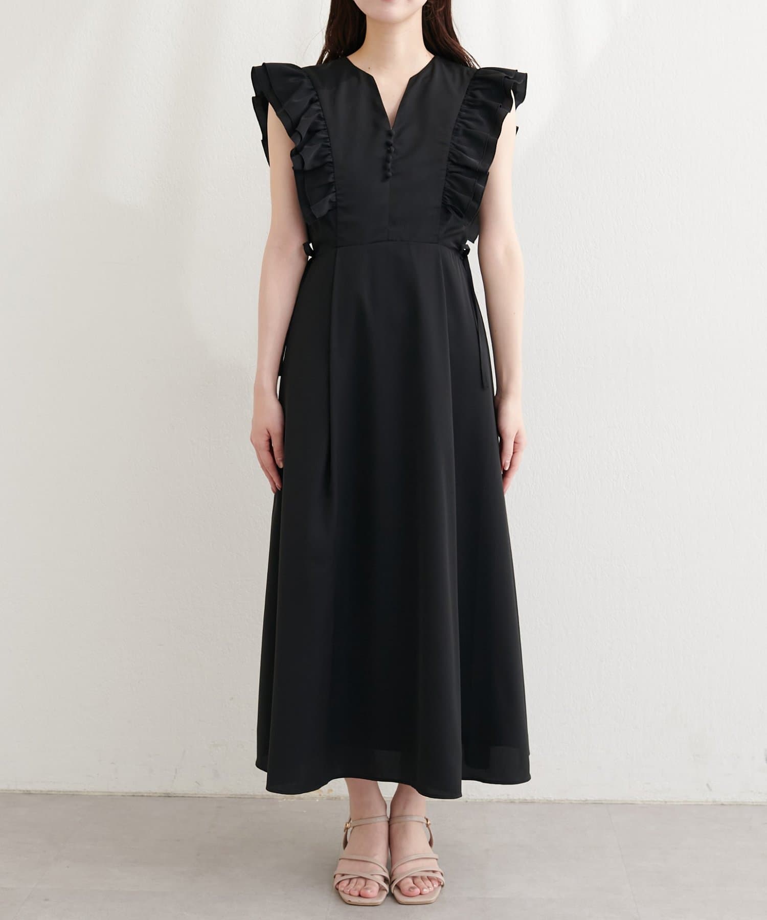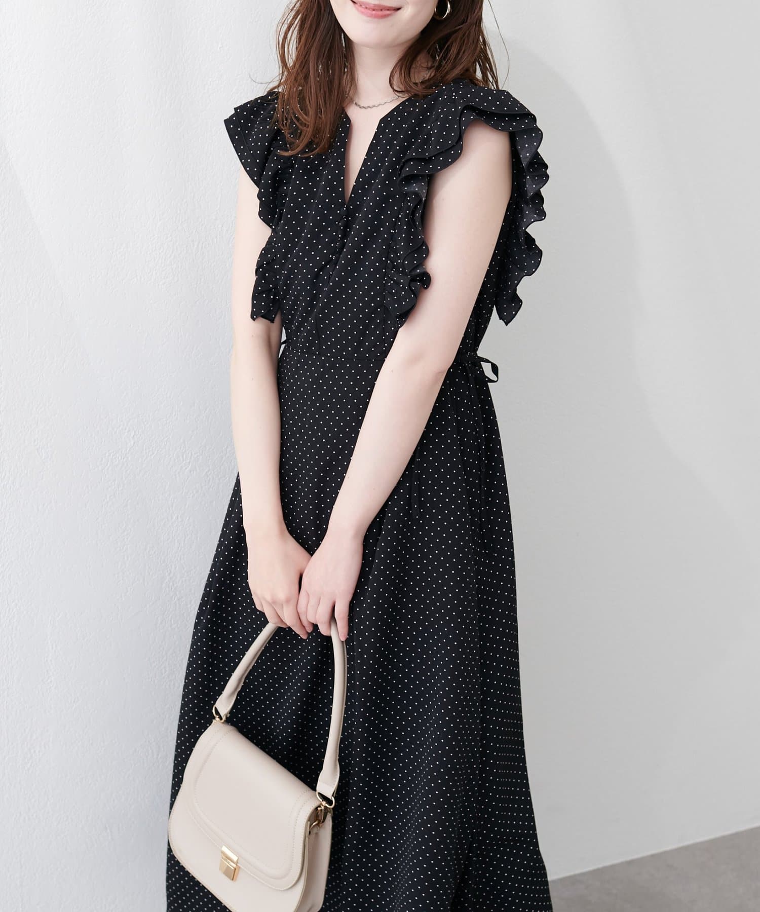 肩を飾るフリルは甘すぎない絶妙なボリューム感で、大人の女性にも似合う上品な可愛らしさを演出します。