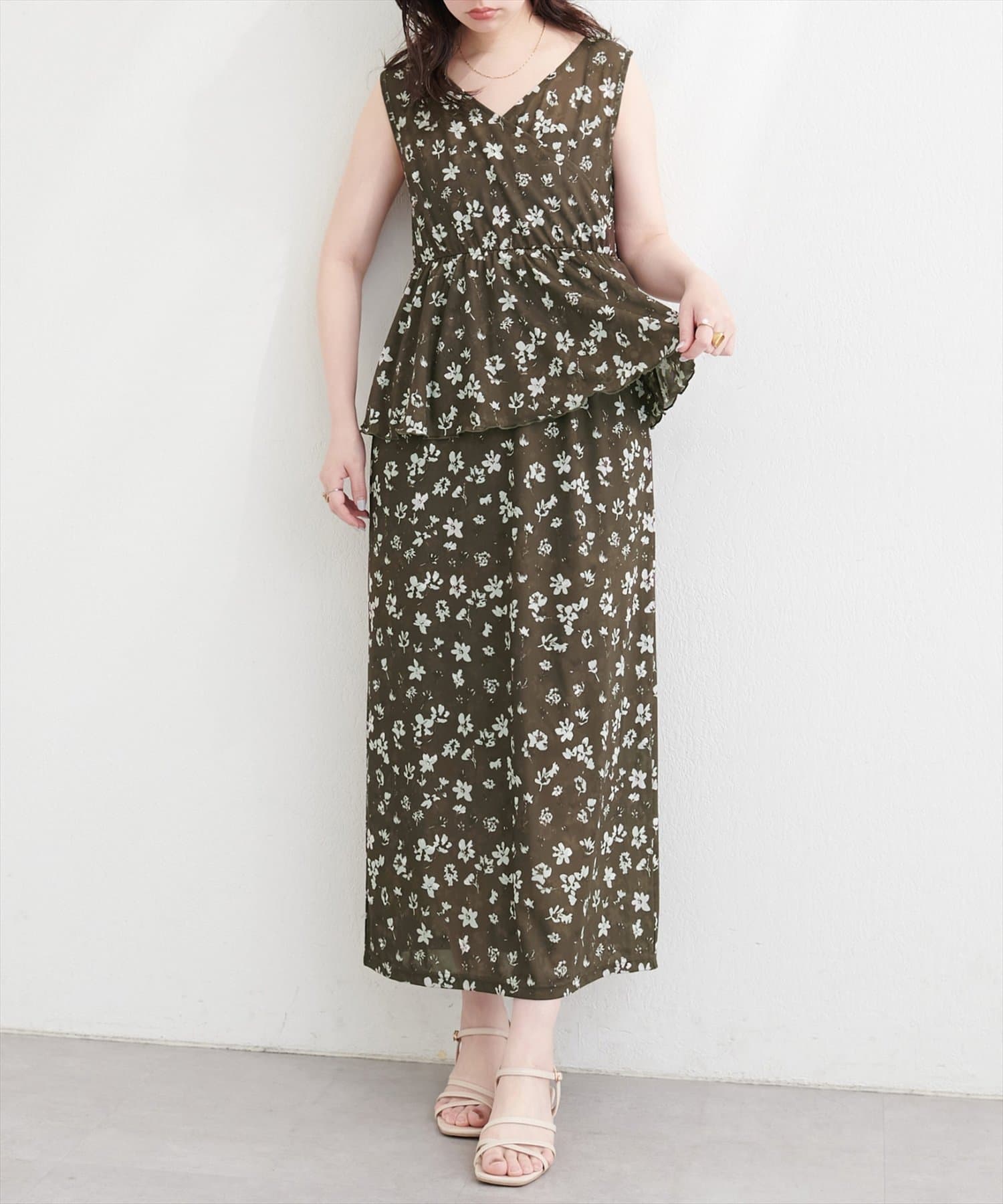ウエストから広がるペプラムが、気になるお腹周りをさりげなくカバーし、スタイルアップ効果も期待できます。