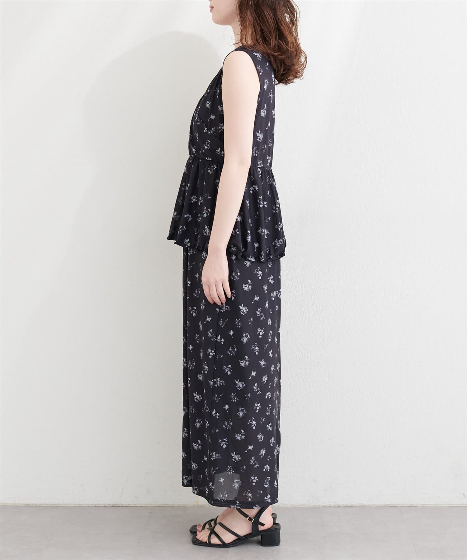スカート部分は、シルエットを拾い過ぎないデザインで、上身頃のペプラムデザインと相性のいいデザインに。