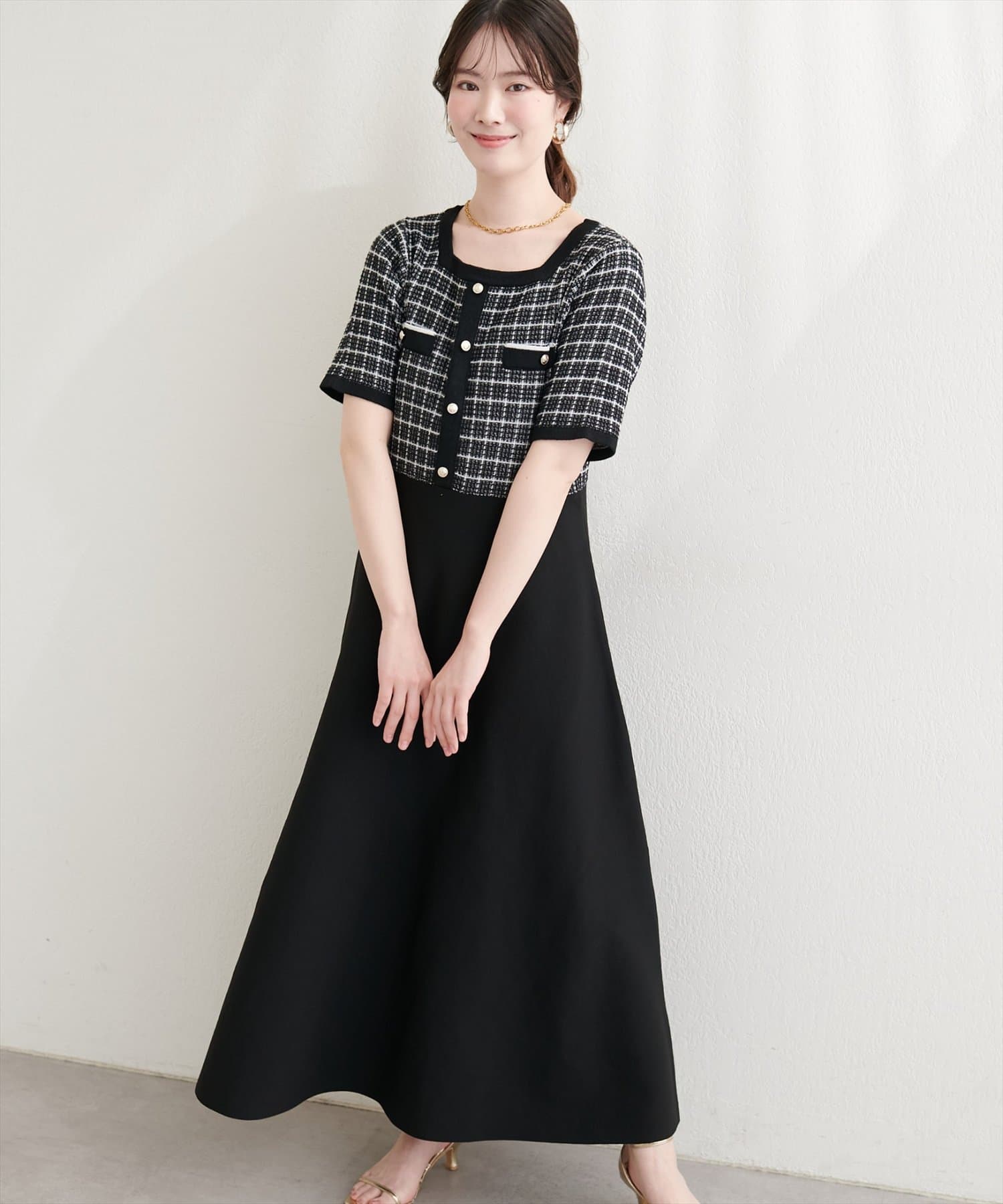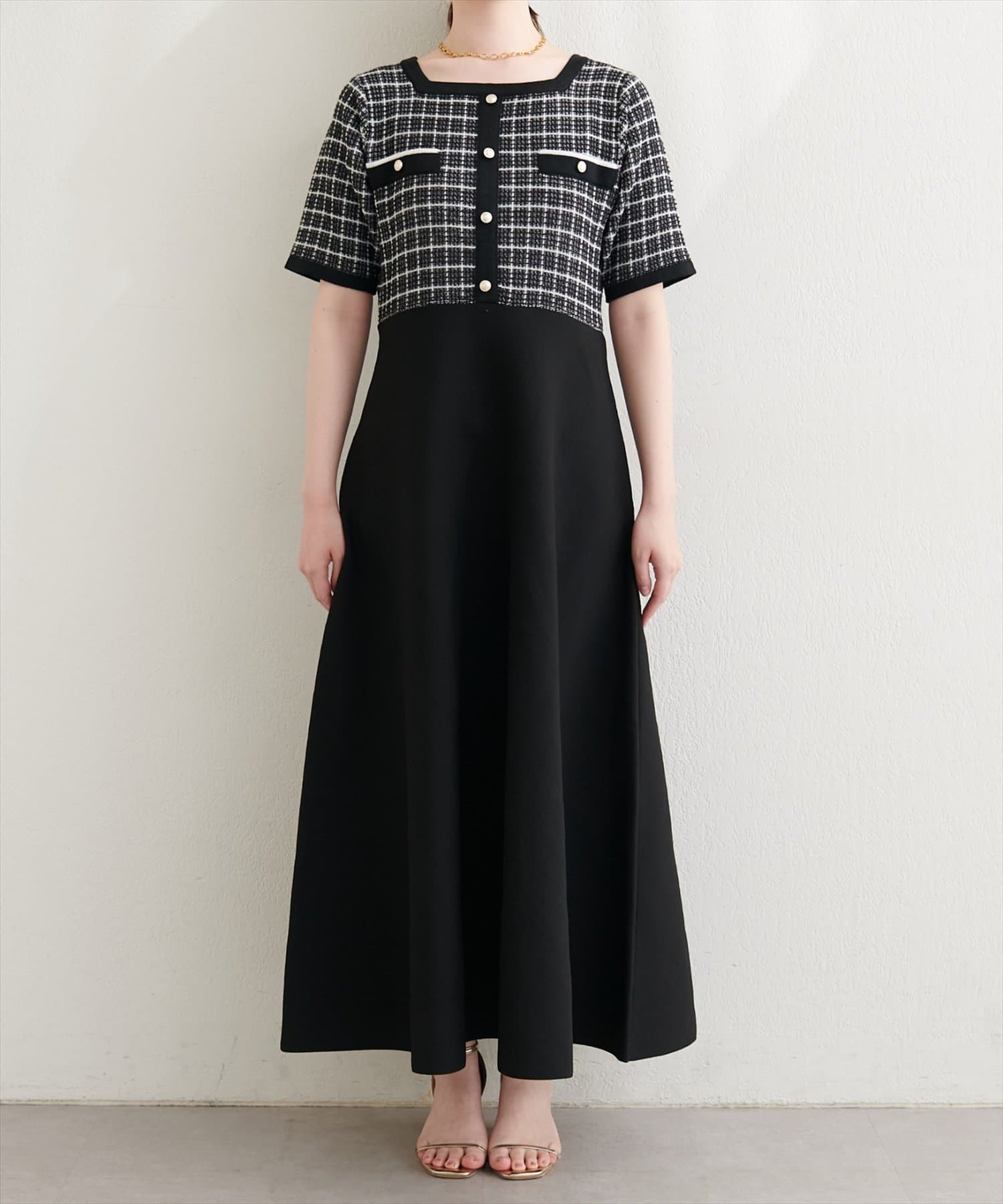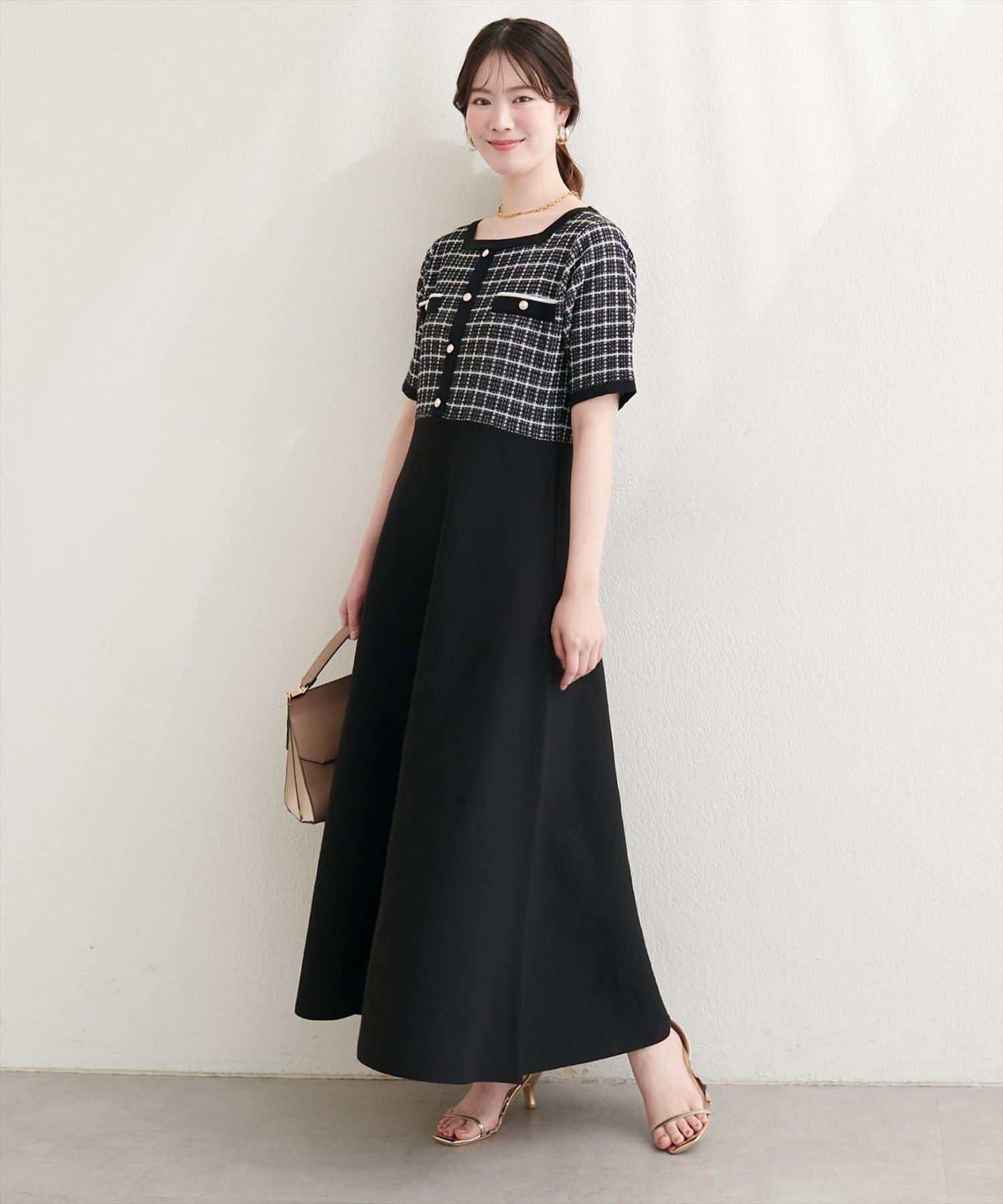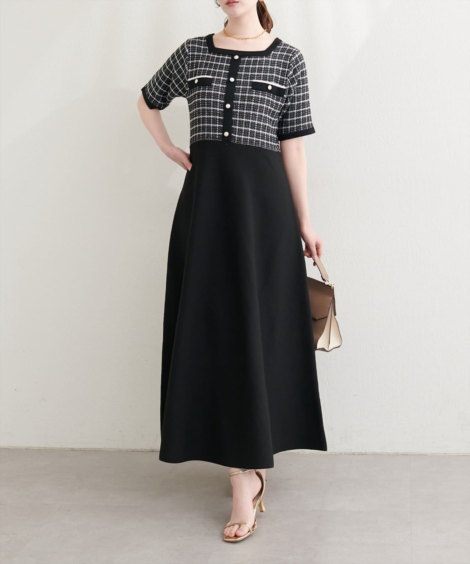 ツイードサマーニットワンピース