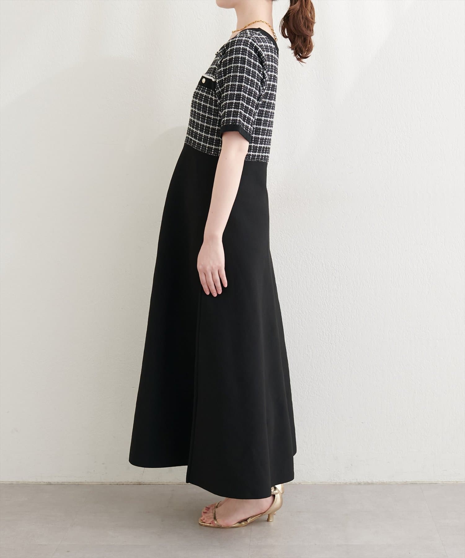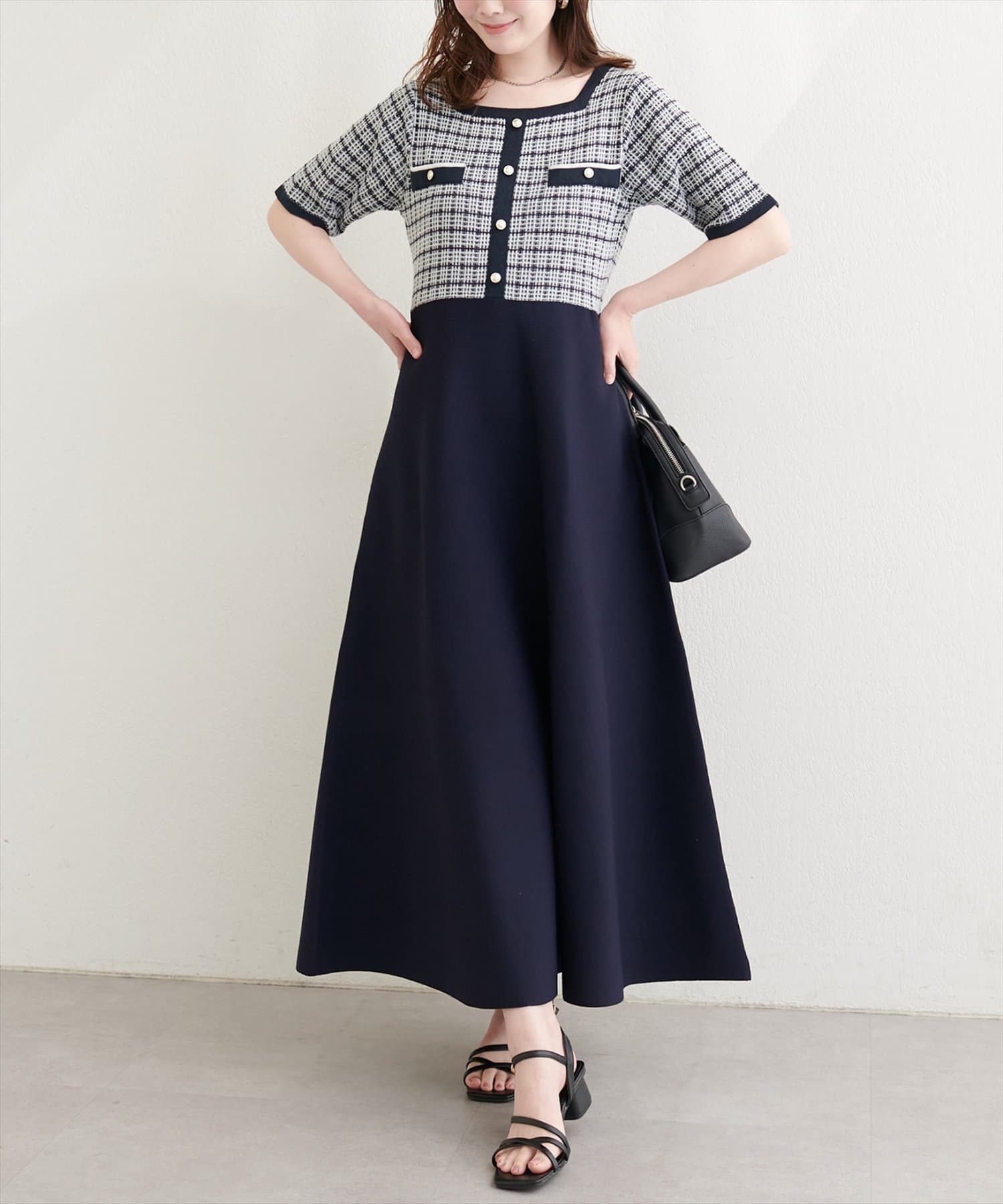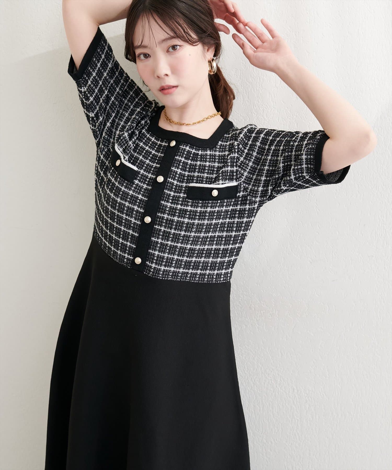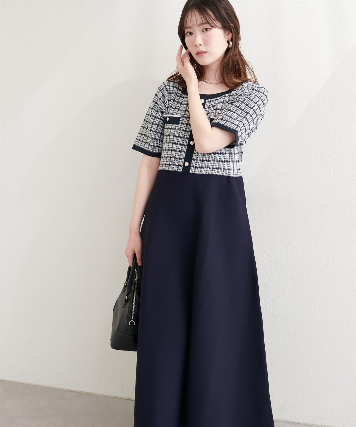 ツイードサマーニットワンピース