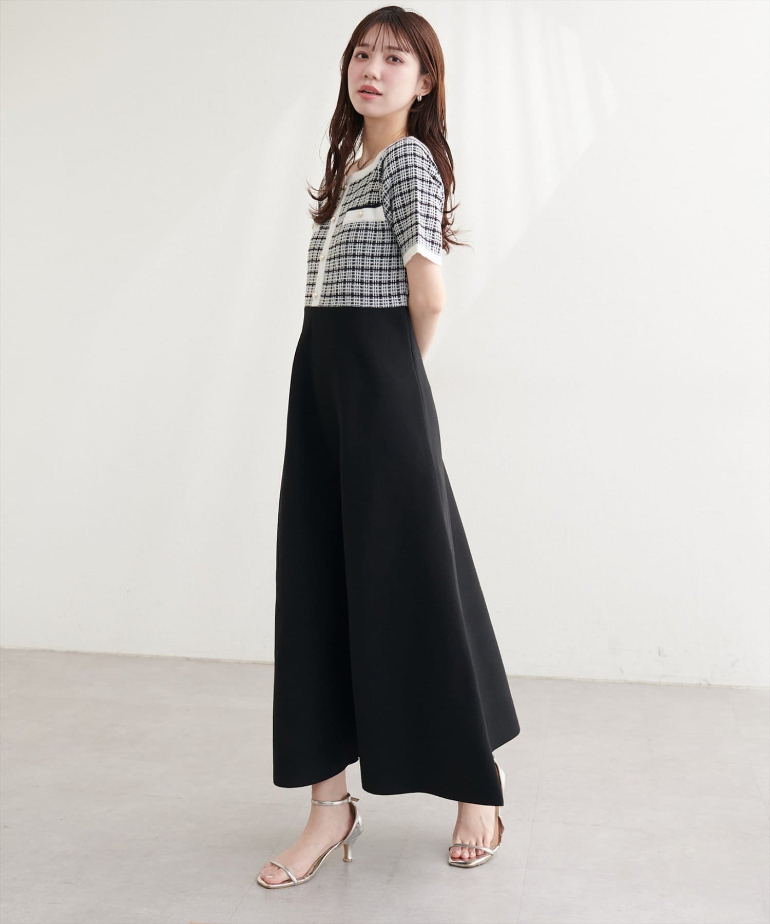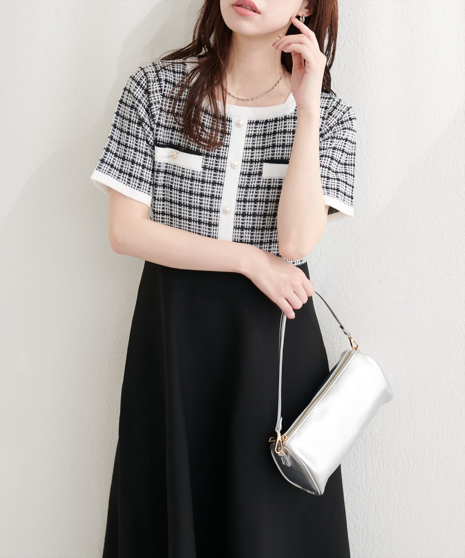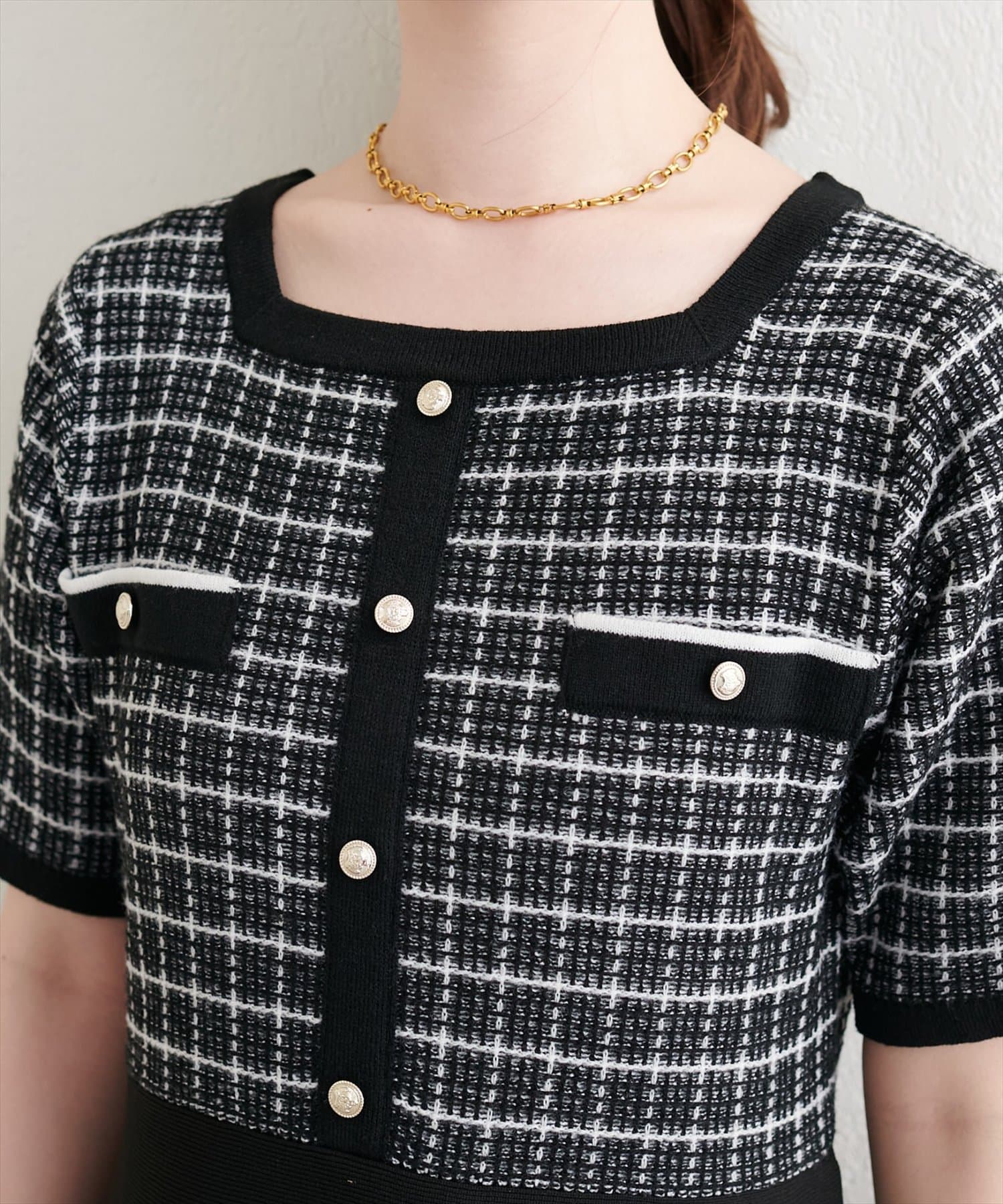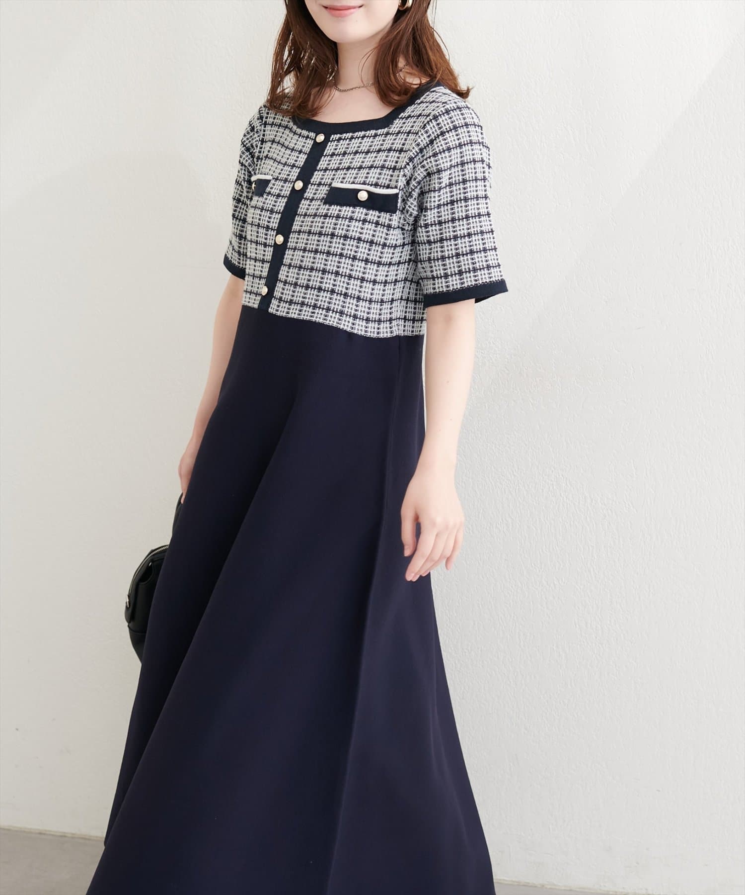 ツイードサマーニットワンピース