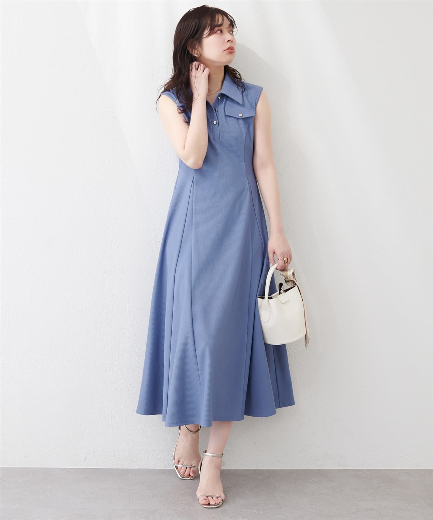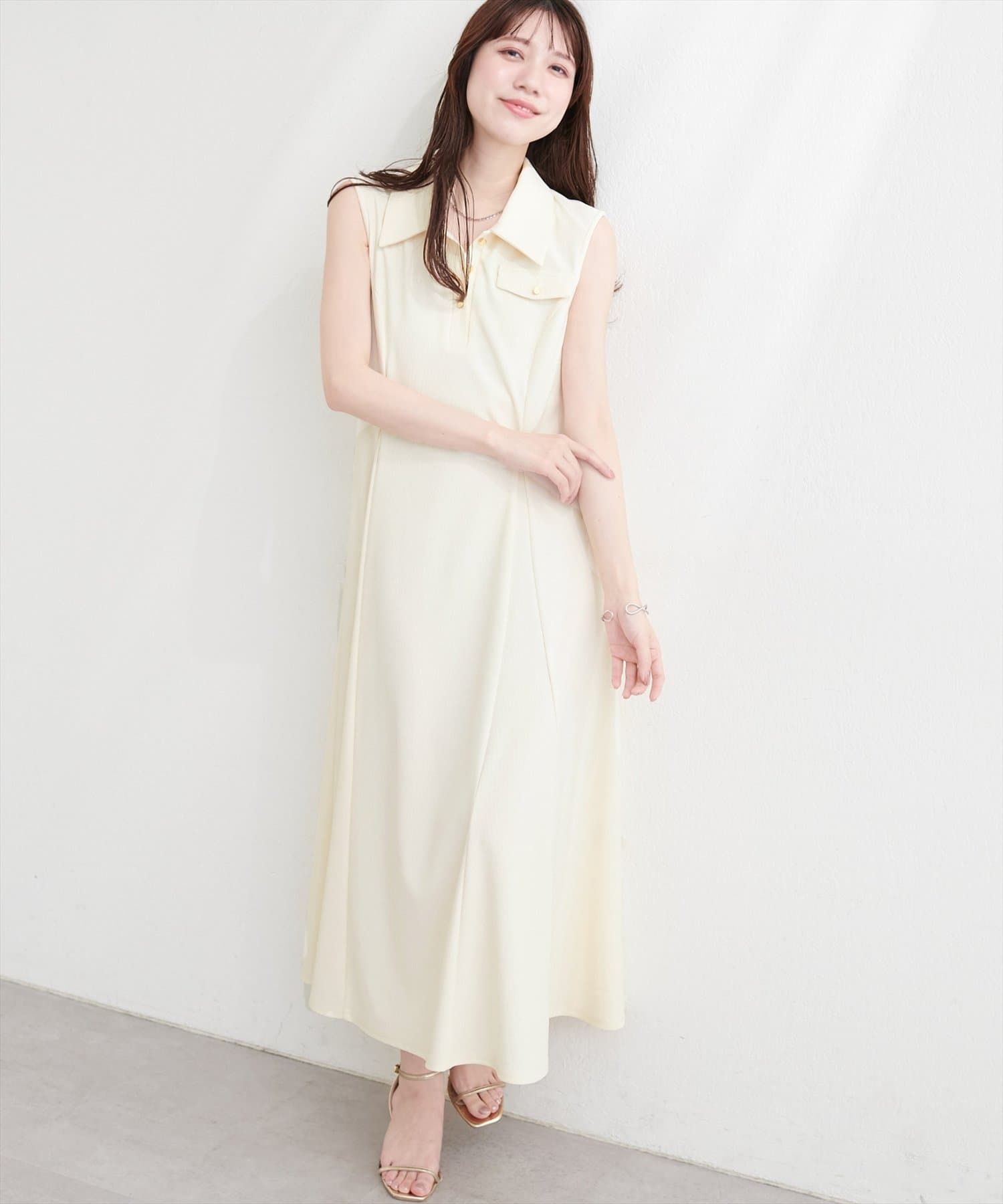 ノースリーブなので、カーディガンやジャケットを羽織ってもすっきりとした印象に。