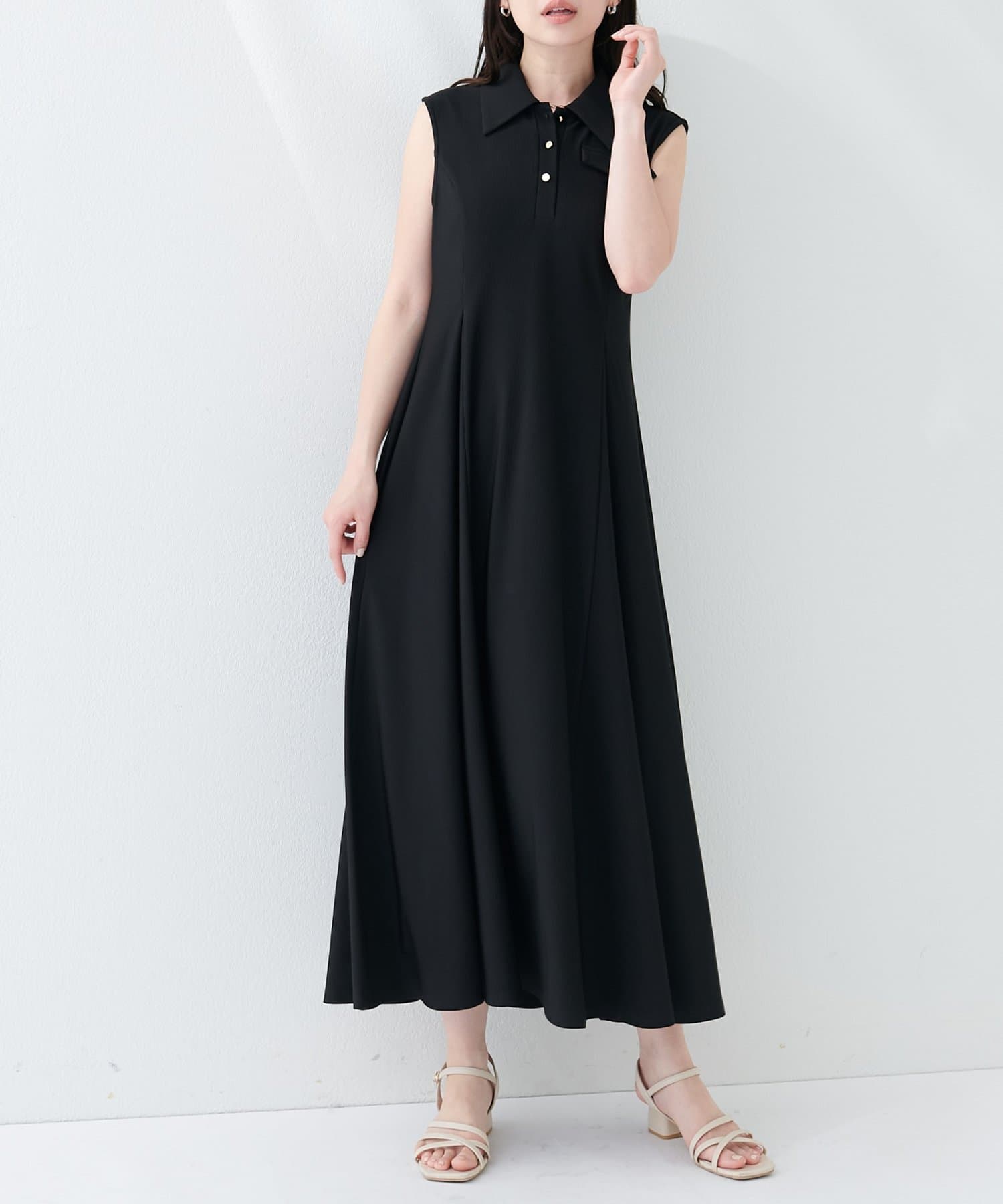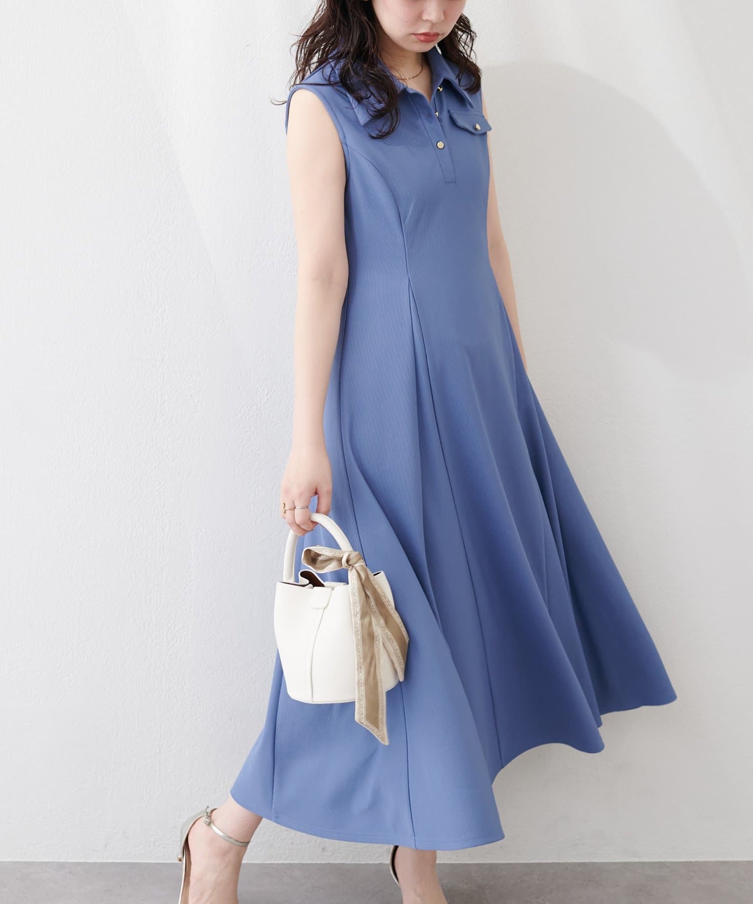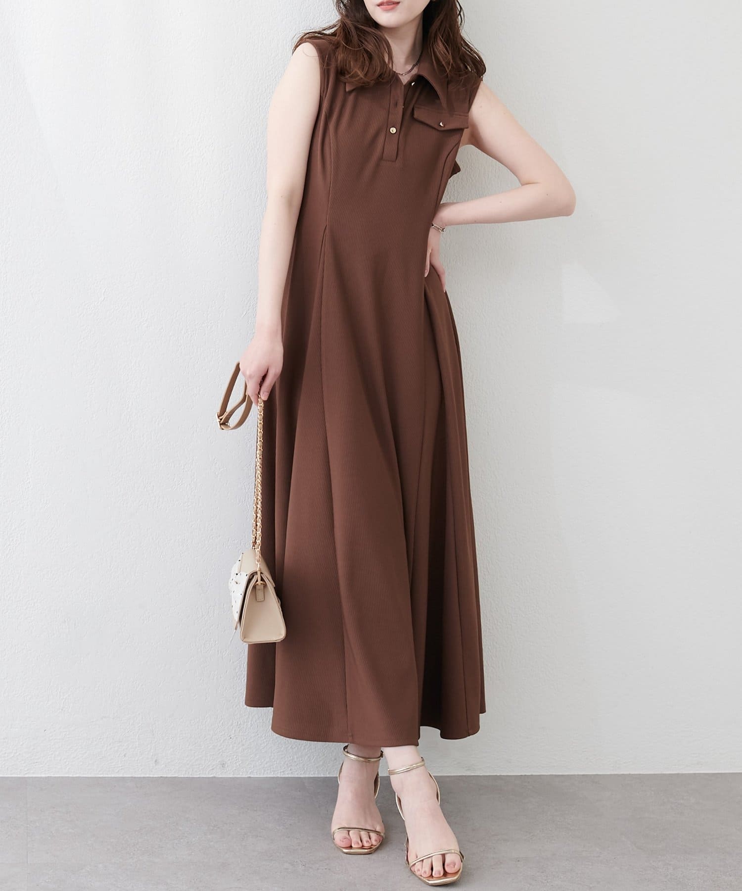 • natural couture(ナチュラルクチュール) 美シルエットノースリフレアワンピース