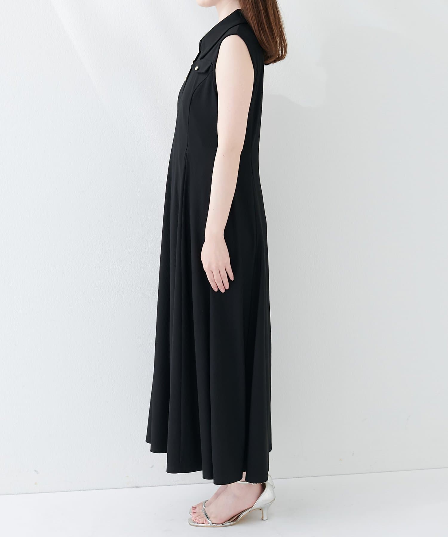 美しく広がるフレアシルエットが、女性らしさを際立たせるノースリーブワンピース。