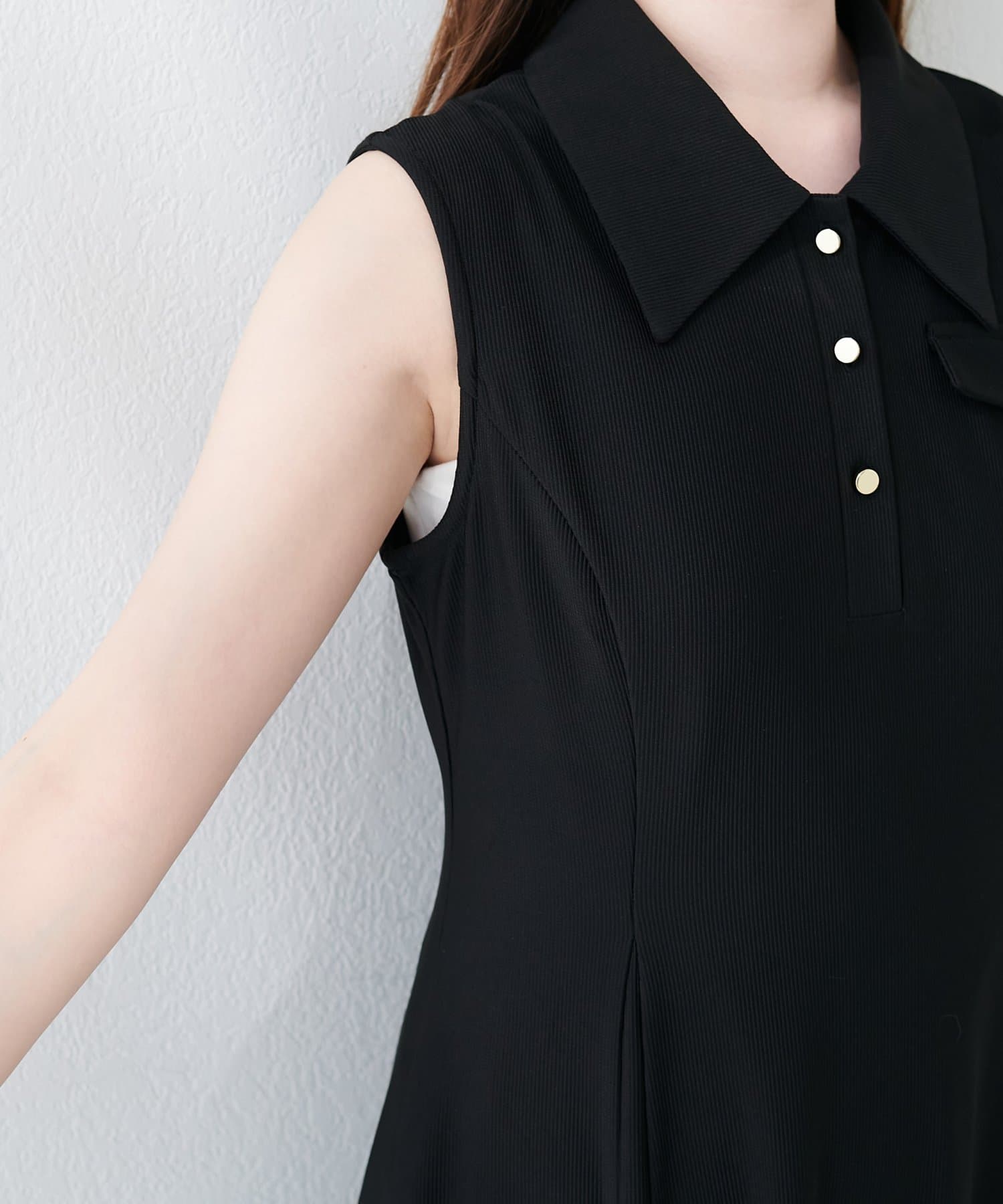 ノースリーブなので、カーディガンやジャケットを羽織ってもすっきりとした印象に。