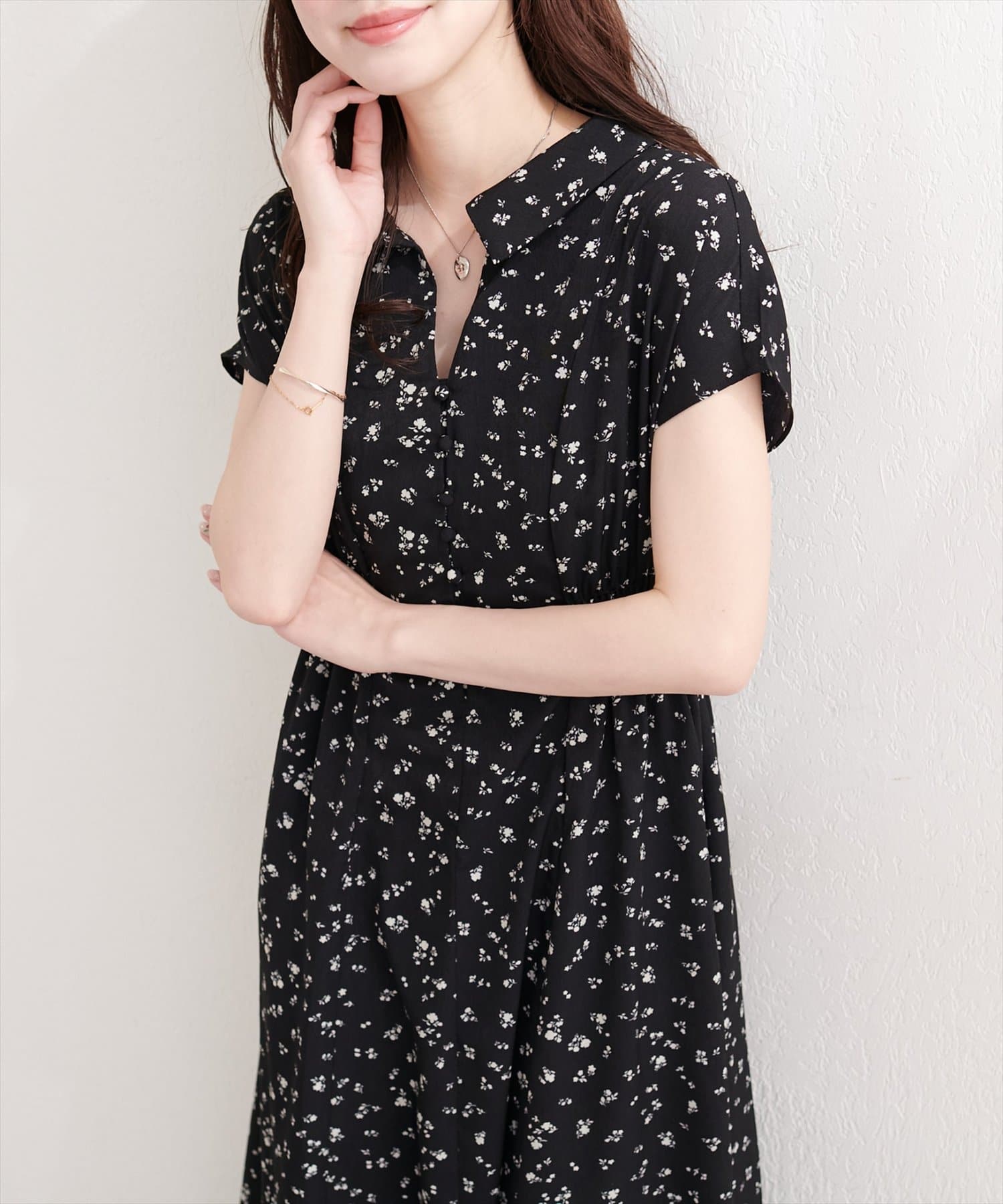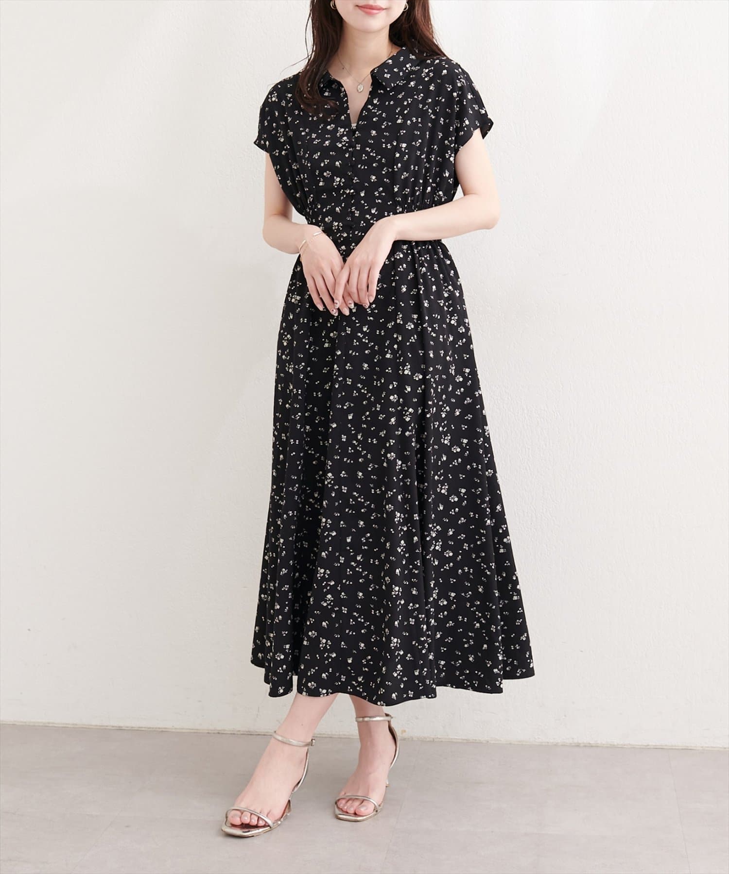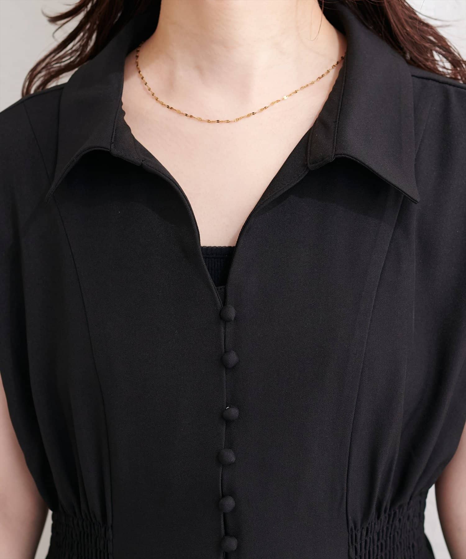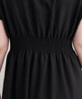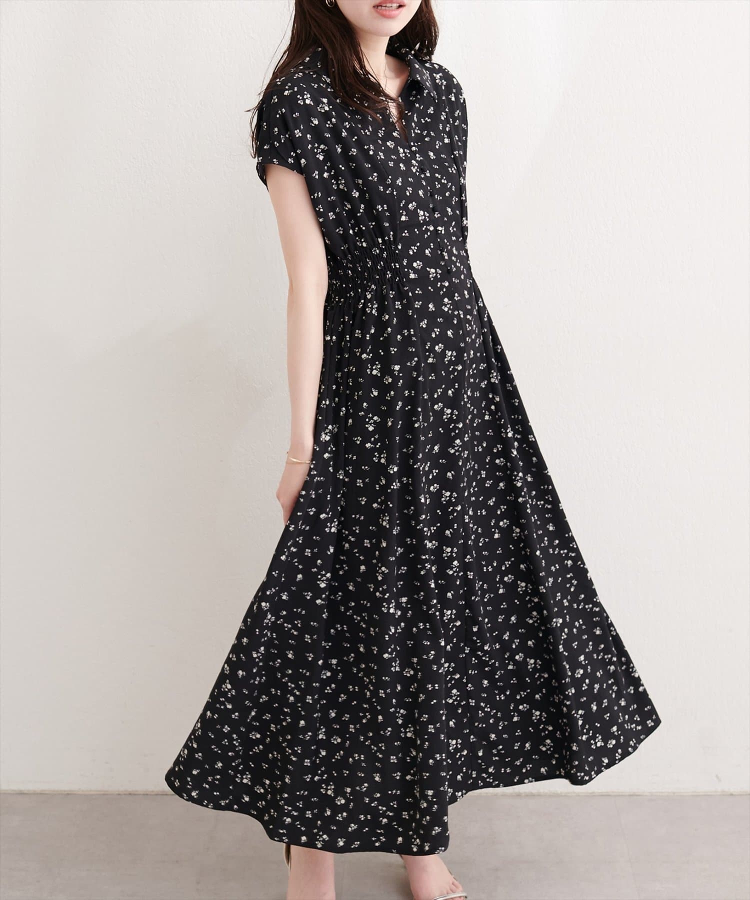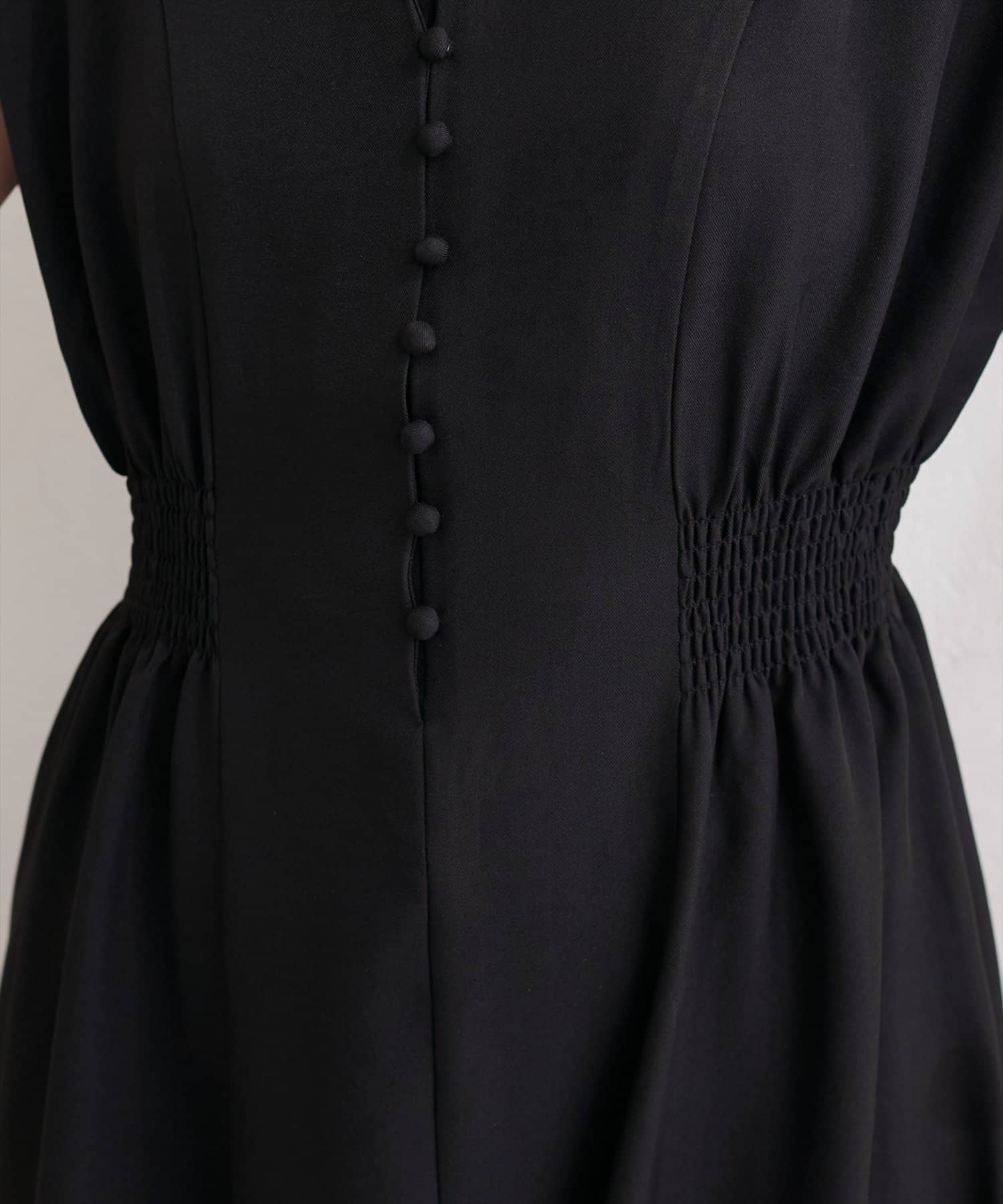 ウエスト部分に施されたシャーリングが、さりげなくスタイルアップを叶え、美しいシルエットを演出します。