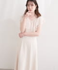 デコルテを美しく飾るフリルカラーが印象的なワンピース。