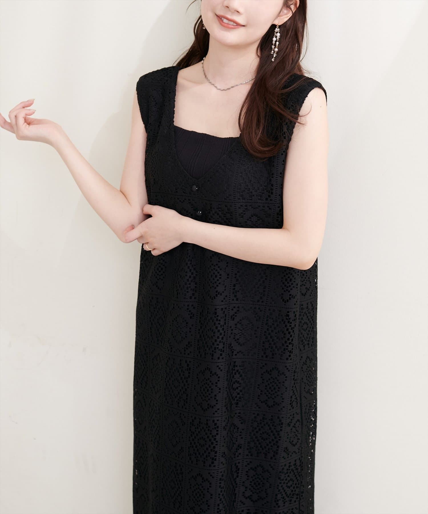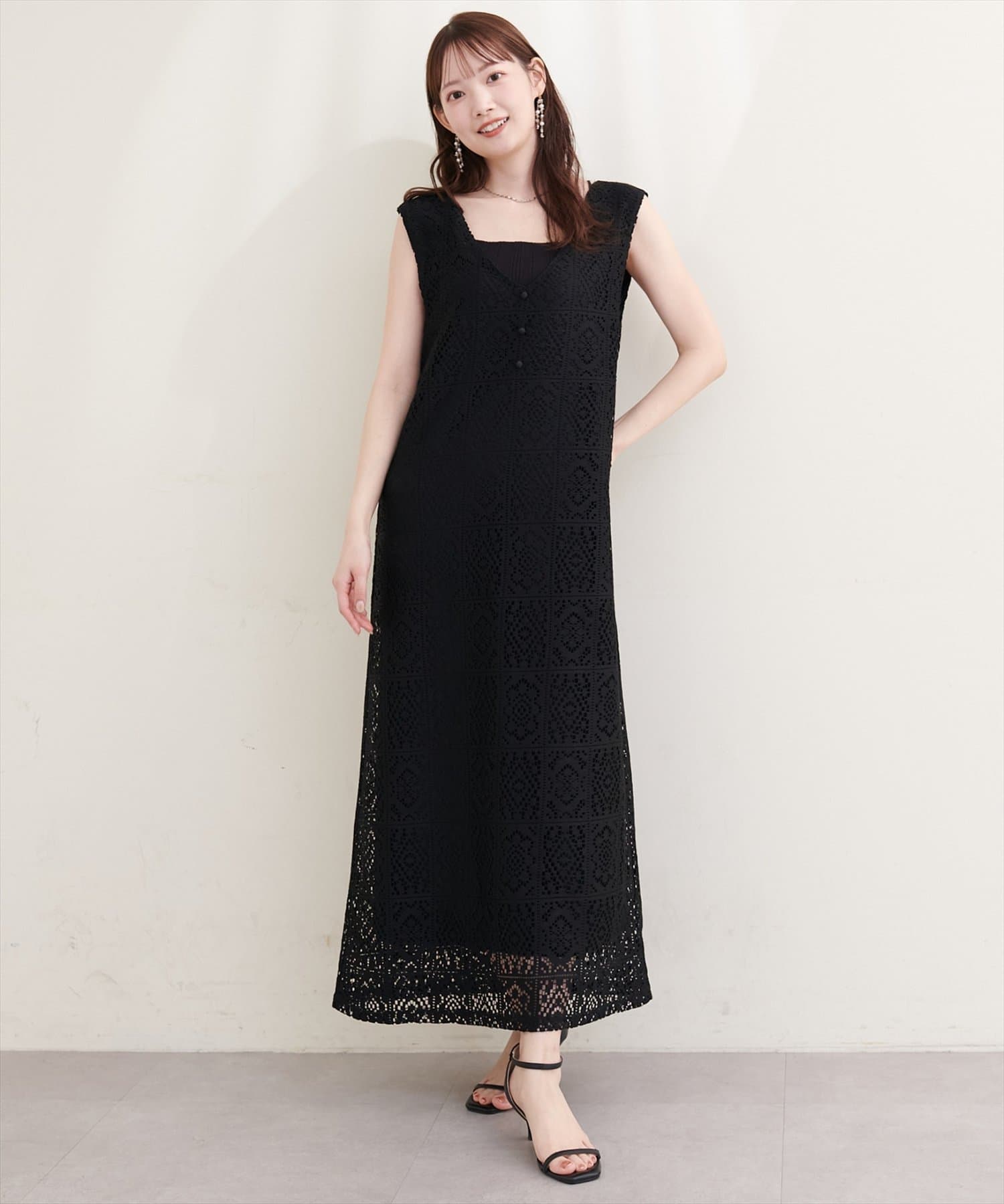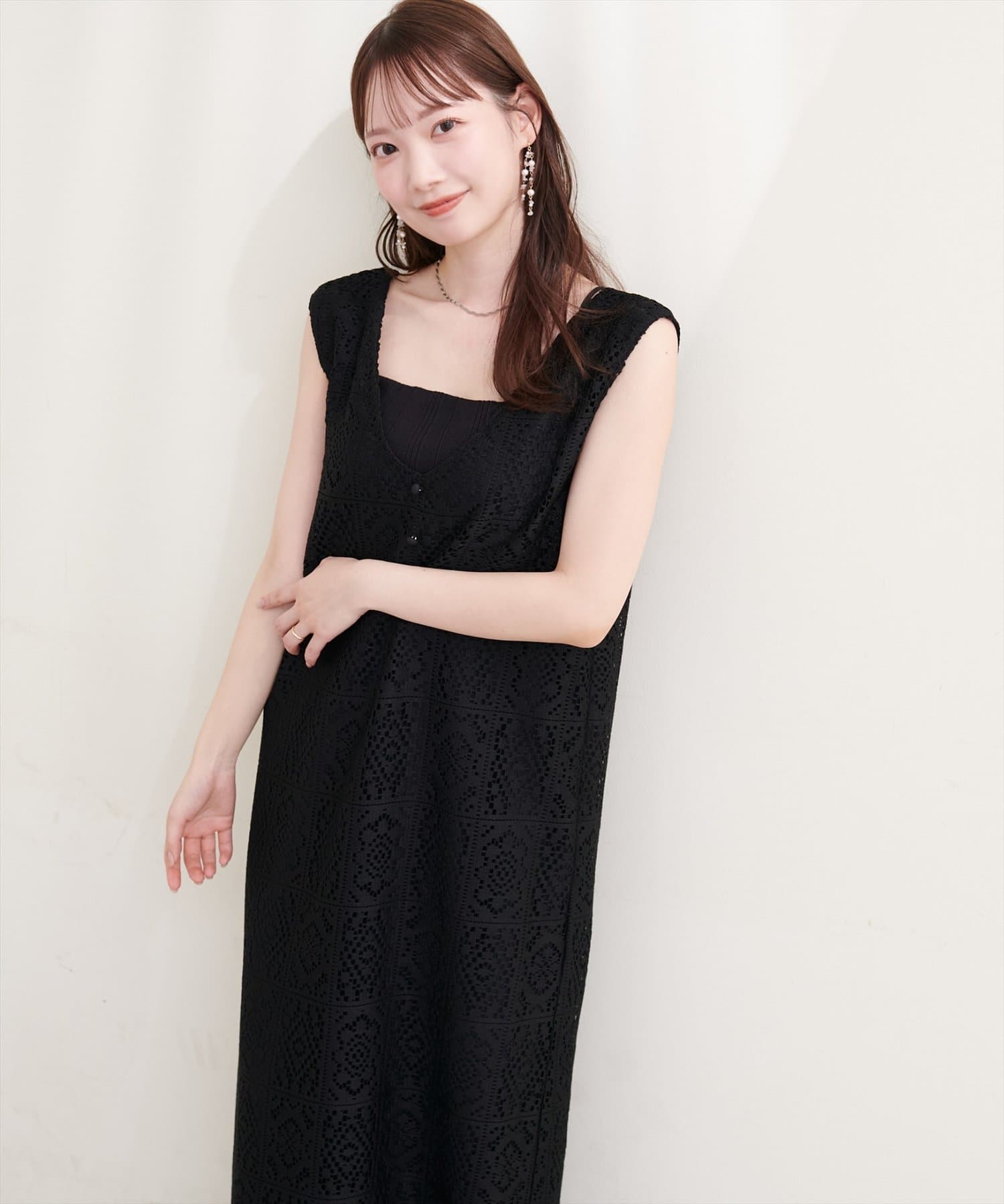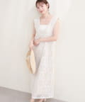 タイル柄のレースは夏らしさと大人の可愛らしさを合わせ持った贅沢なジャンスカに。