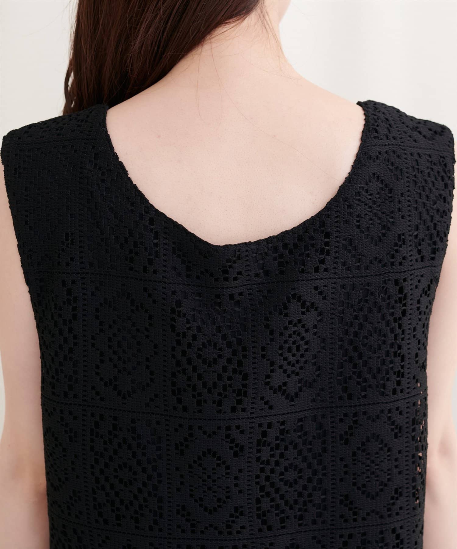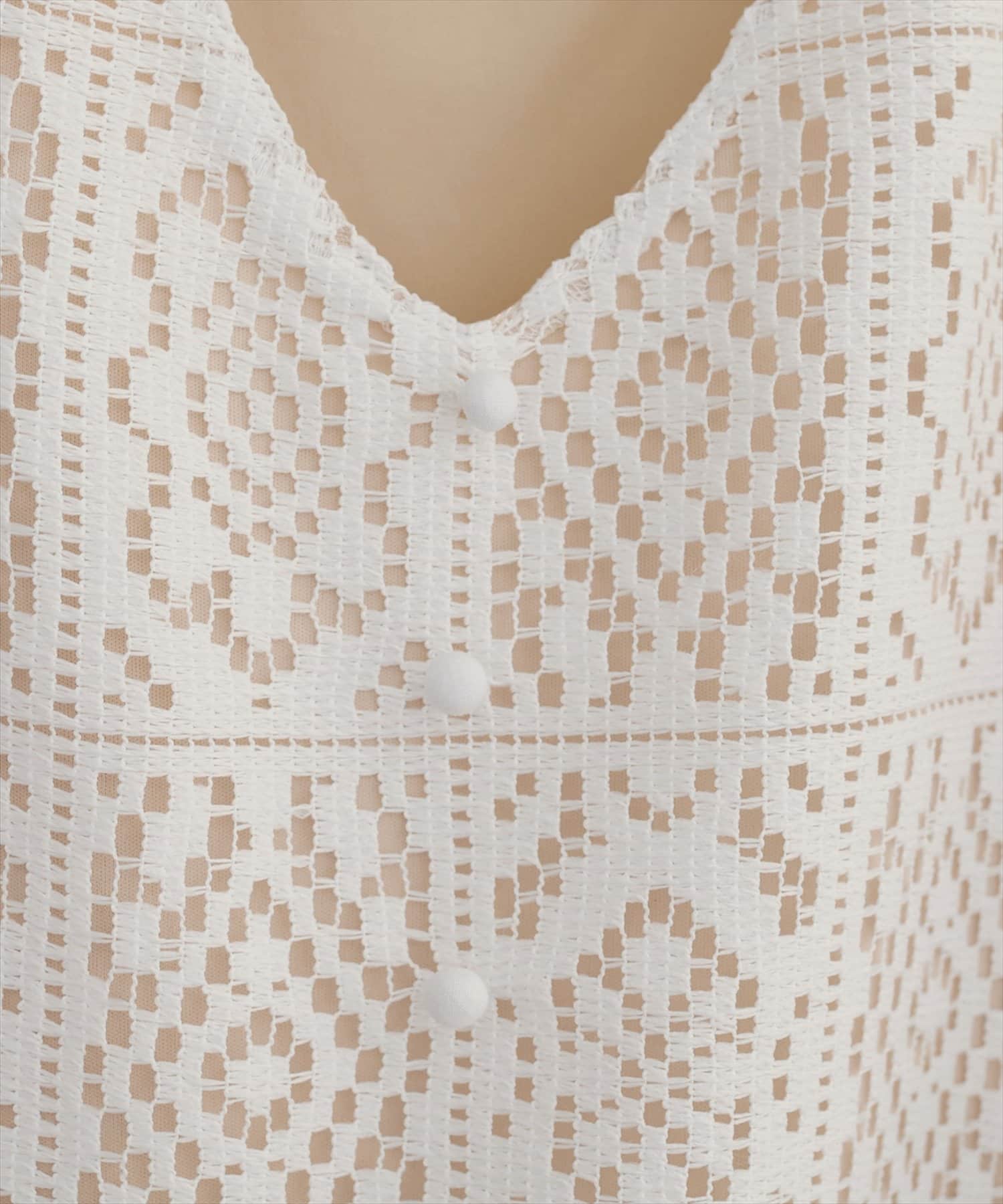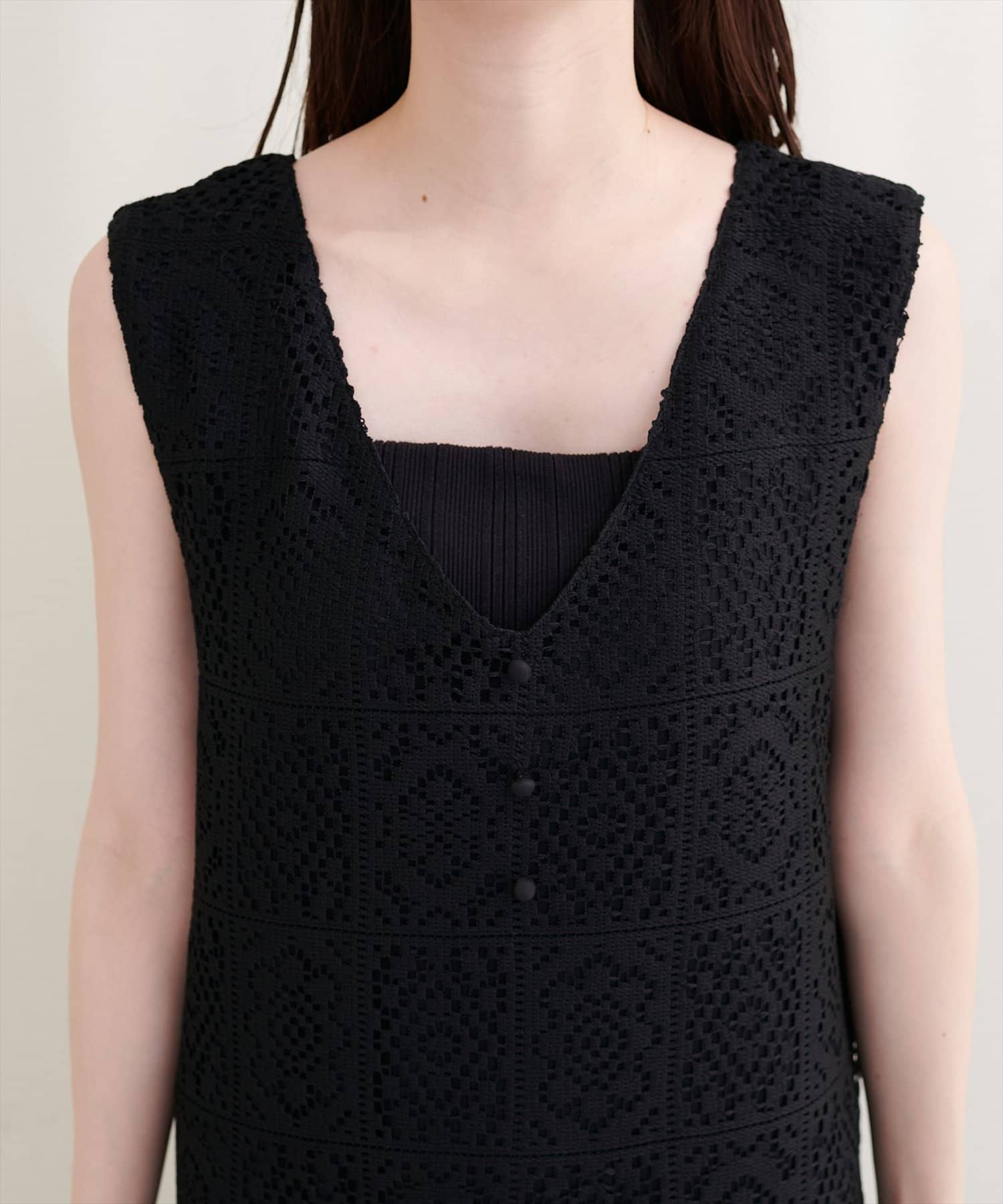 タイル柄のレースは夏らしさと大人の可愛らしさを合わせ持った贅沢なジャンスカに。