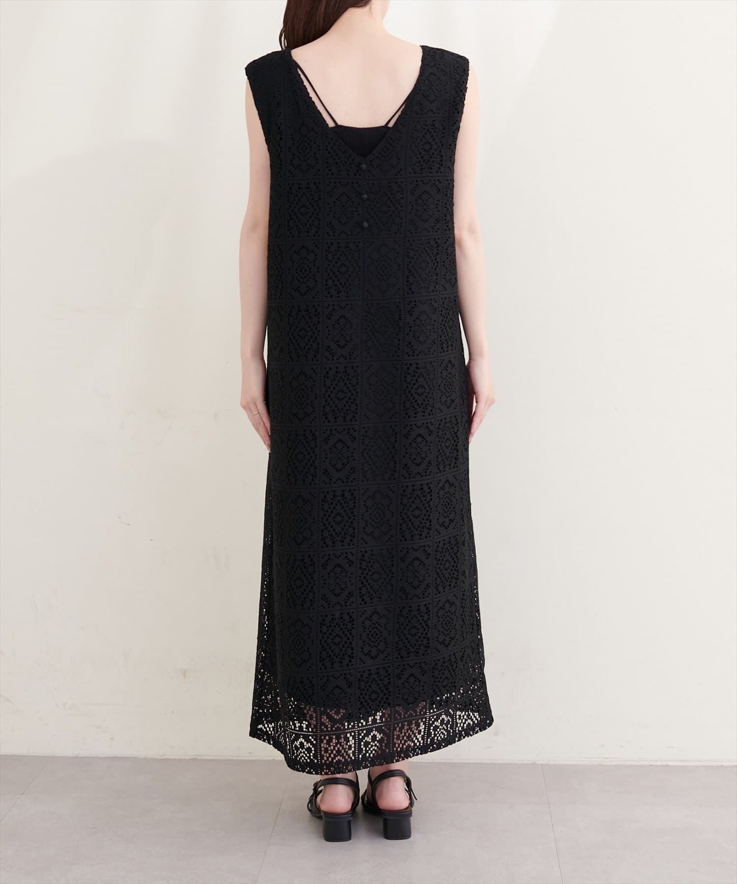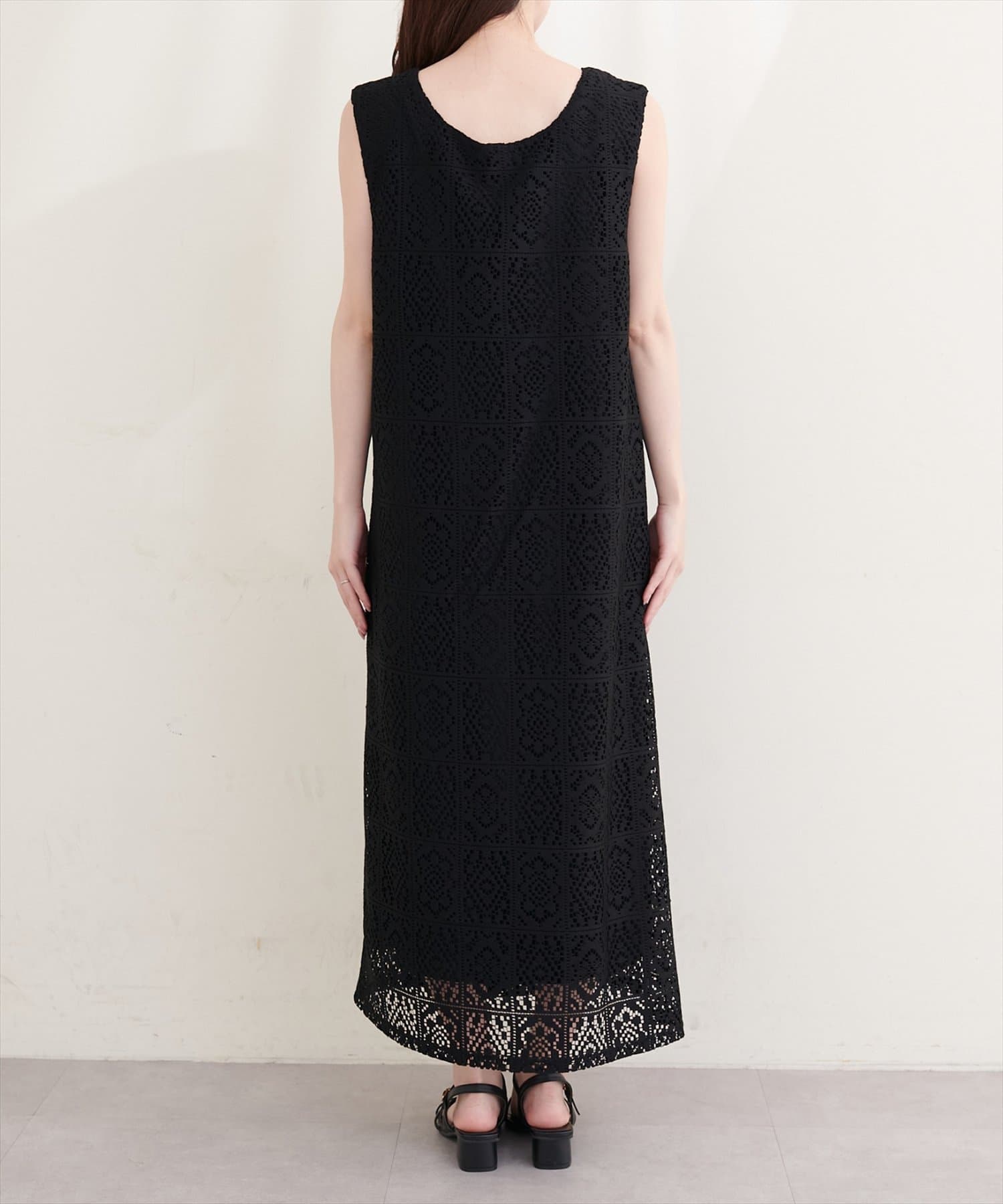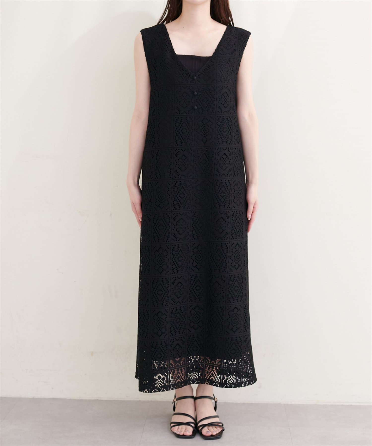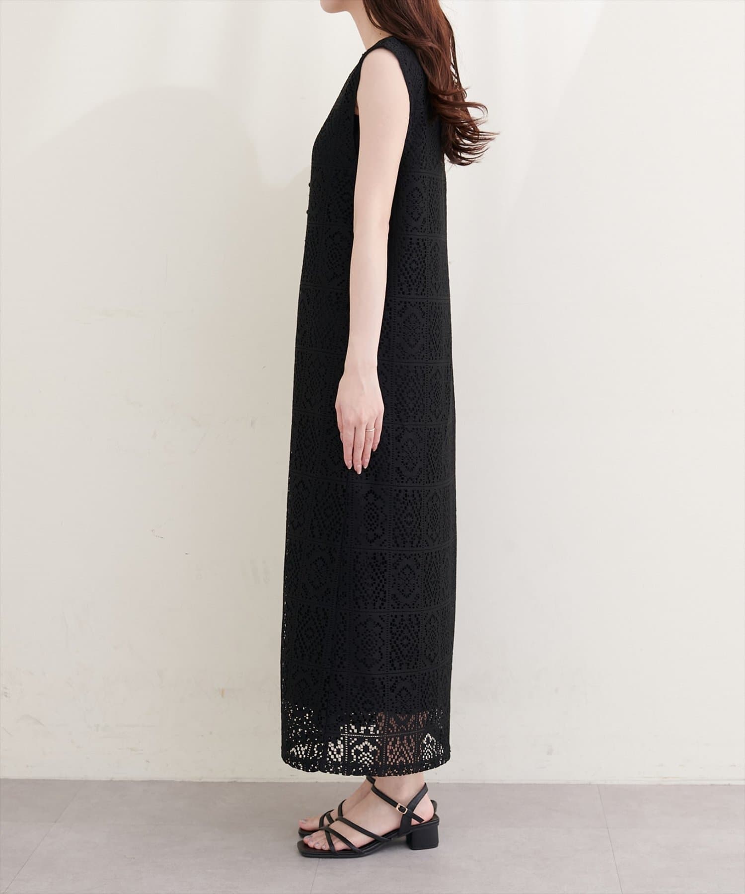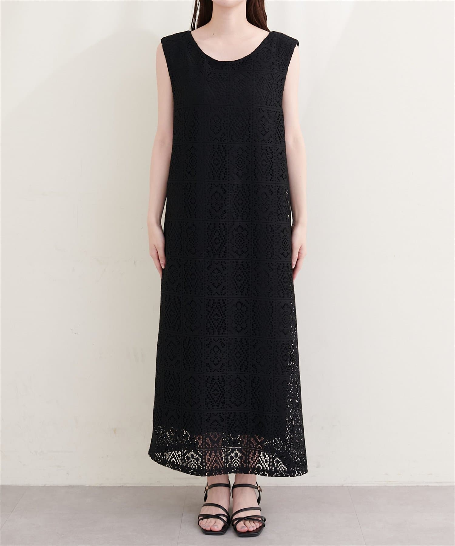 シンプルなIラインのシルエットに、レースの抜け感がプラスされ、この夏に活躍するワンピースです。