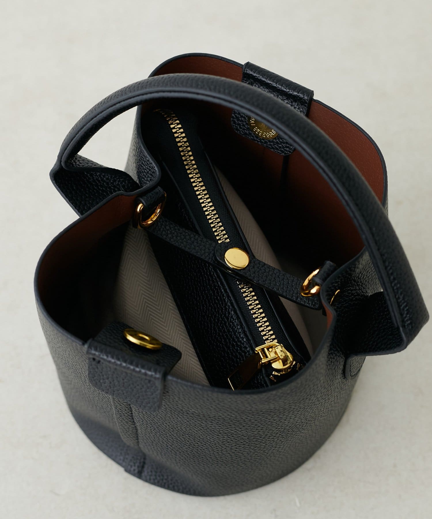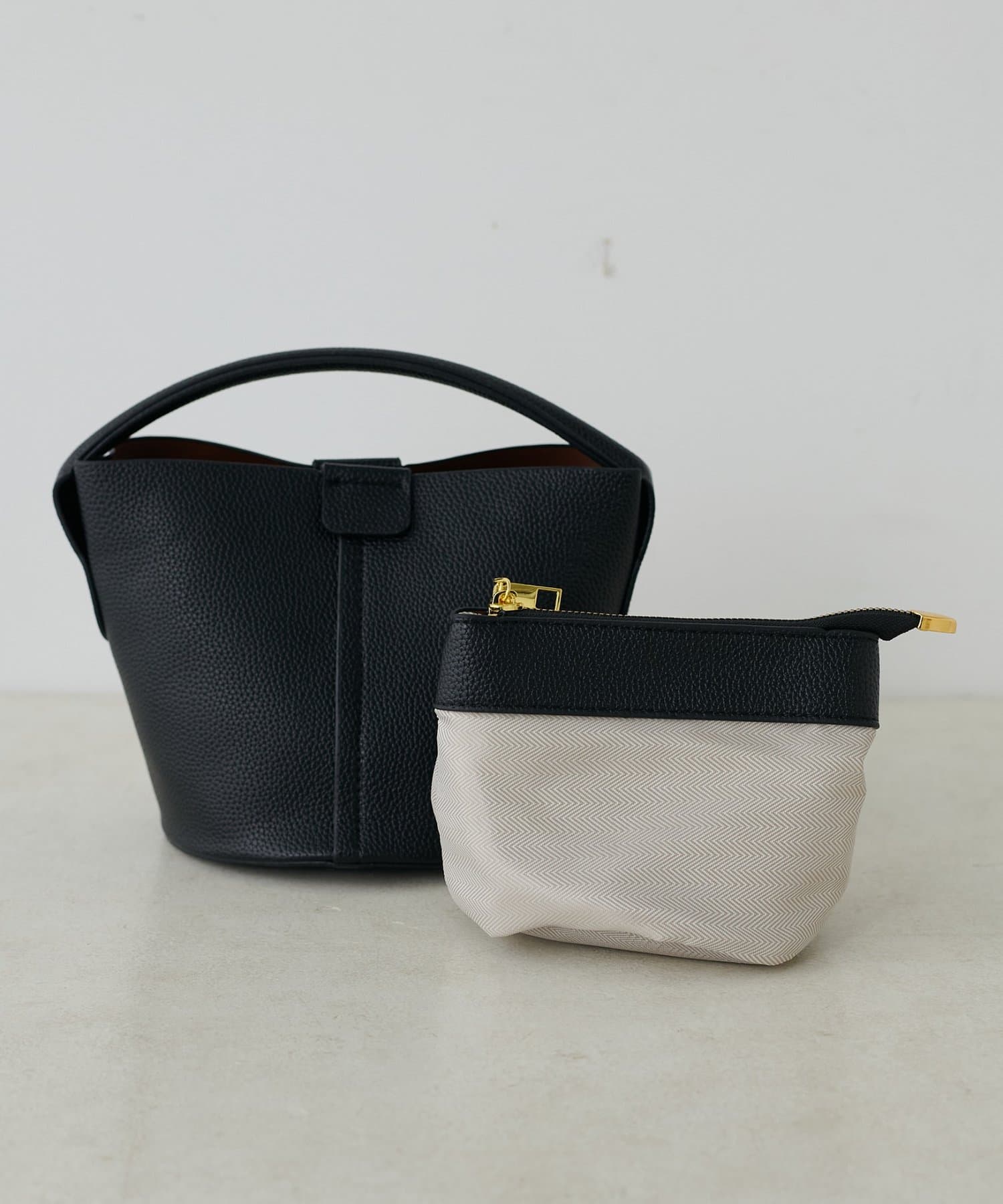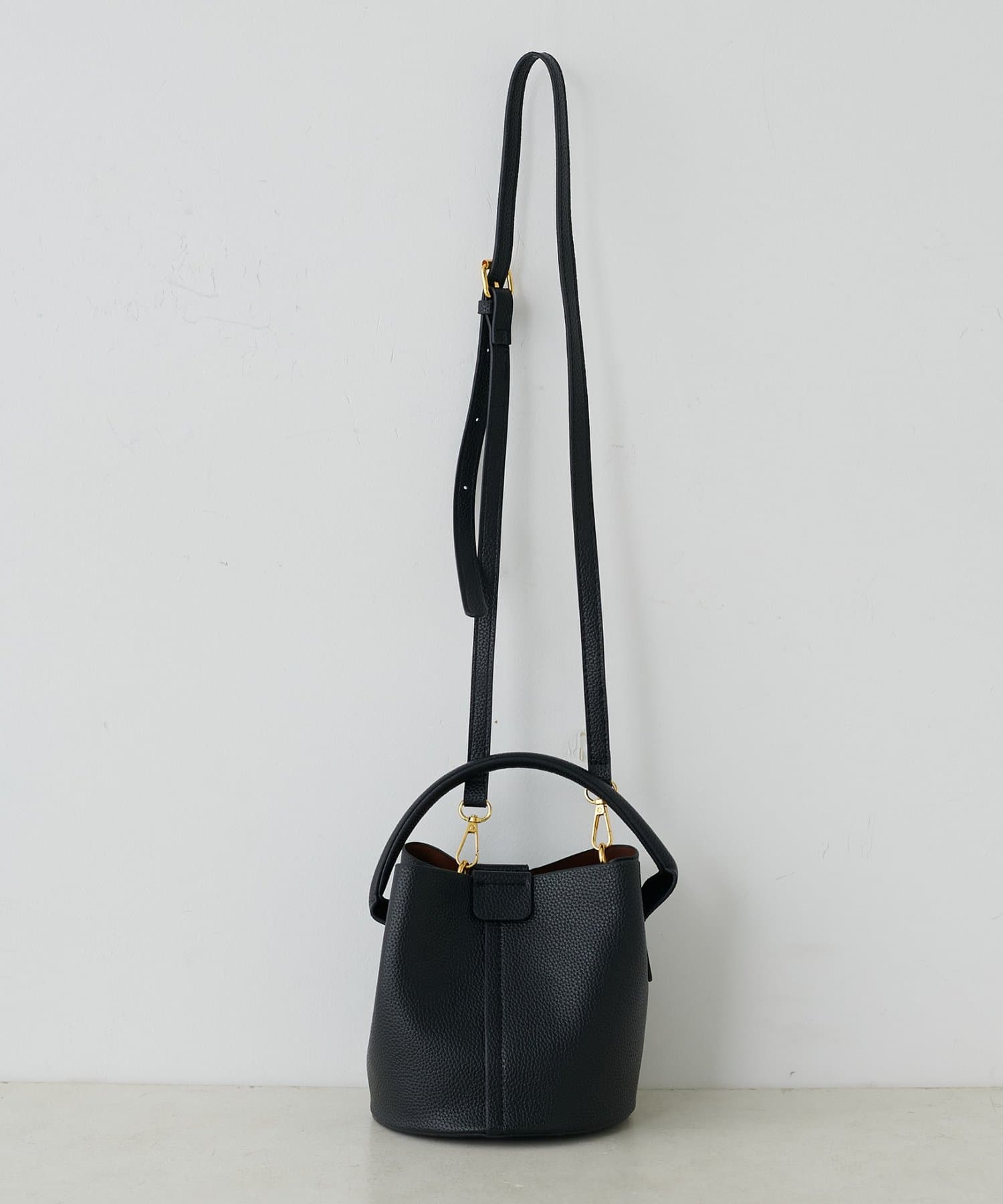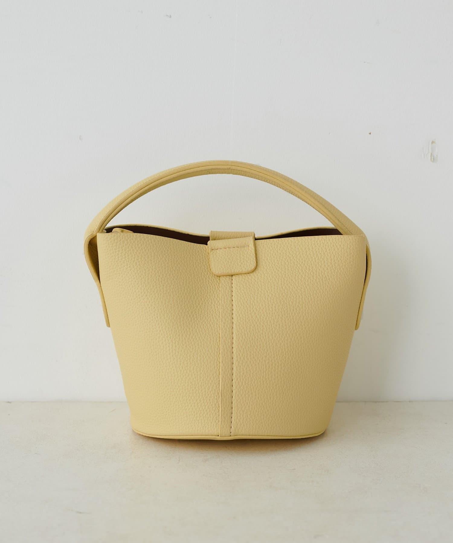 ころんとしたフォルムが愛らしいバケツ型デザインは、持つだけで女性らしさを引き立てます。