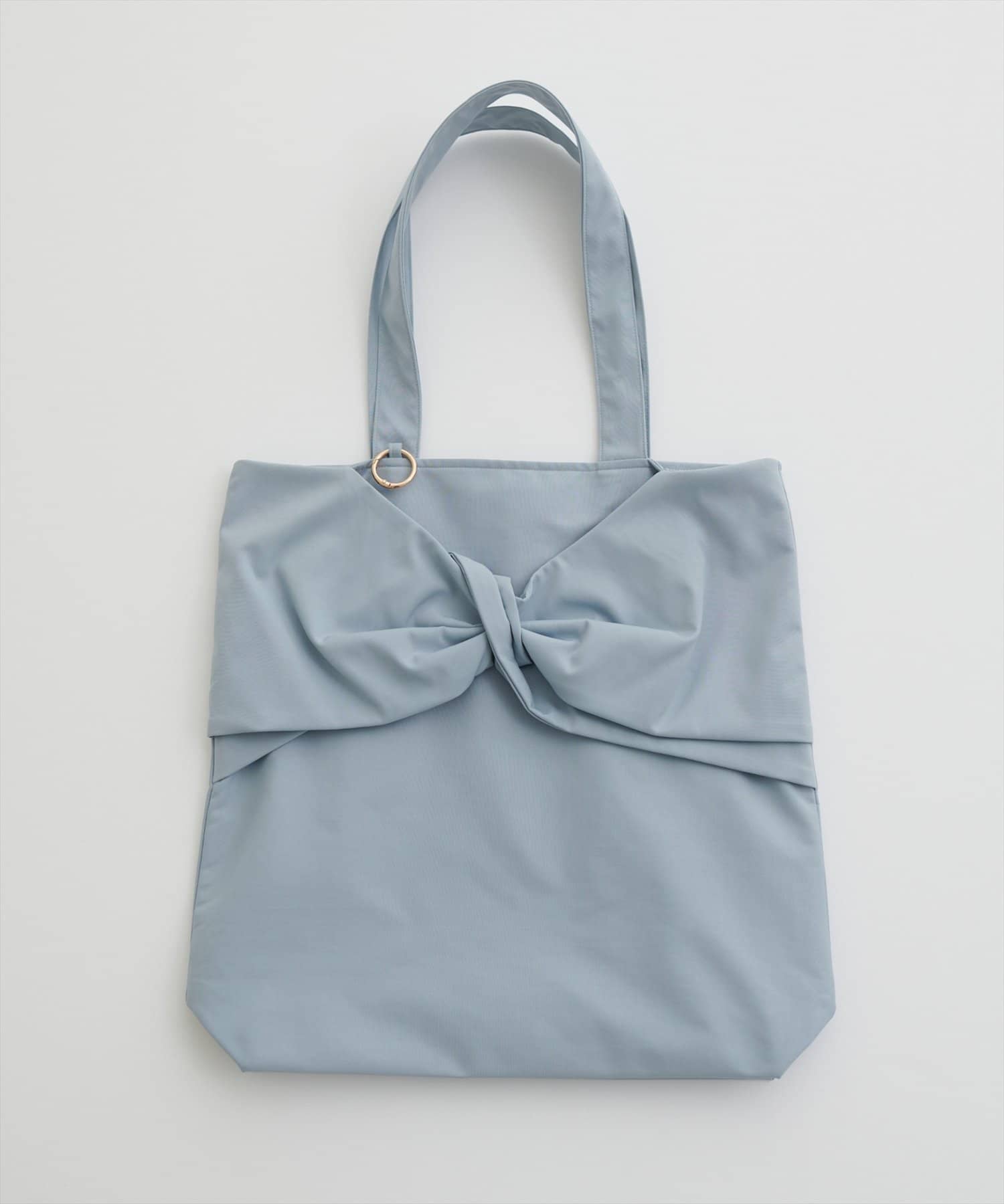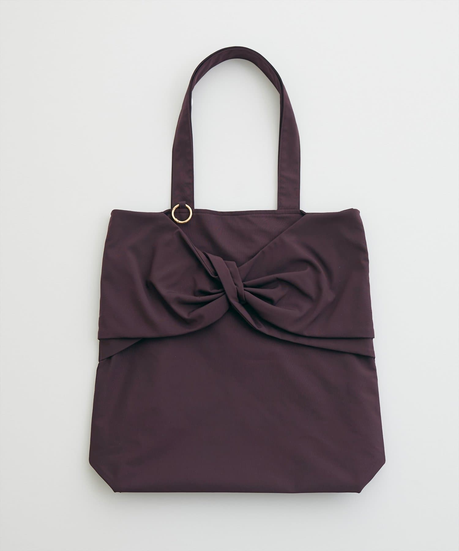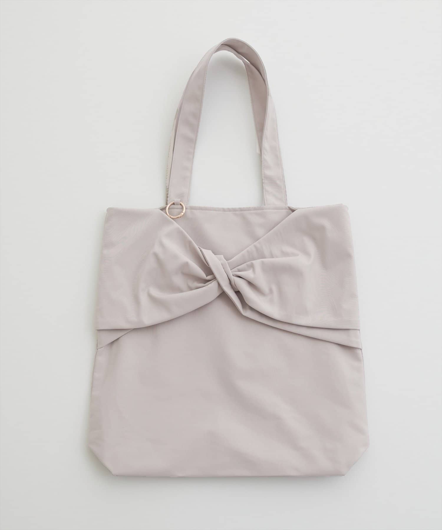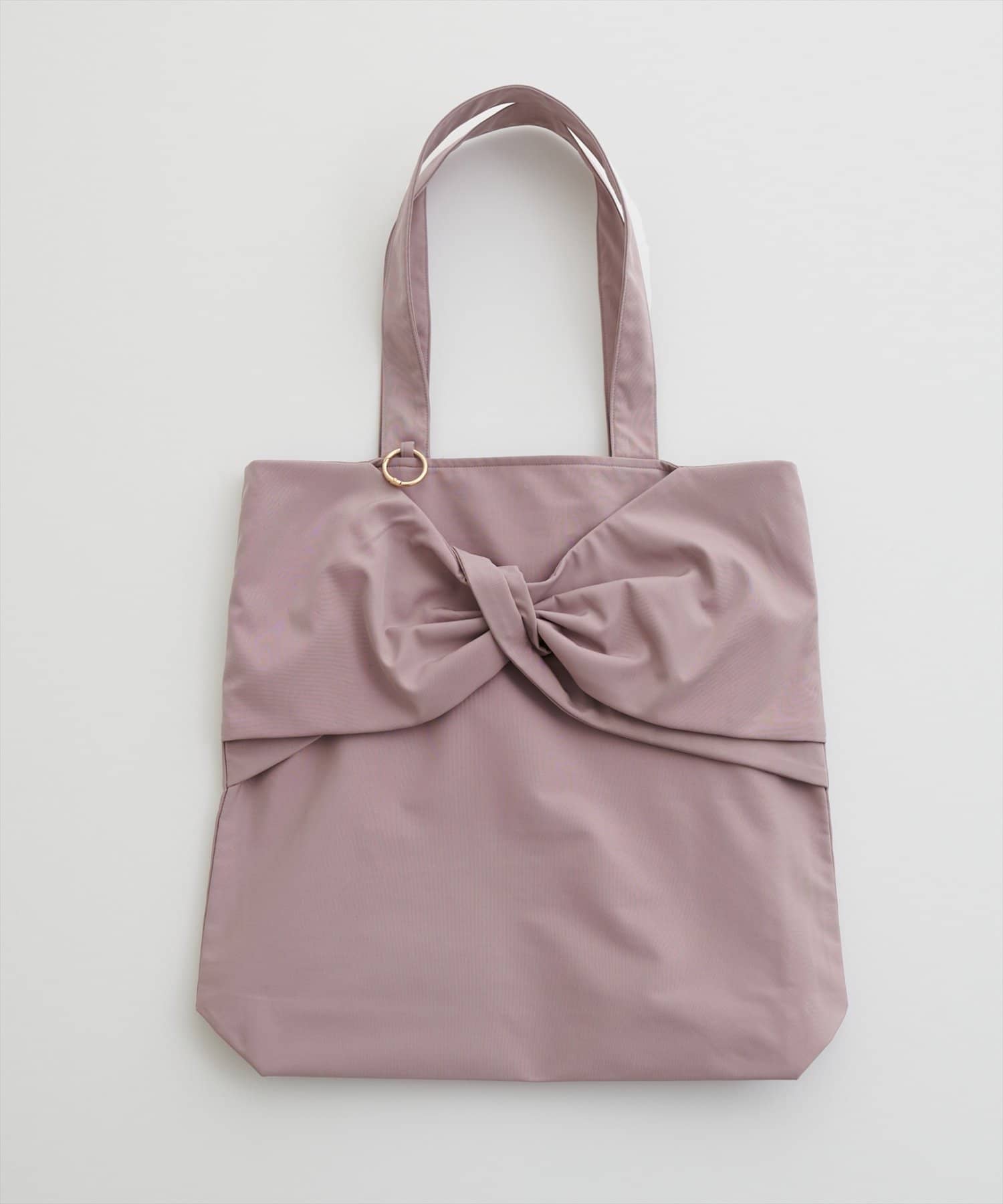 フロント部分にあしらわれた、ふっくらとしたねじりリボンが魅力的なトートバッグ。