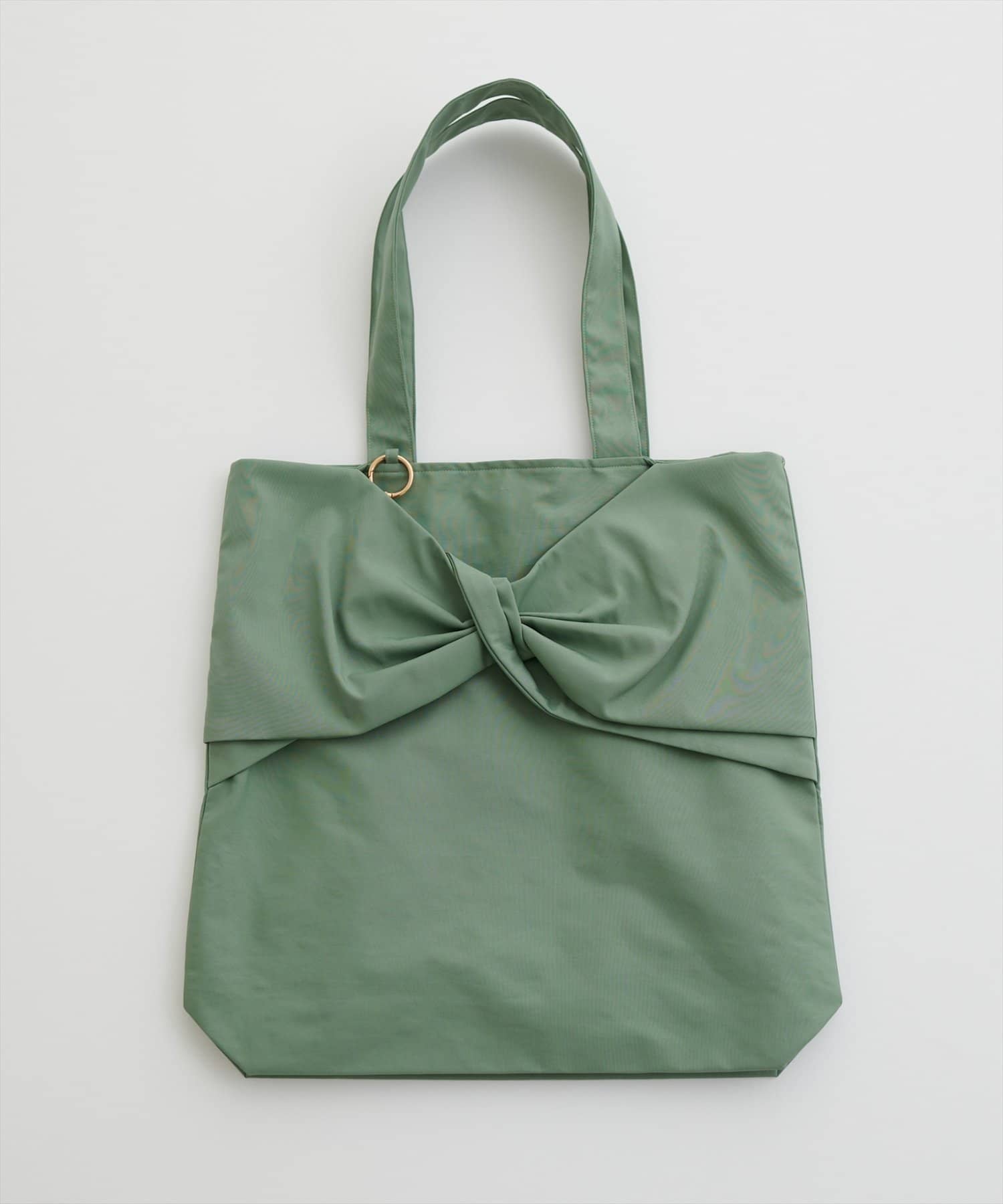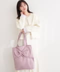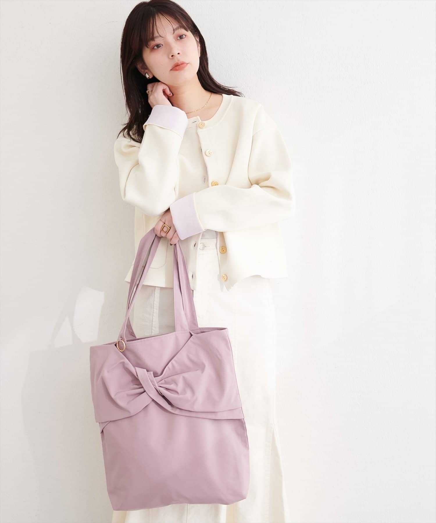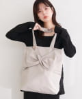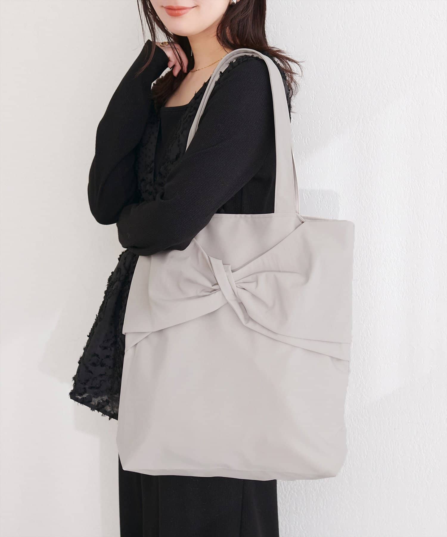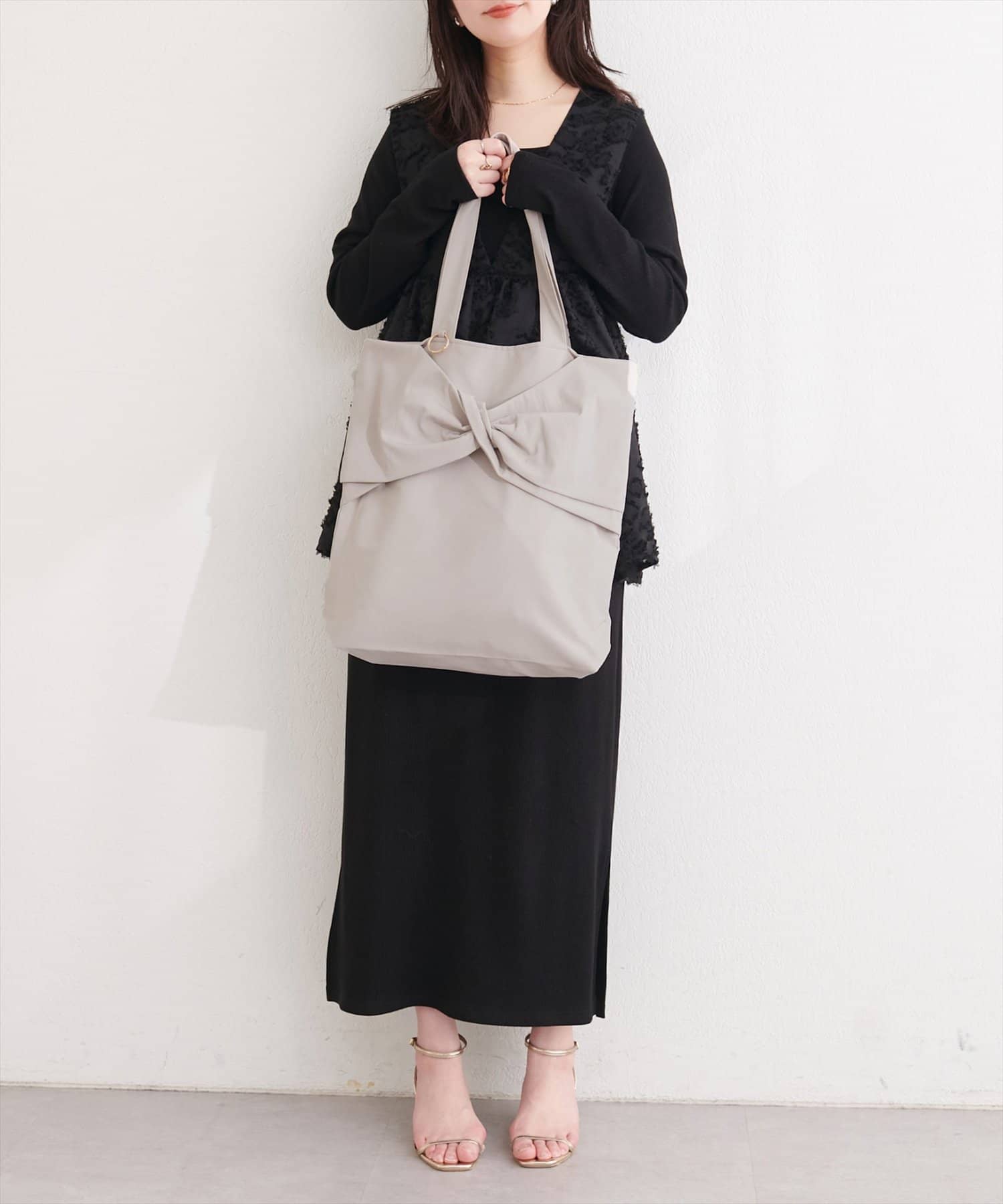 フロント部分にあしらわれた、ふっくらとしたねじりリボンが魅力的なトートバッグ。