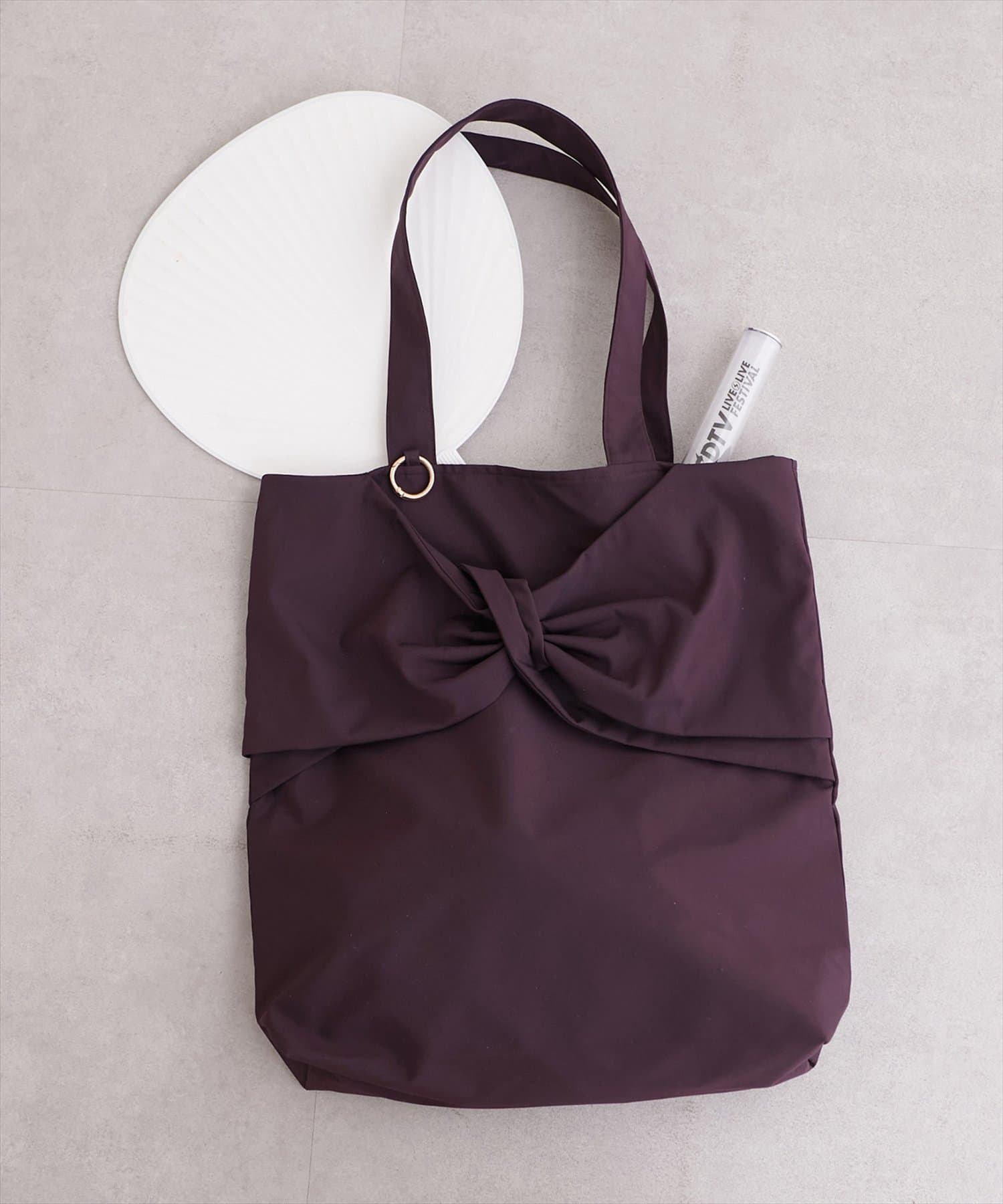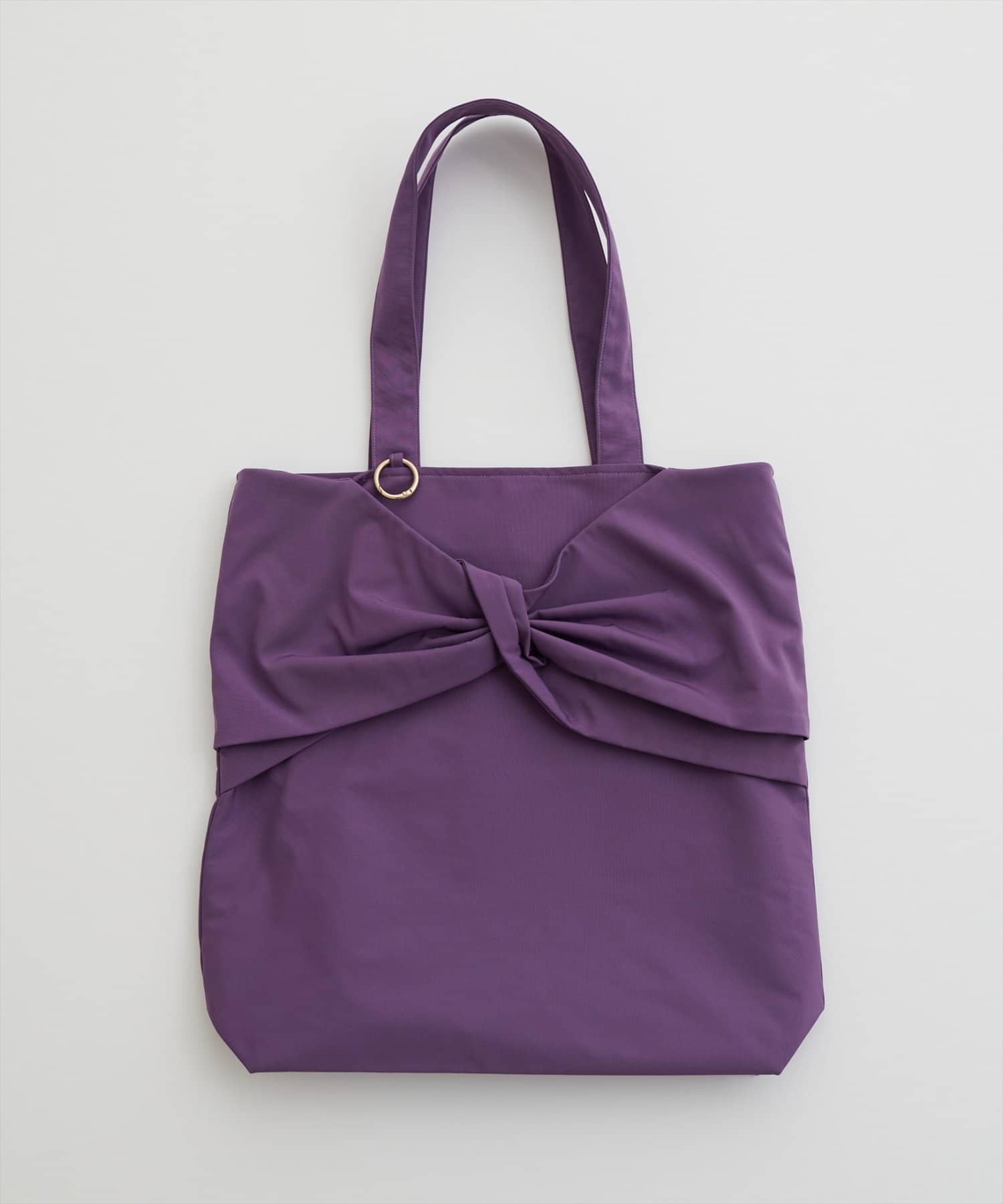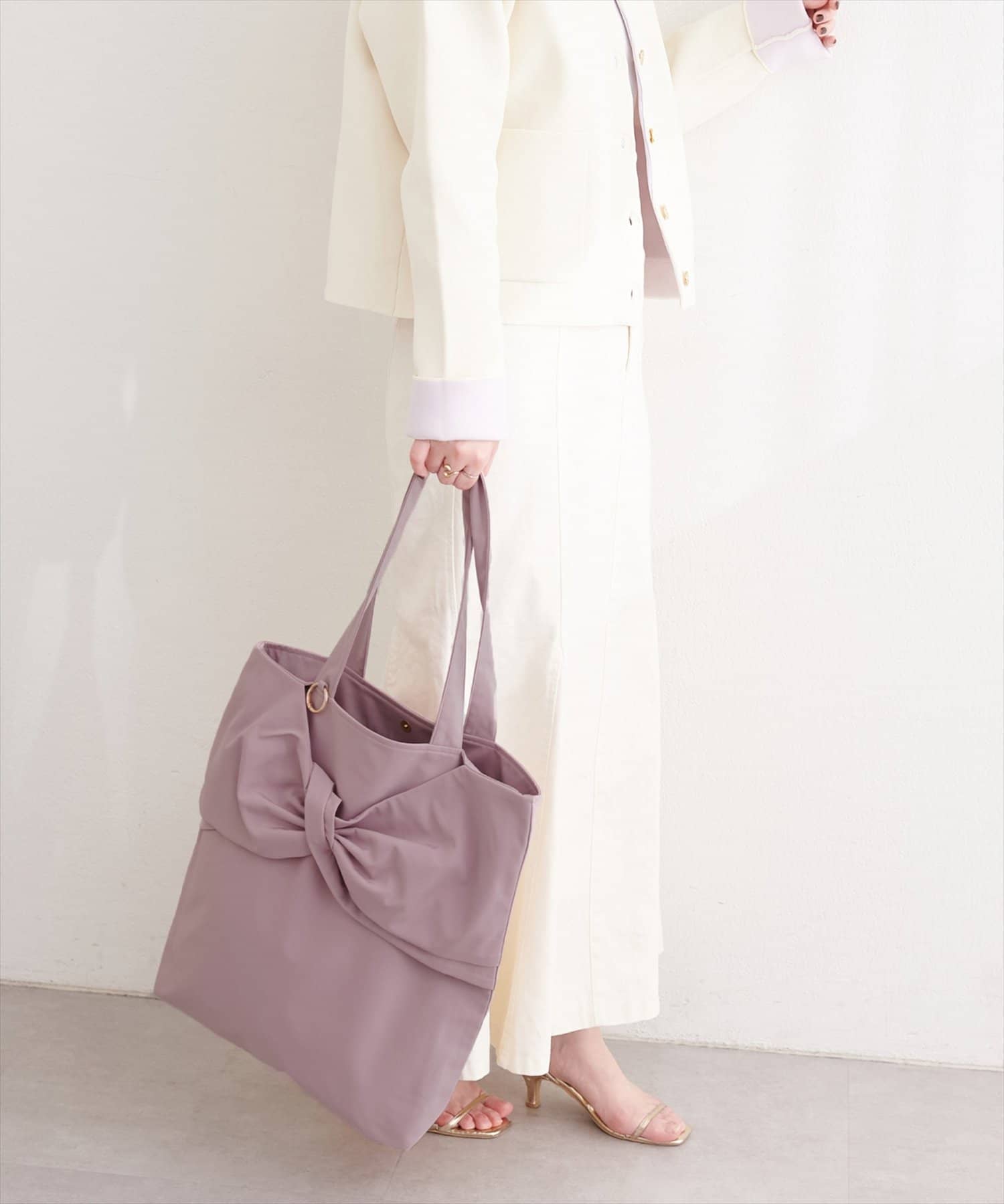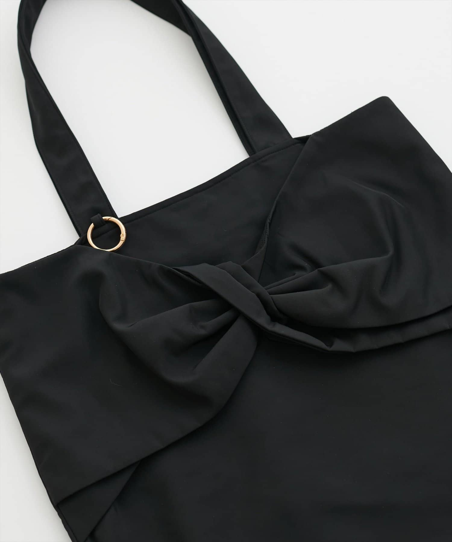 フロント部分にあしらわれた、ふっくらとしたねじりリボンが魅力的なトートバッグ。