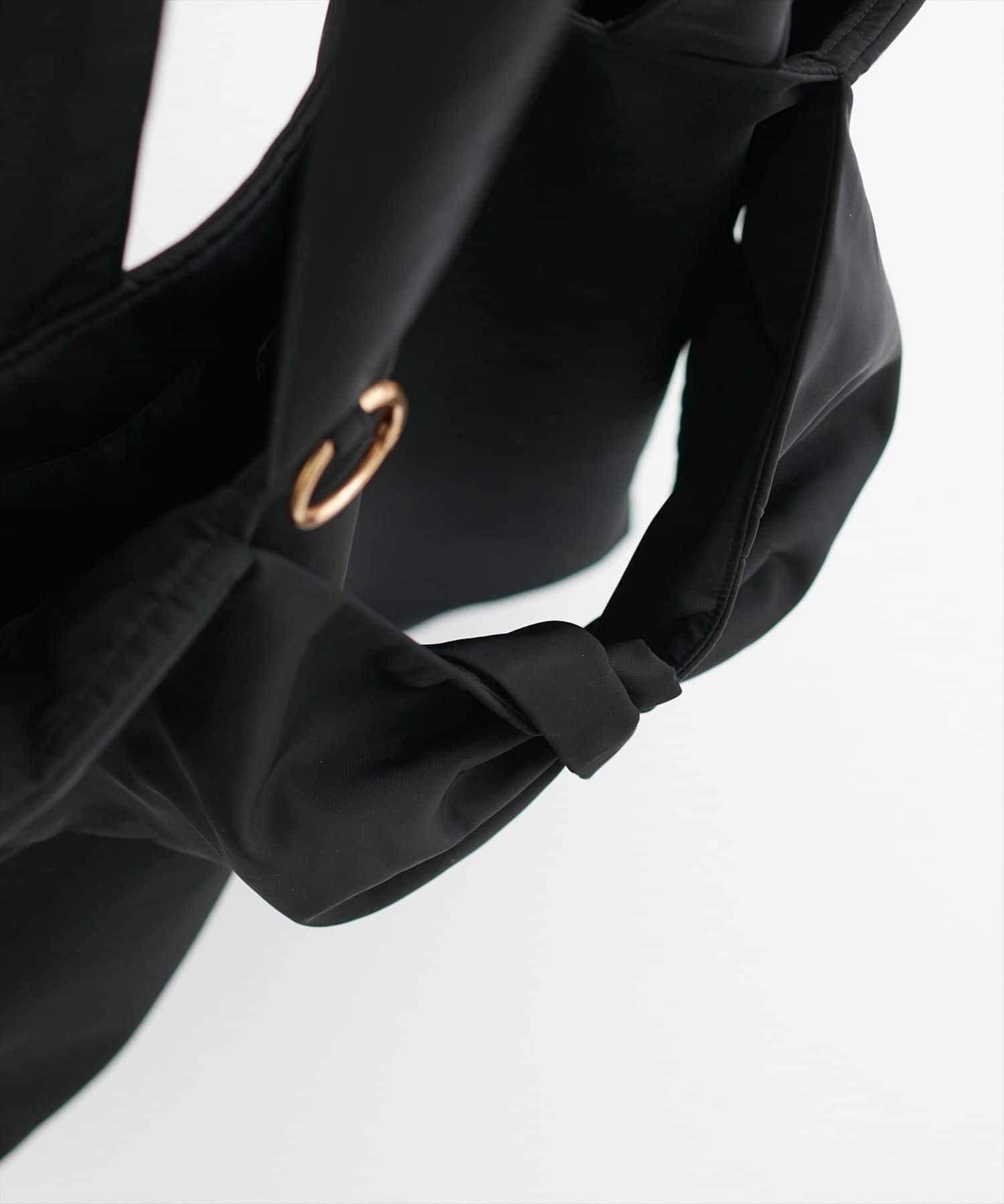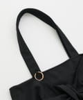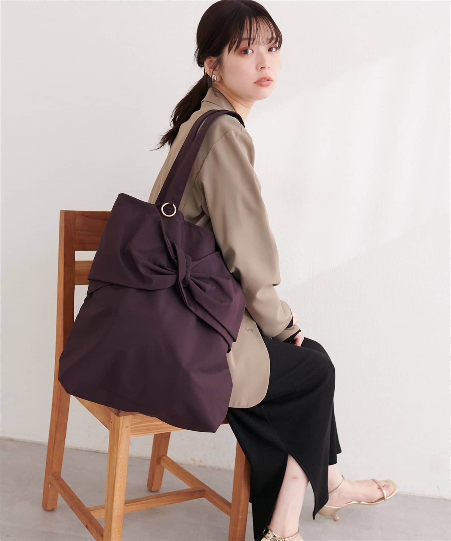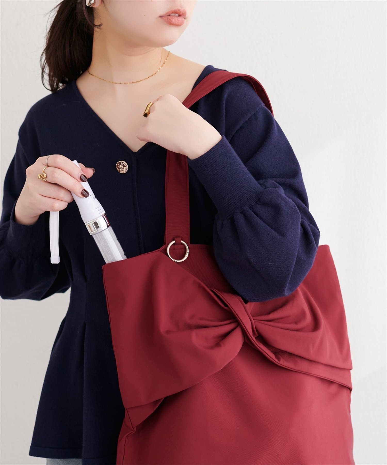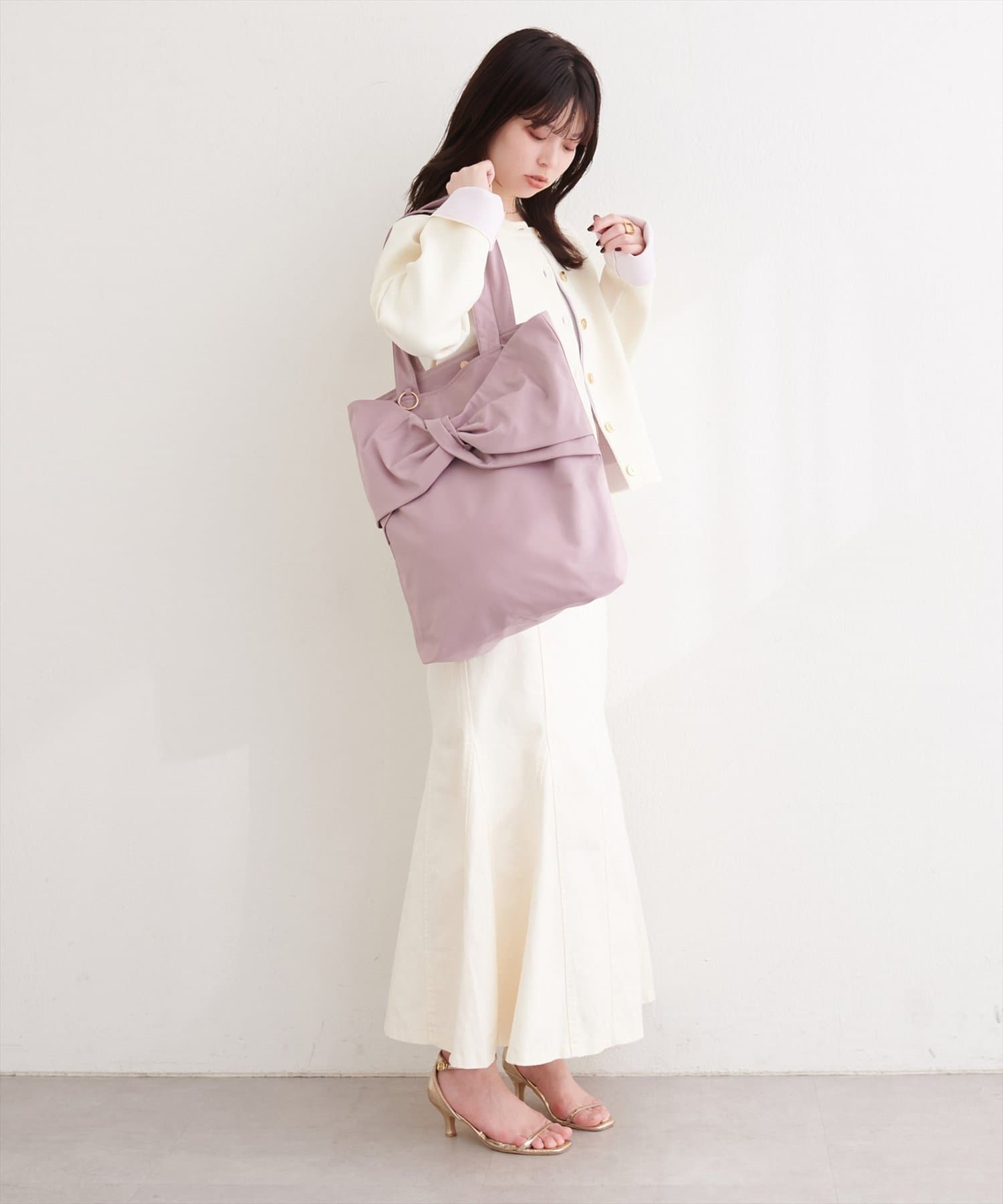 フロント部分にあしらわれた、ふっくらとしたねじりリボンが魅力的なトートバッグ。