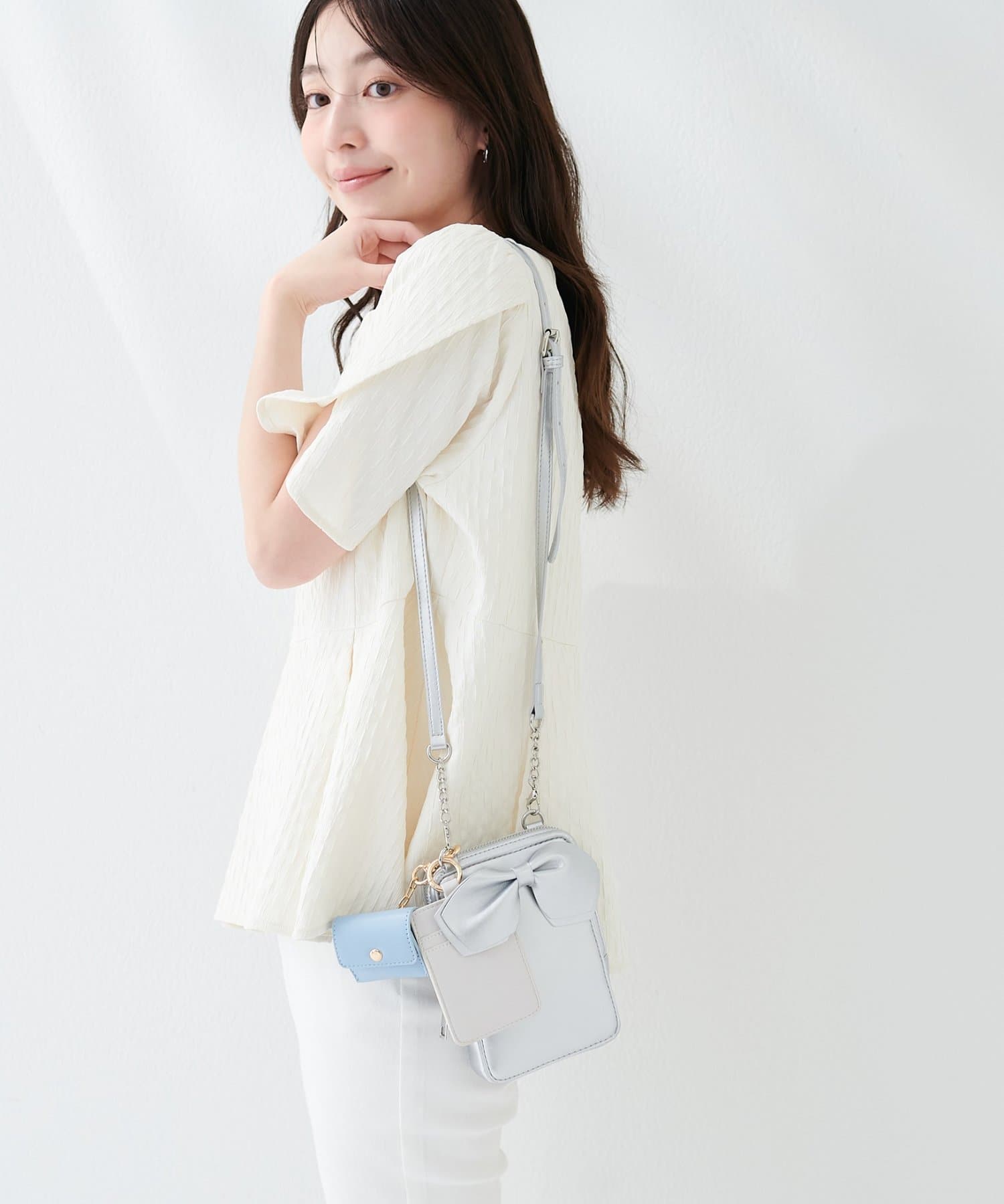 気分やコーディネートに合わせて、リボンを取り外したり、お手持ちのチャームやショルダーに付け替えたり。