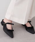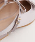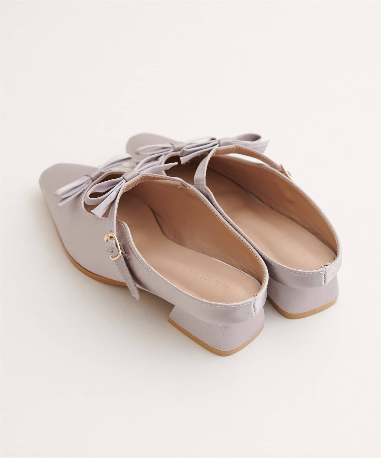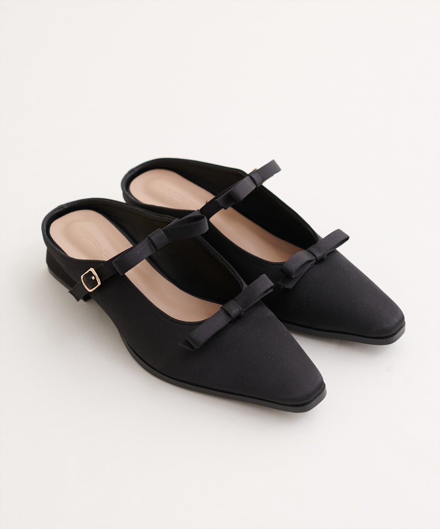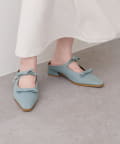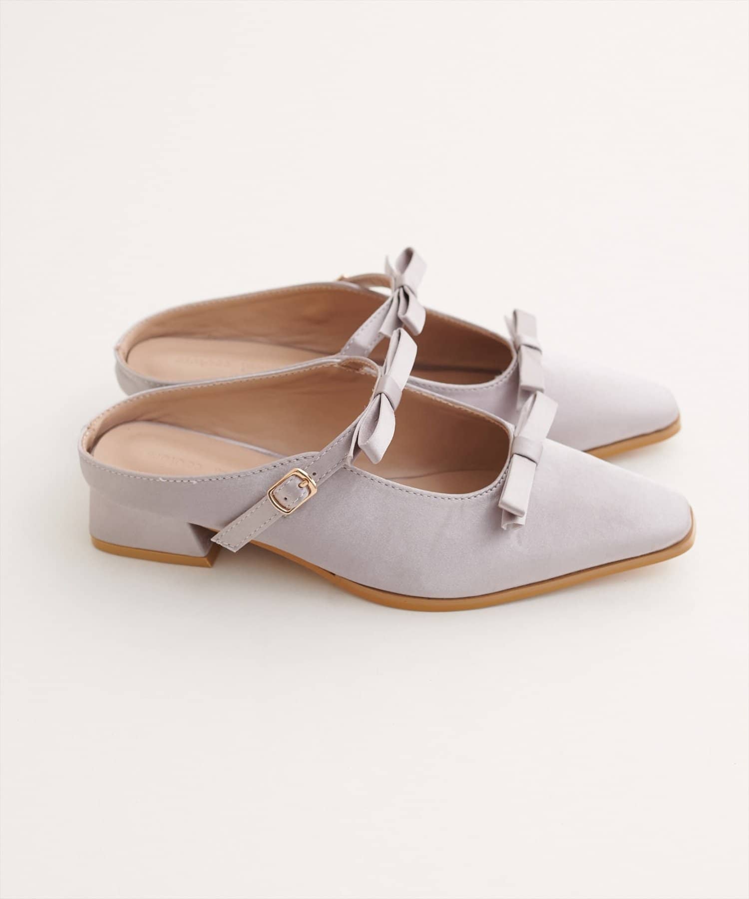 アッパー部分にあしらわれたダブルリボンがポイントの、大人可愛いミュール。