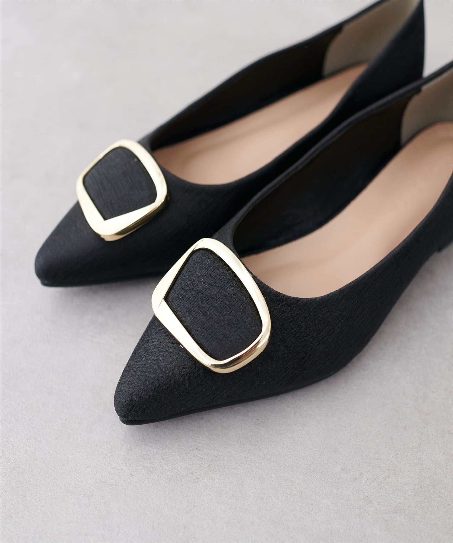 バックルのゴールドカラーが、上品な華やかさをプラスし、足元をエレガントに彩ります。