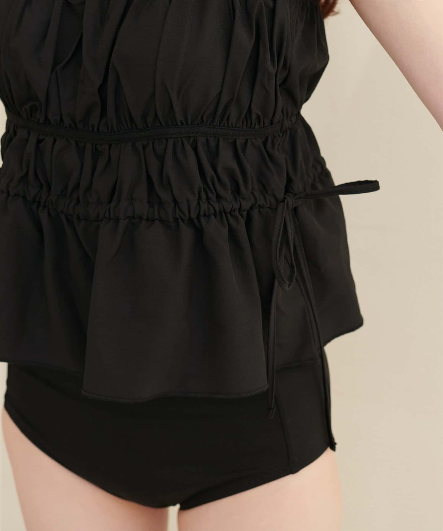 気になるお腹周りをさりげなくカバーしながら、女性らしいくびれを強調してくれます。