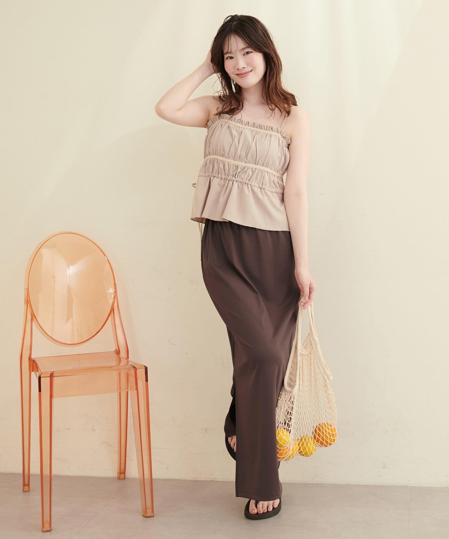 リゾートワンピースと合わせてエレガントな装いにも。