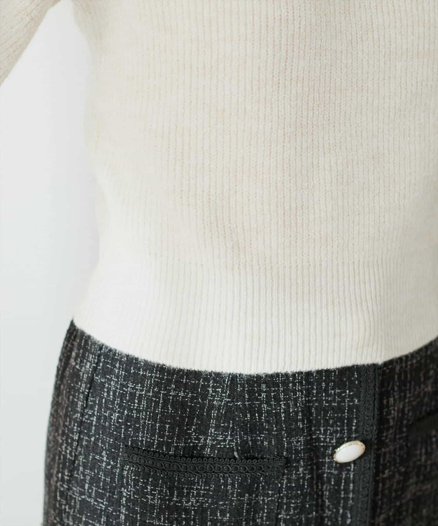 スカートでもパンツでも幅広いアイテムとマッチする1枚持っておくと重宝するトップスです。