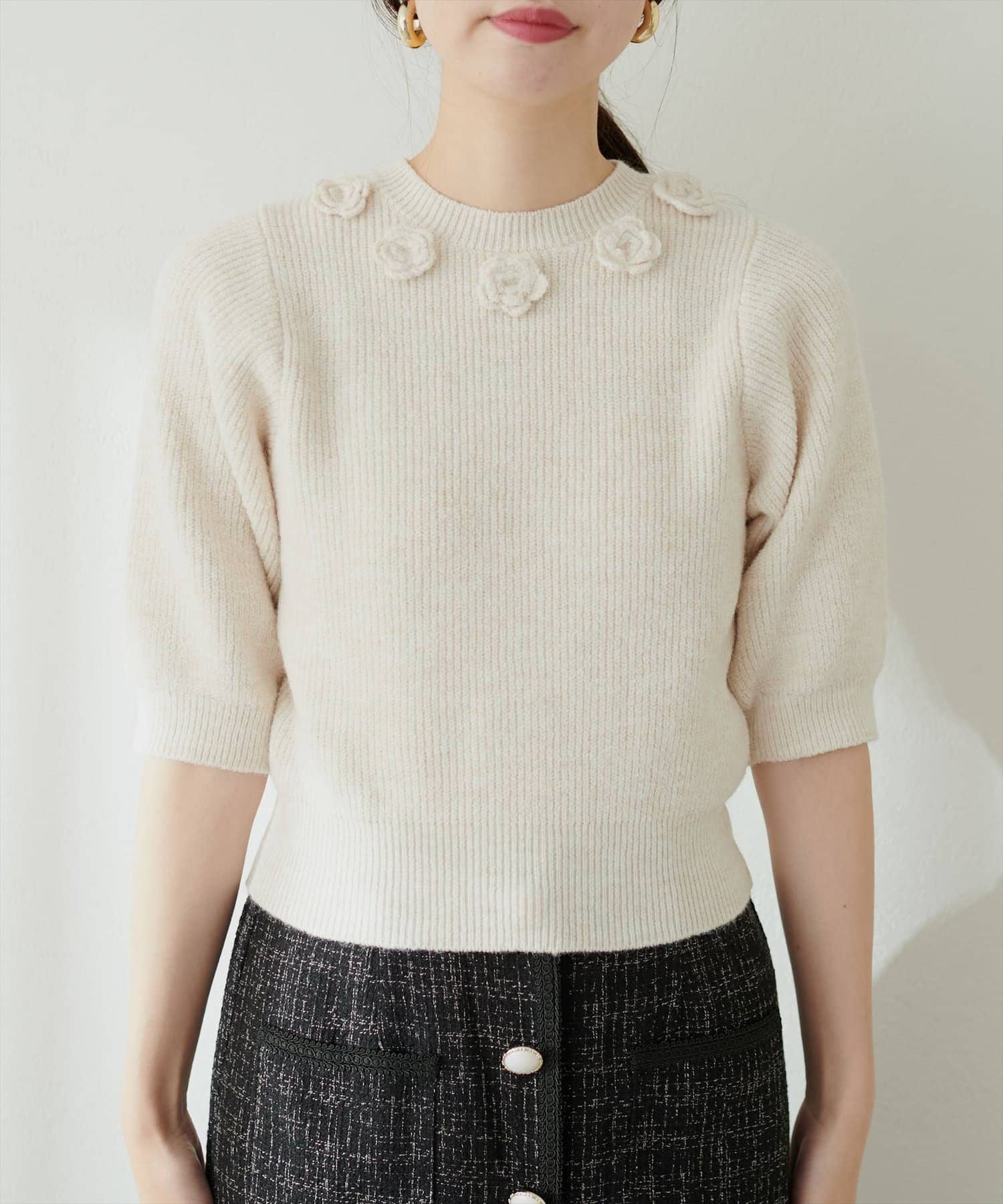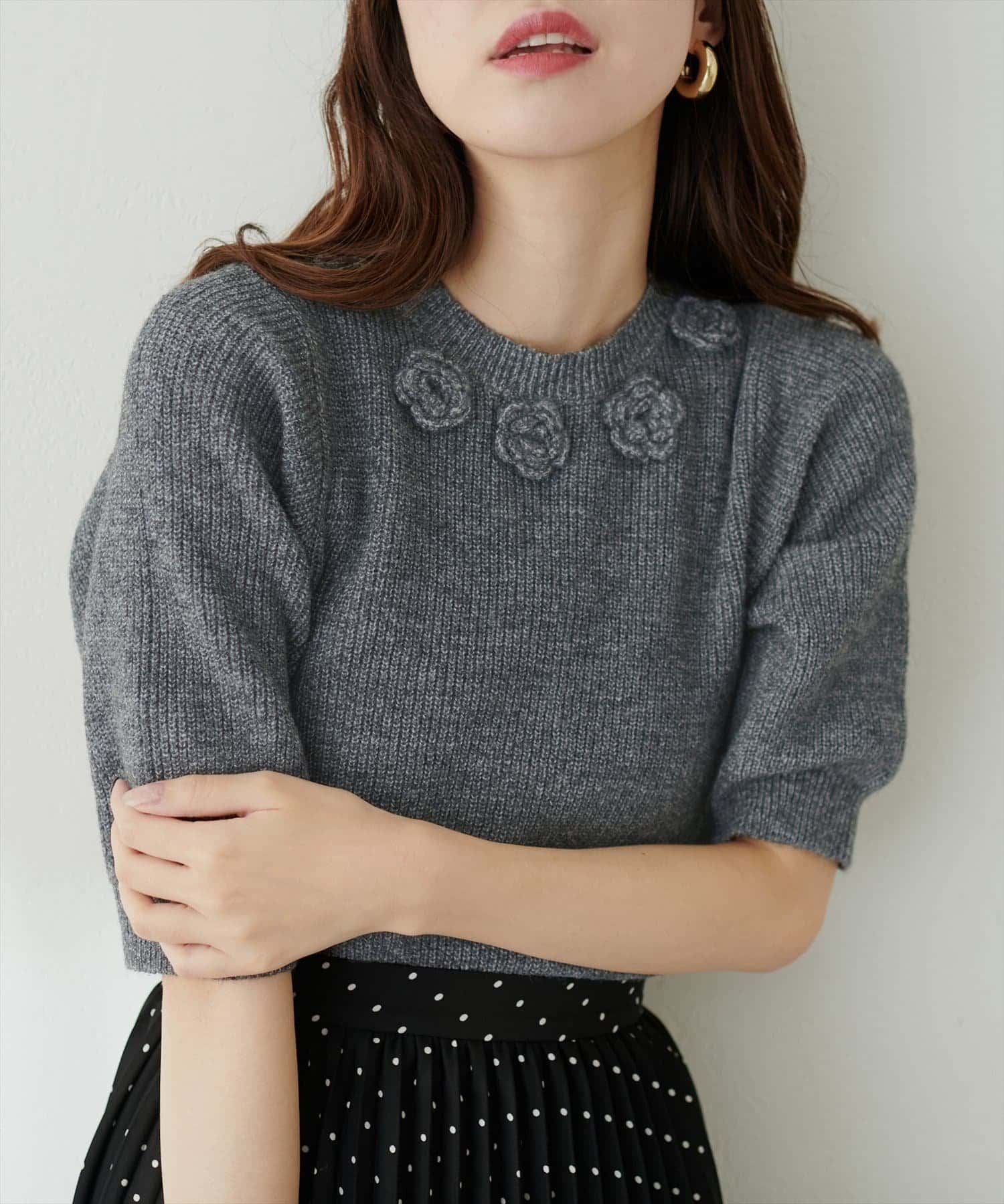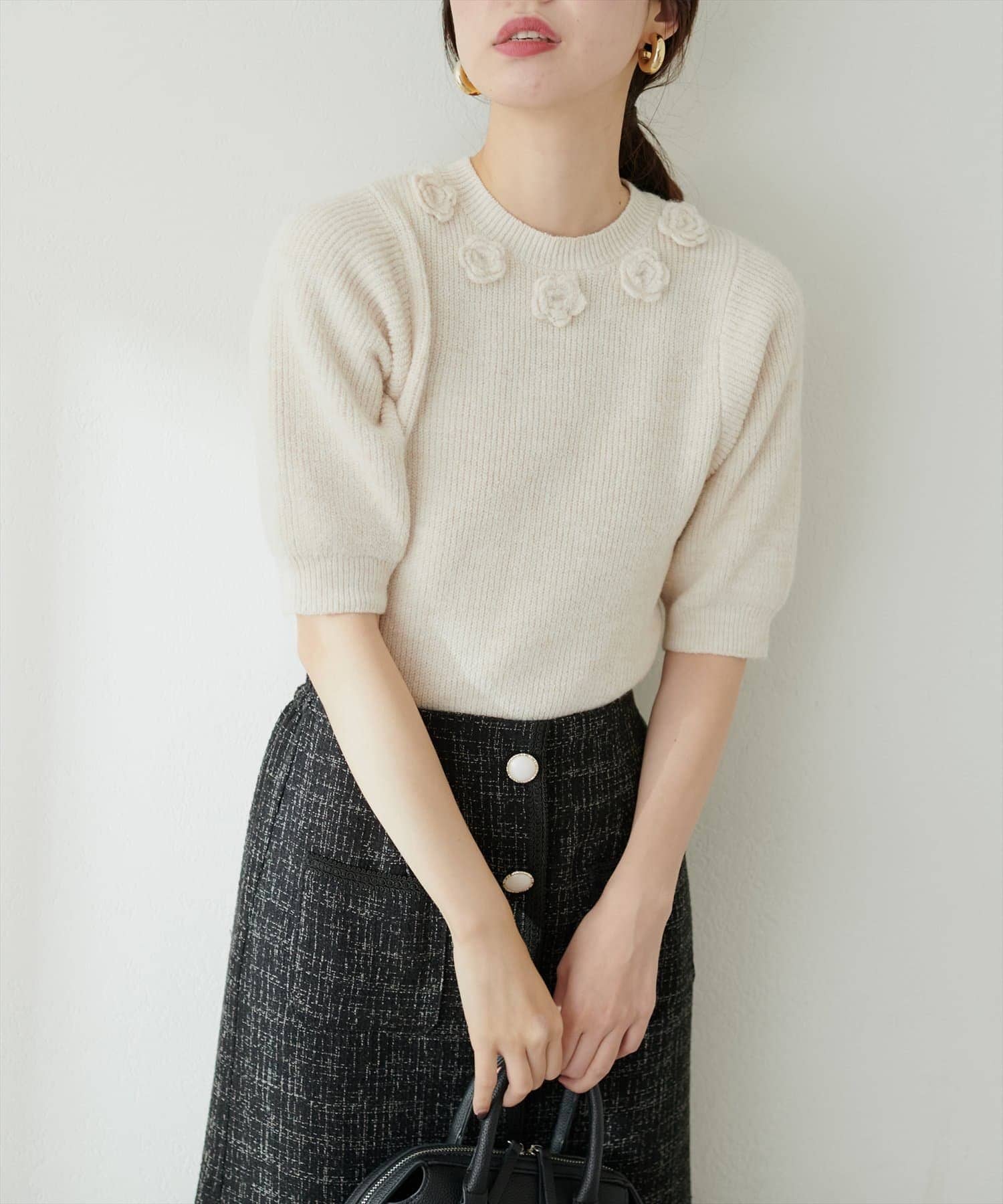 首元のお花と袖のディテールでポイントを効かせたこだわりの1枚。