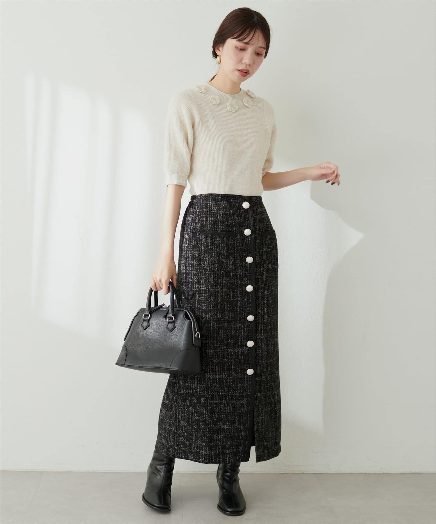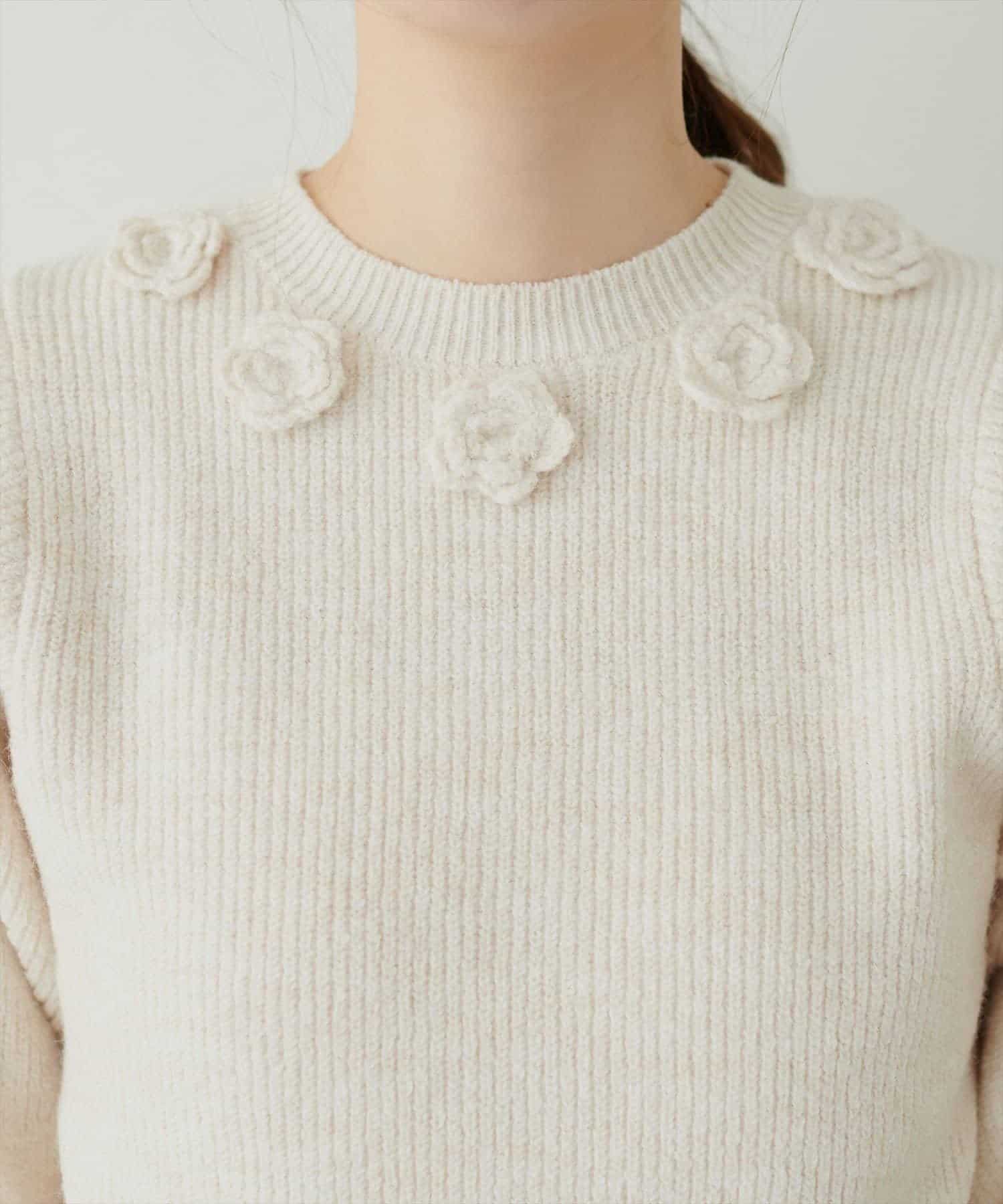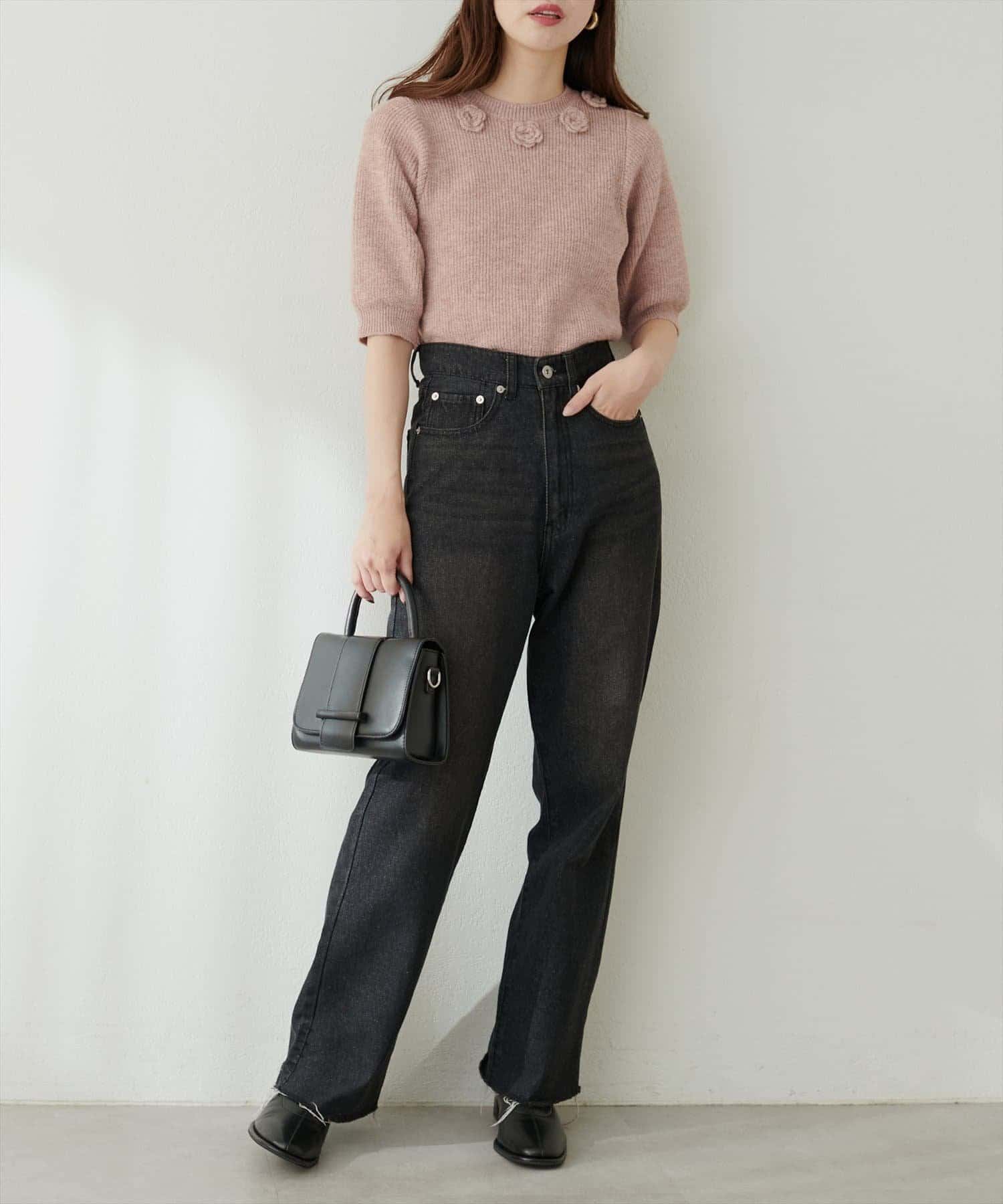 首元のお花と袖のディテールでポイントを効かせたこだわりの1枚。