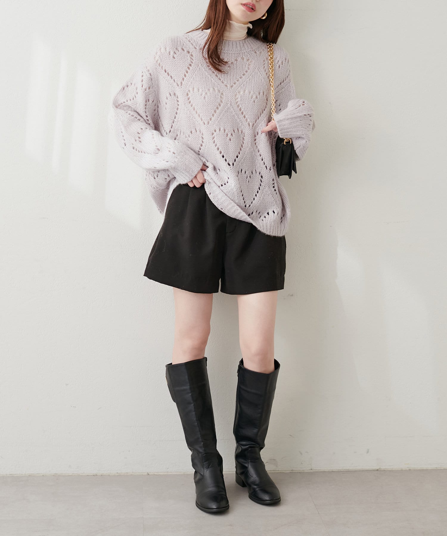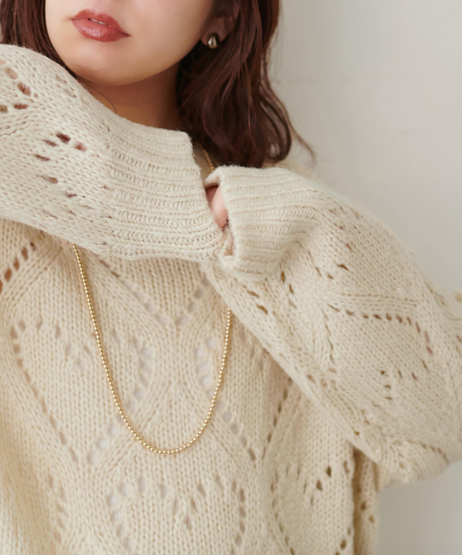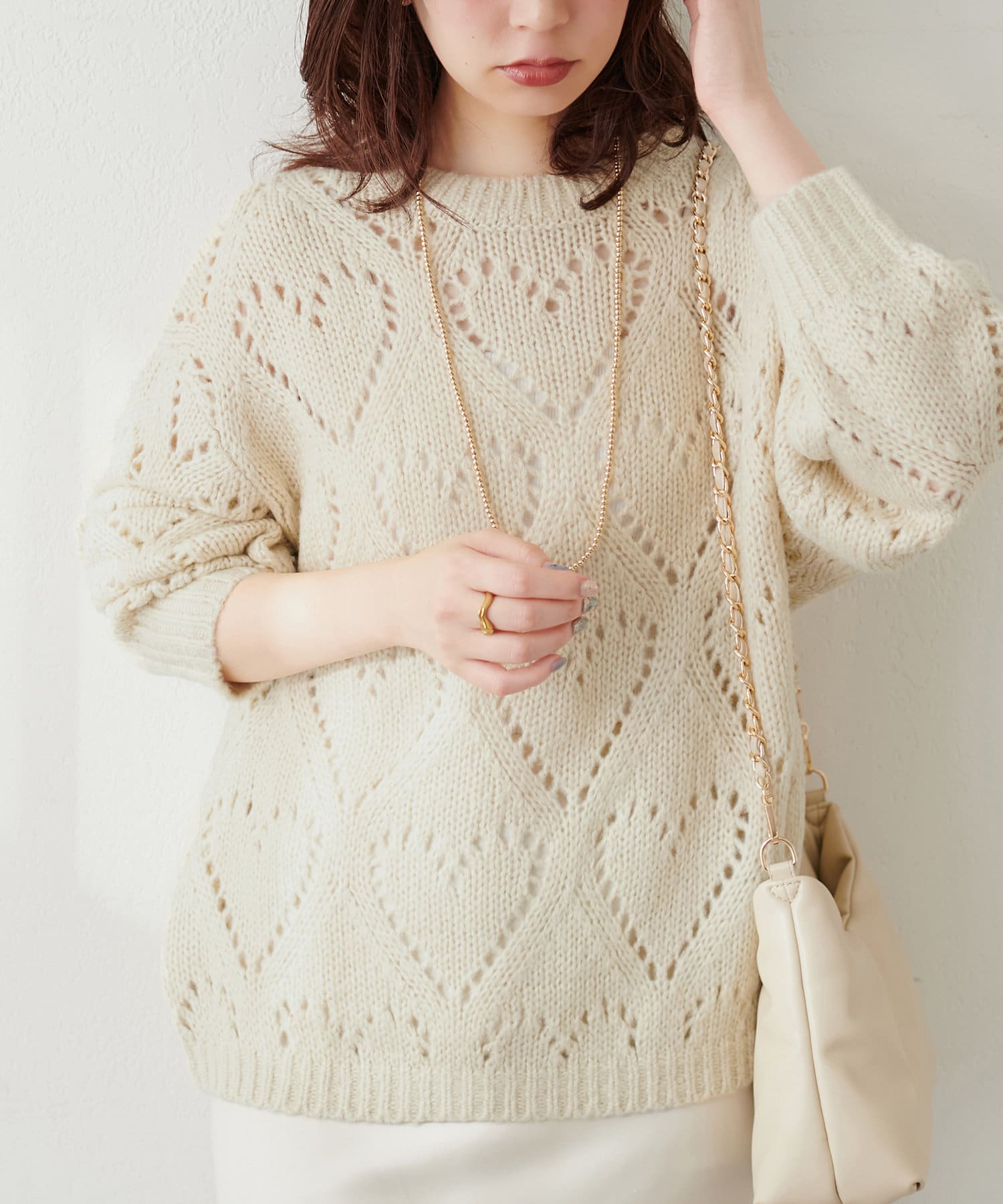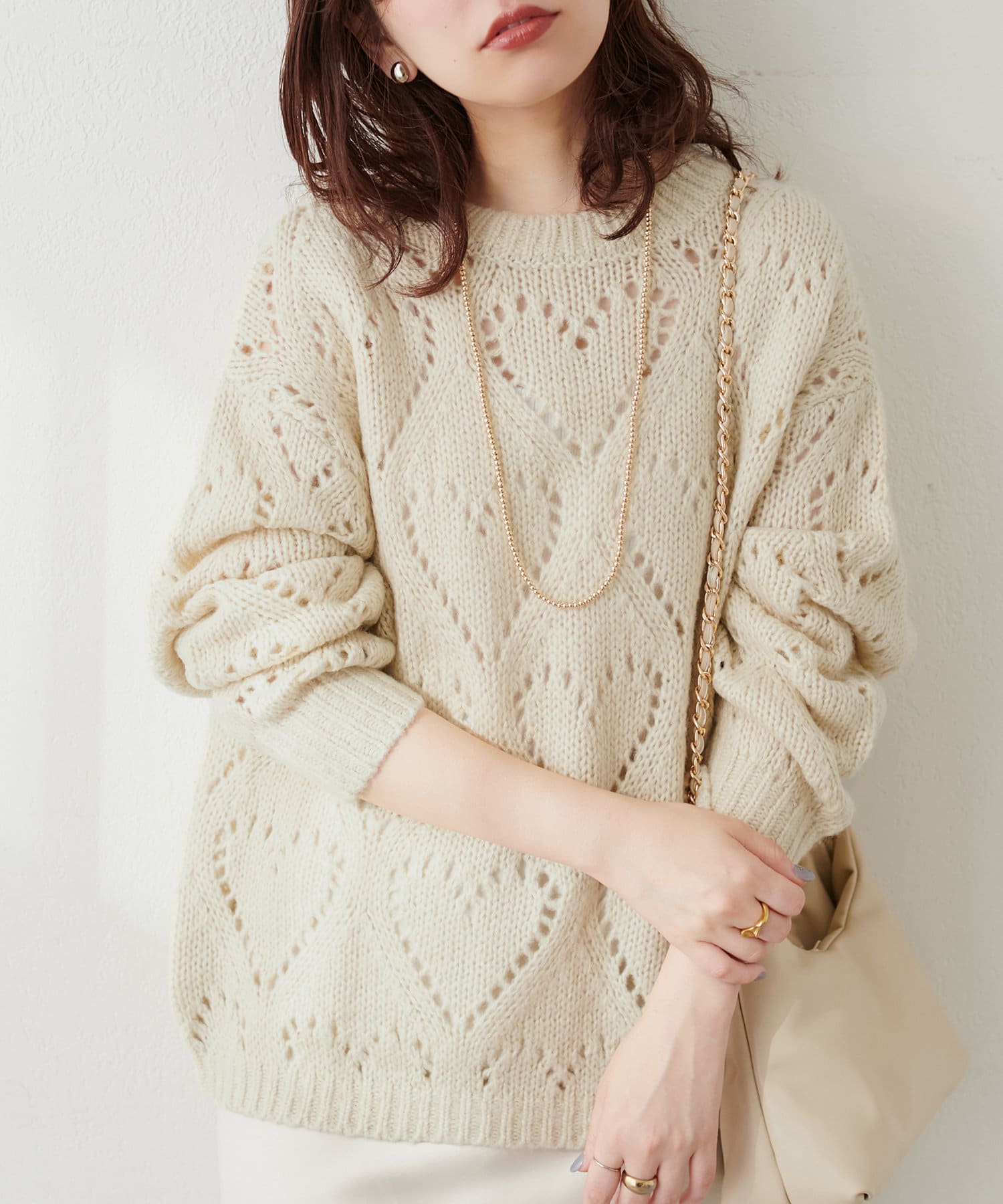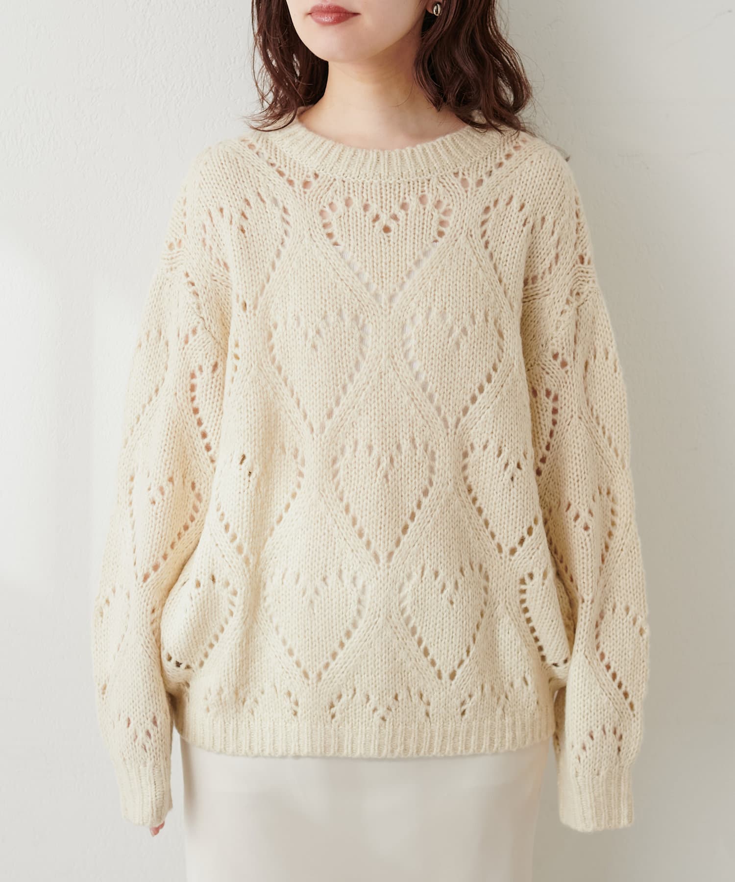 TOP > NICE CLAUP / OLIVE des OLIVE OUTLET > レディース > トップス > ニット/セーター > 【natural couture】透かしハート柄ゆるニット