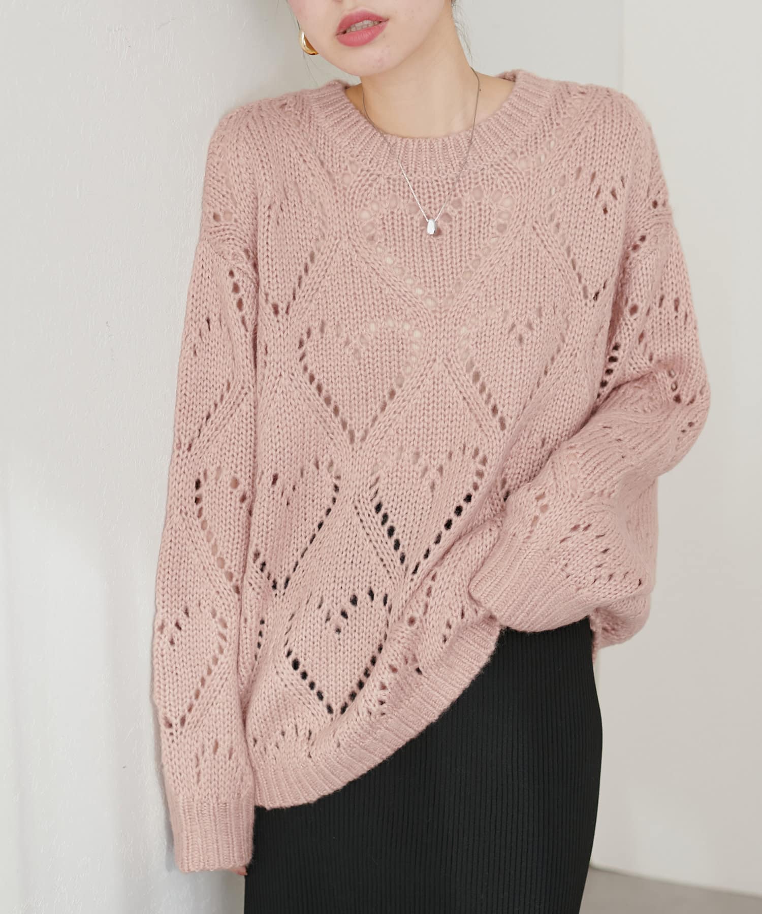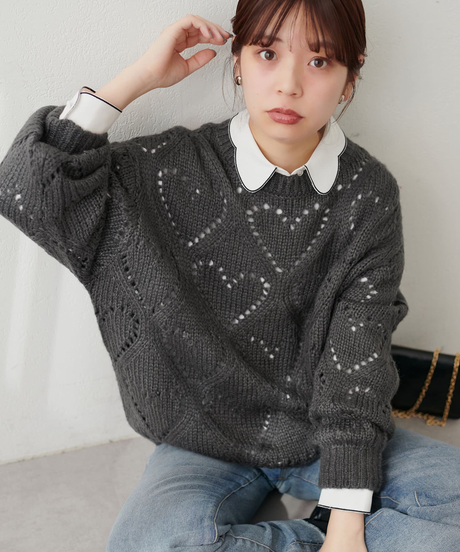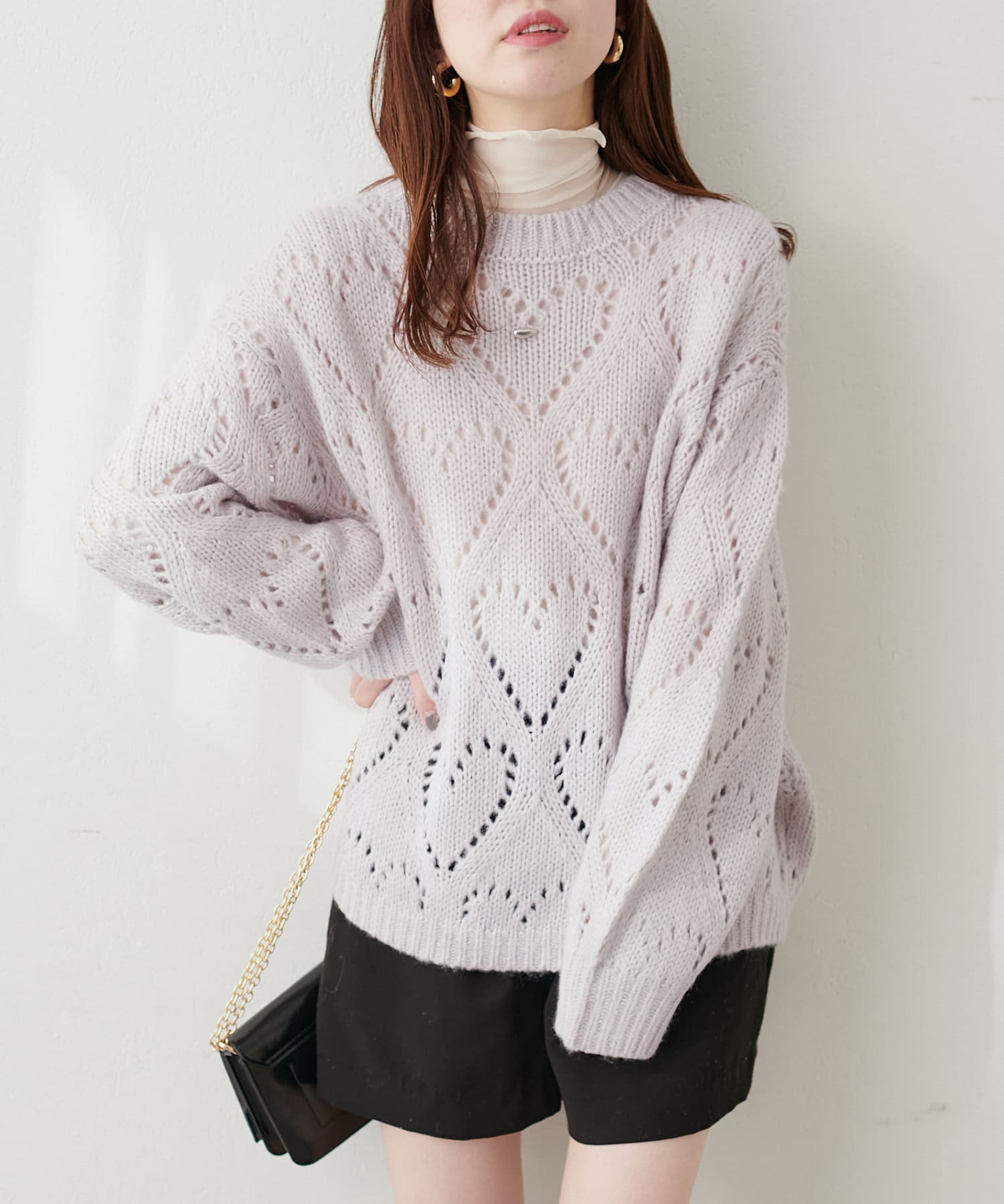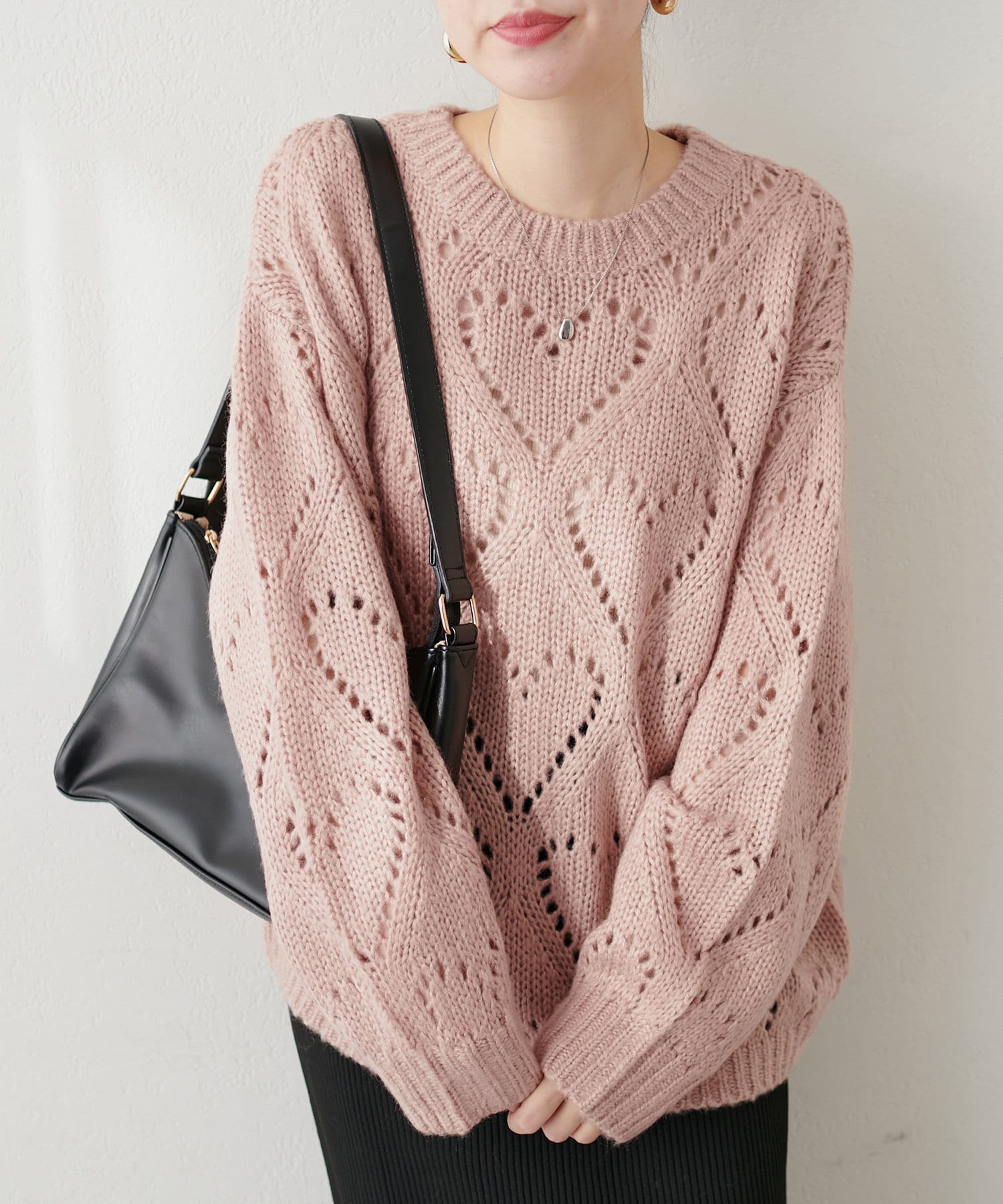 • NICE CLAUP / OLIVE des OLIVE OUTLET(ナイスクラップ  / オリーブ デ オリーブ アウトレット) 【natural couture】透かしハート柄ゆるニット