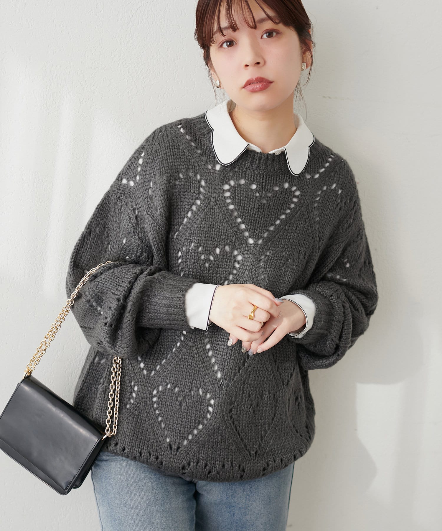 NICE CLAUP / OLIVE des OLIVE OUTLET(ナイスクラップ  / オリーブ デ オリーブ アウトレット) 【natural couture】透かしハート柄ゆるニット