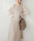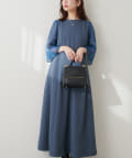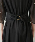 オケージョンや観劇など、きれいめな装いを求める日にぴったりなワンピースです。シルエットの美しさにこだわり、身幅はゆったりとしつつも、後ろのベルトでしっかりと引き締めることで、すっきりとした着こなしが可能です。
