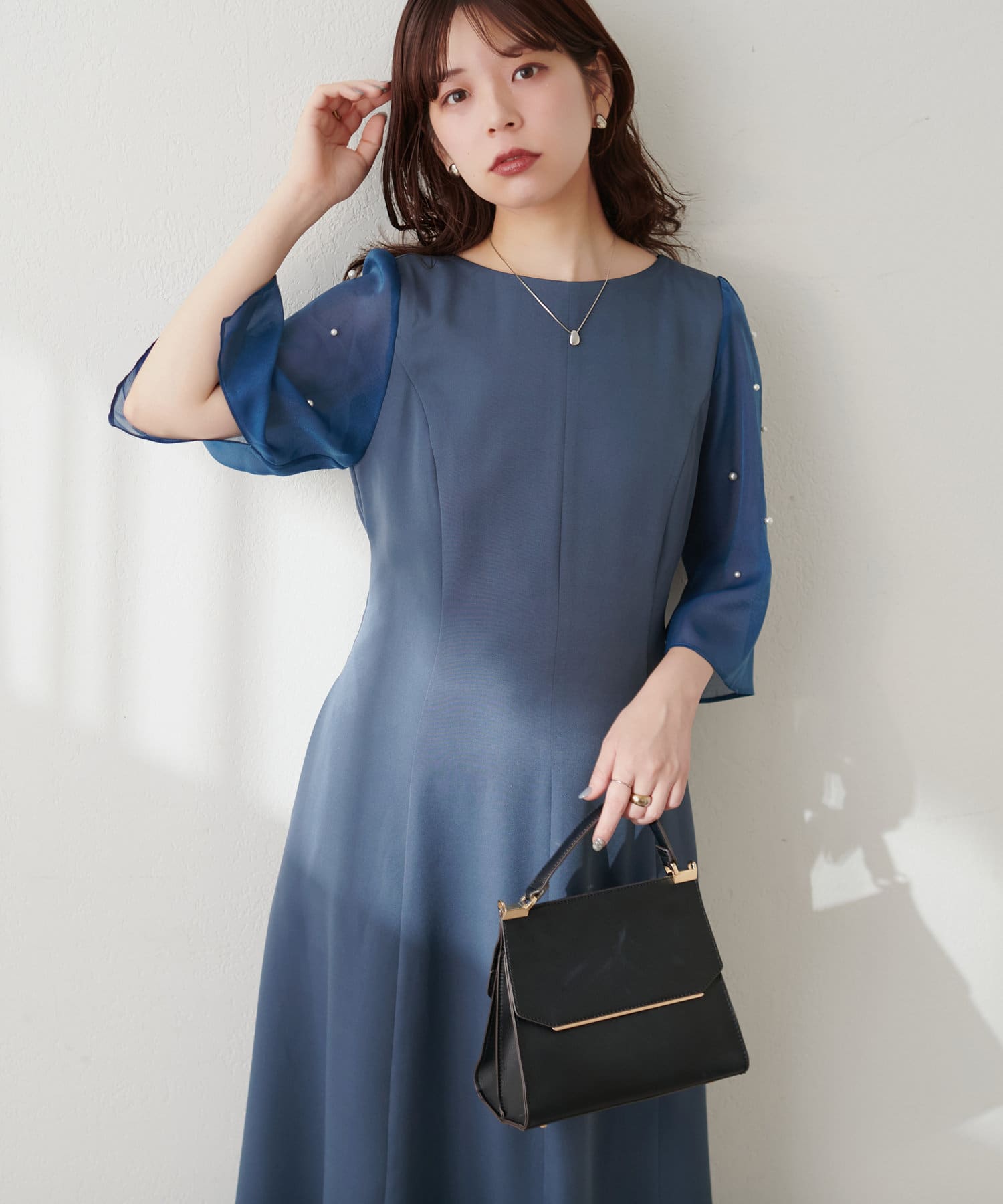首周りは鎖骨が見えるほどの深さで開いており、ウエストに切り替えがないデザインなので、骨格ストレートの方にも着こなしやすくなっています。