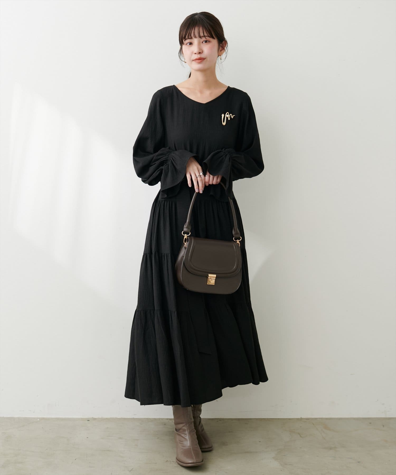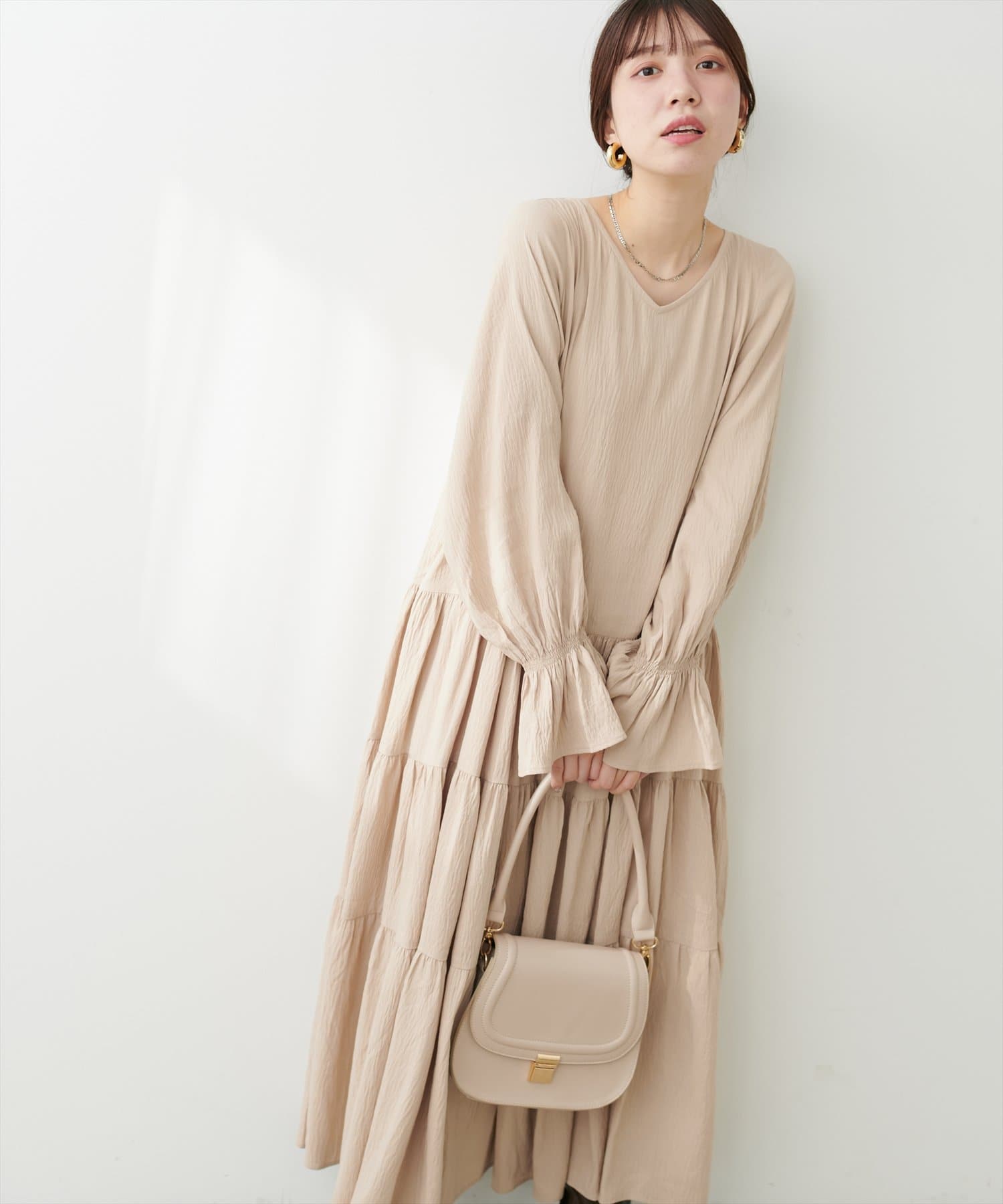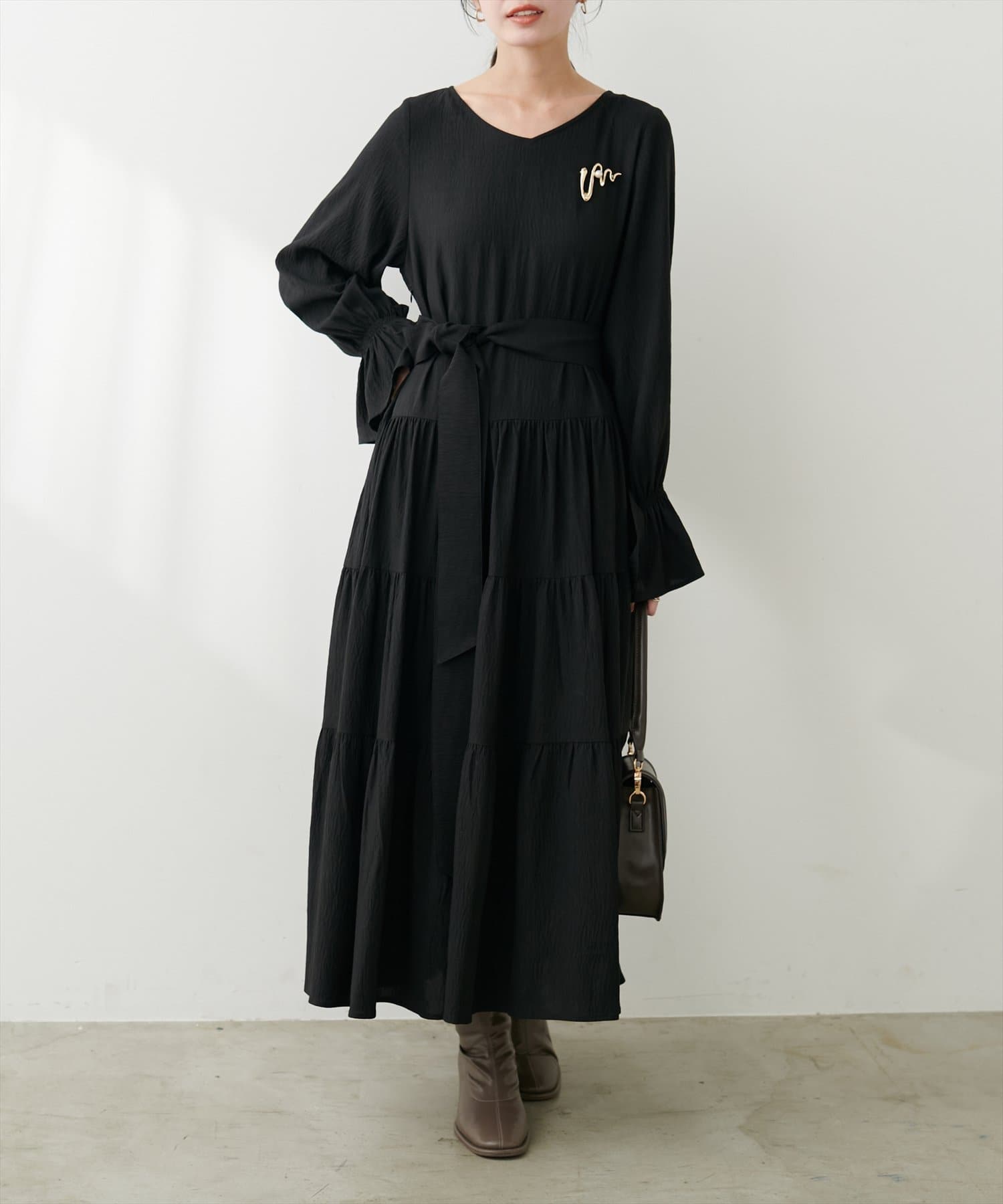 ゆったりとした身頃でマタニティ期もストレスフリーに着ていただけるワンピース。