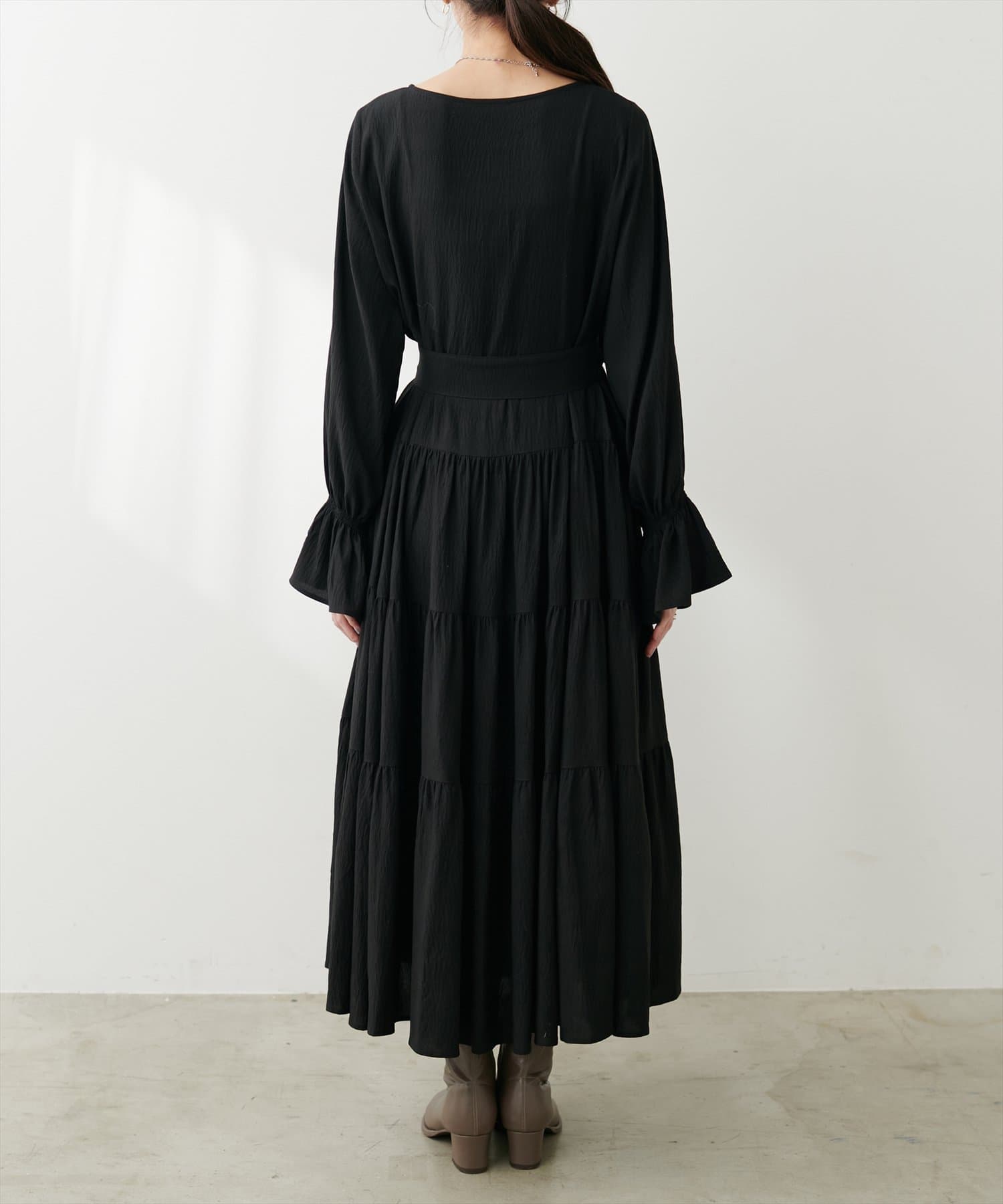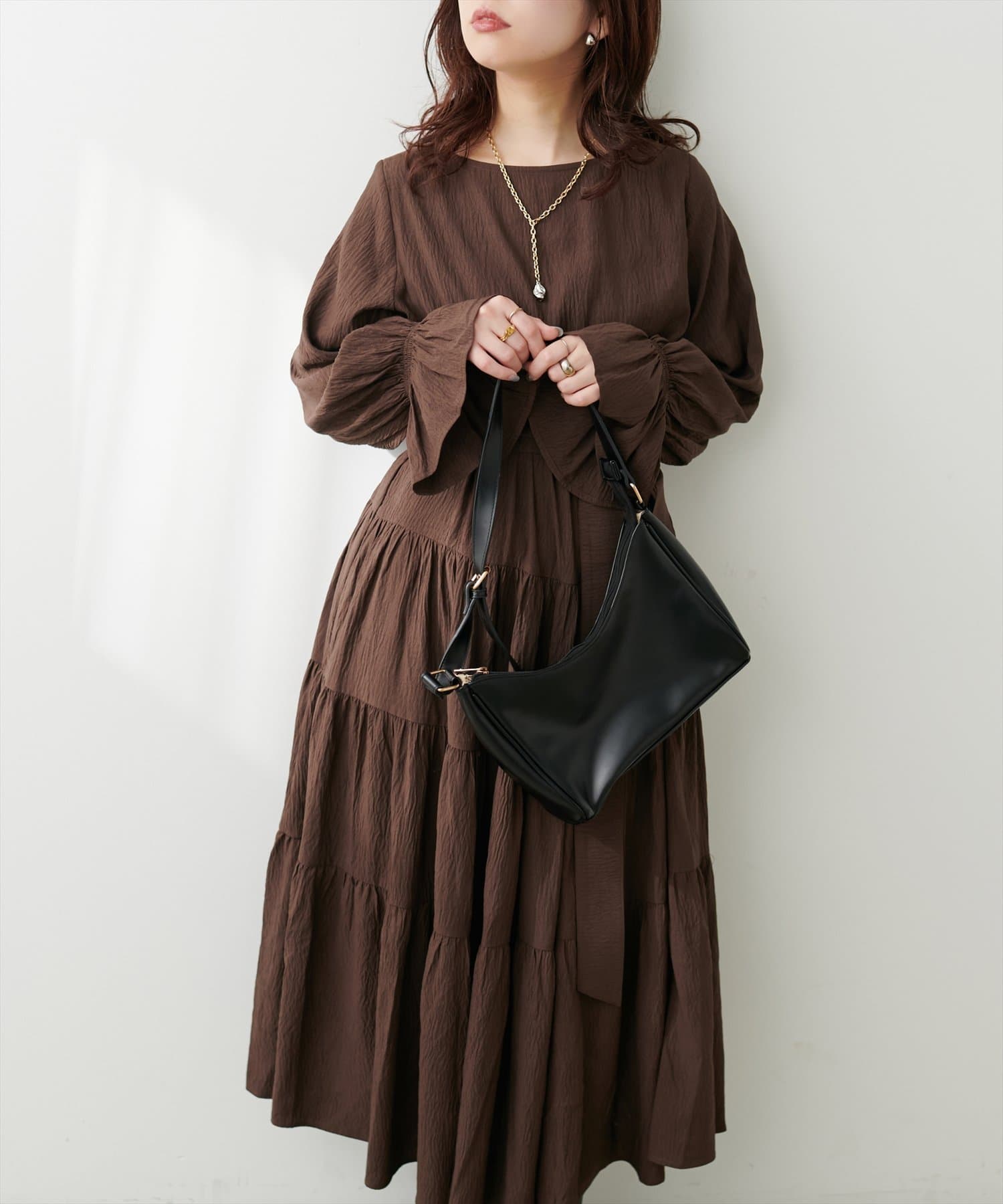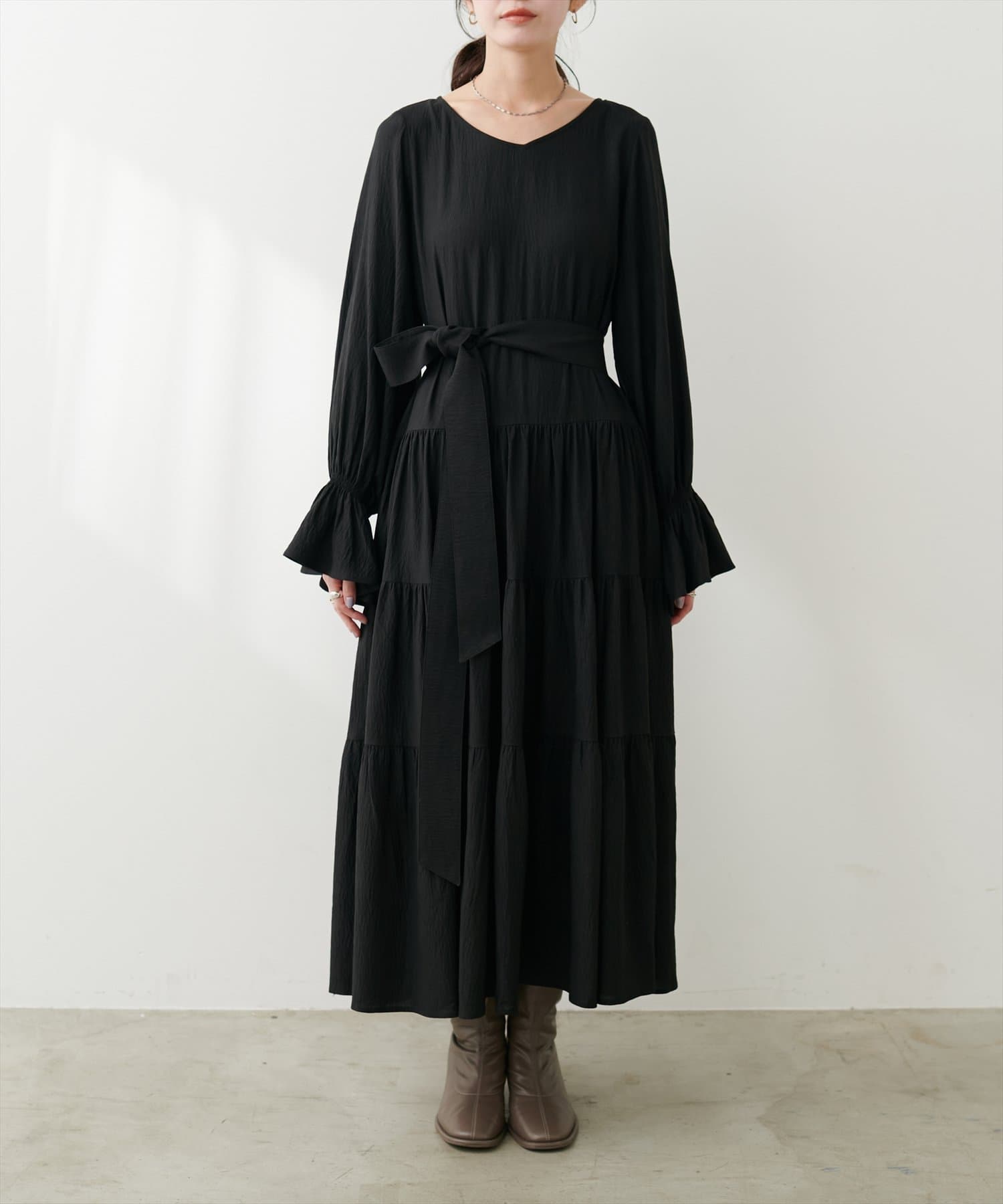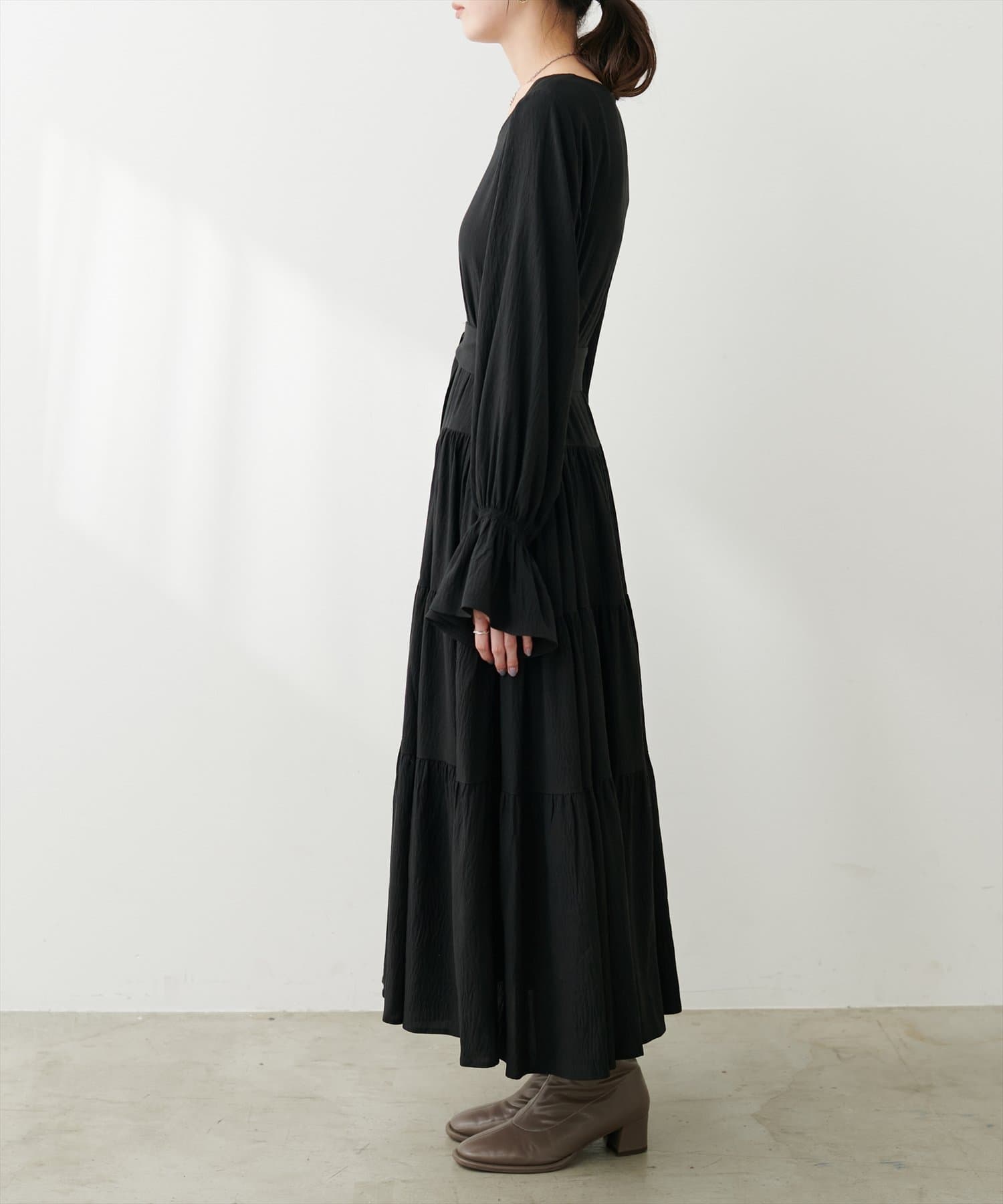 ゆったりとした身頃でマタニティ期もストレスフリーに着ていただけるワンピース。