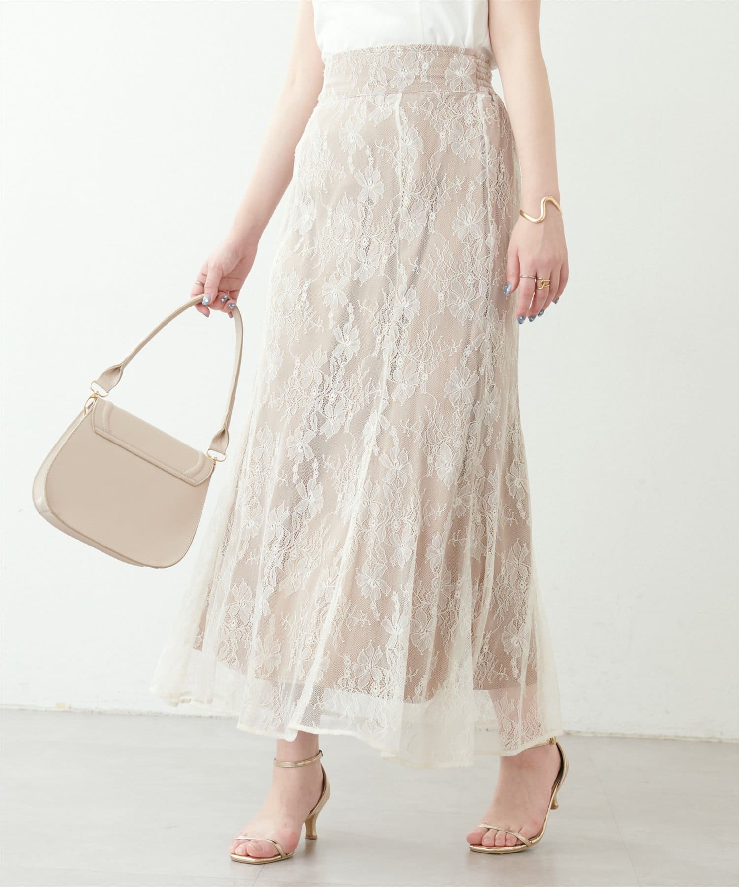【natural couture】<osono>長さ変えれる配色レーススカート