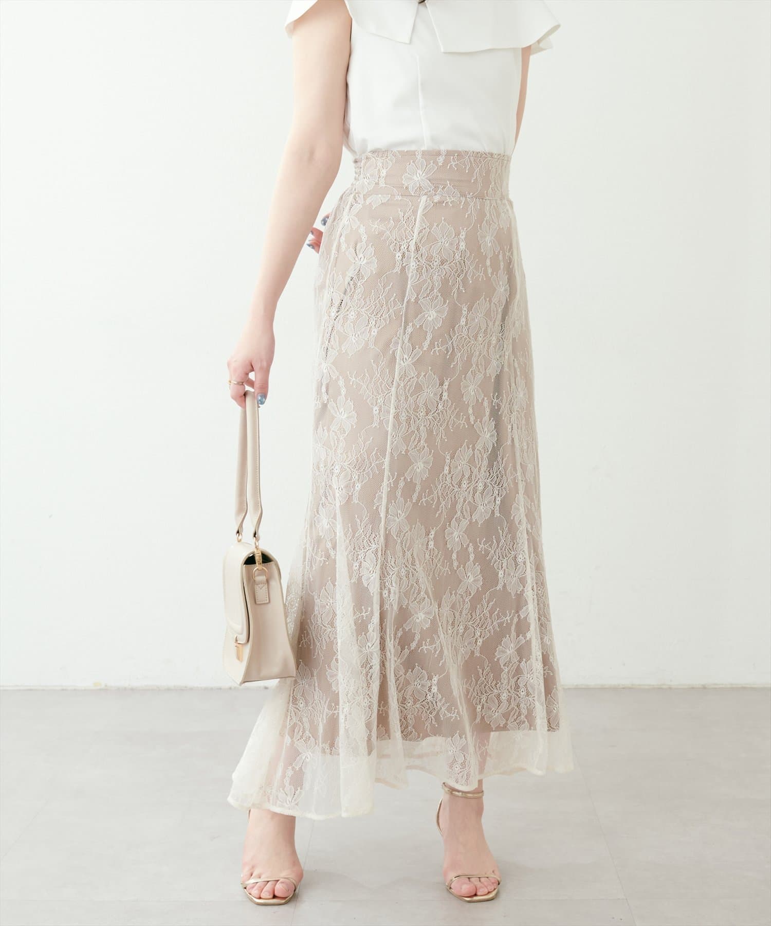 しなやかなスカートの動きと共に裾レースの透け感が上品且つ可愛らしい仕上がりになっています。