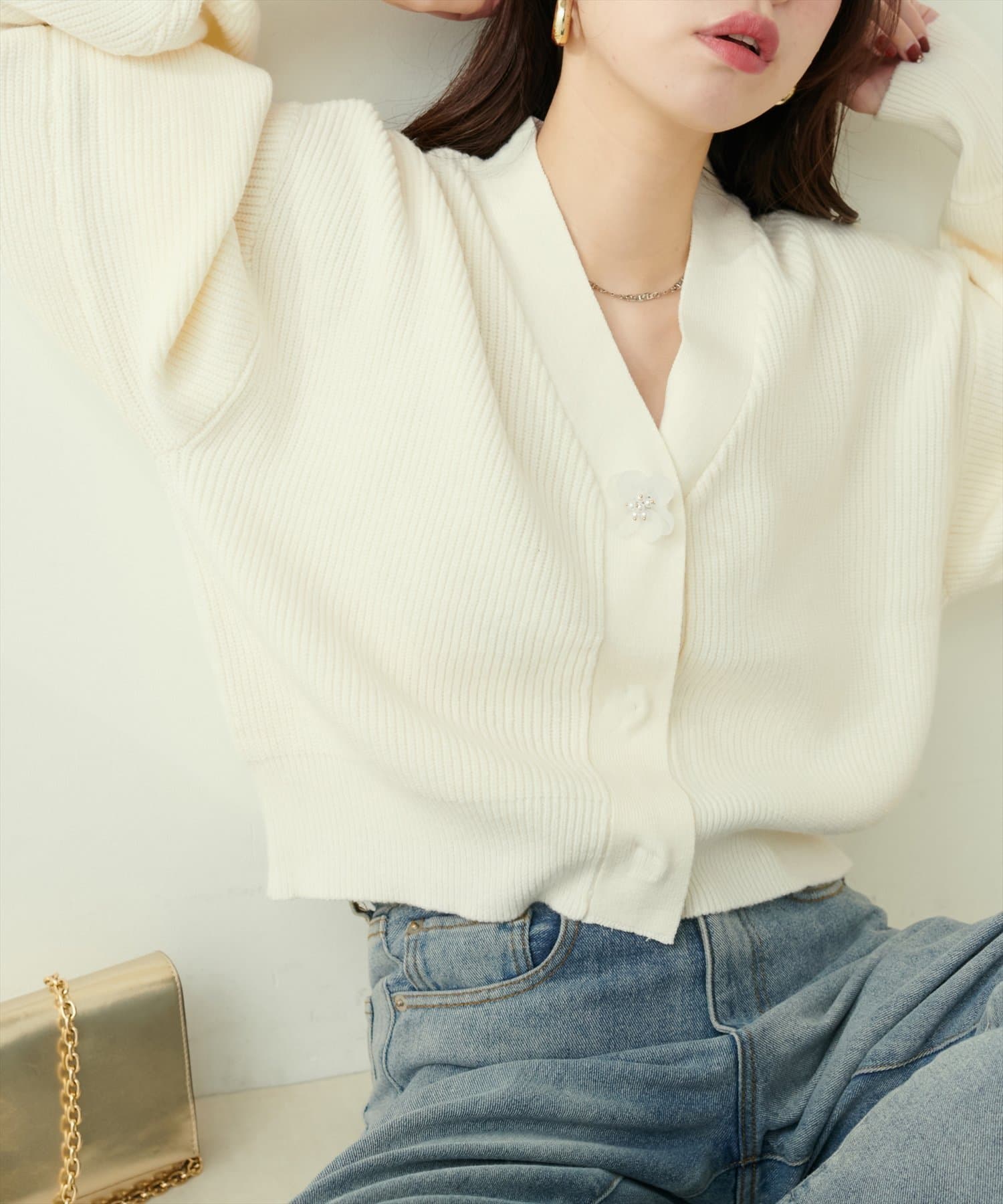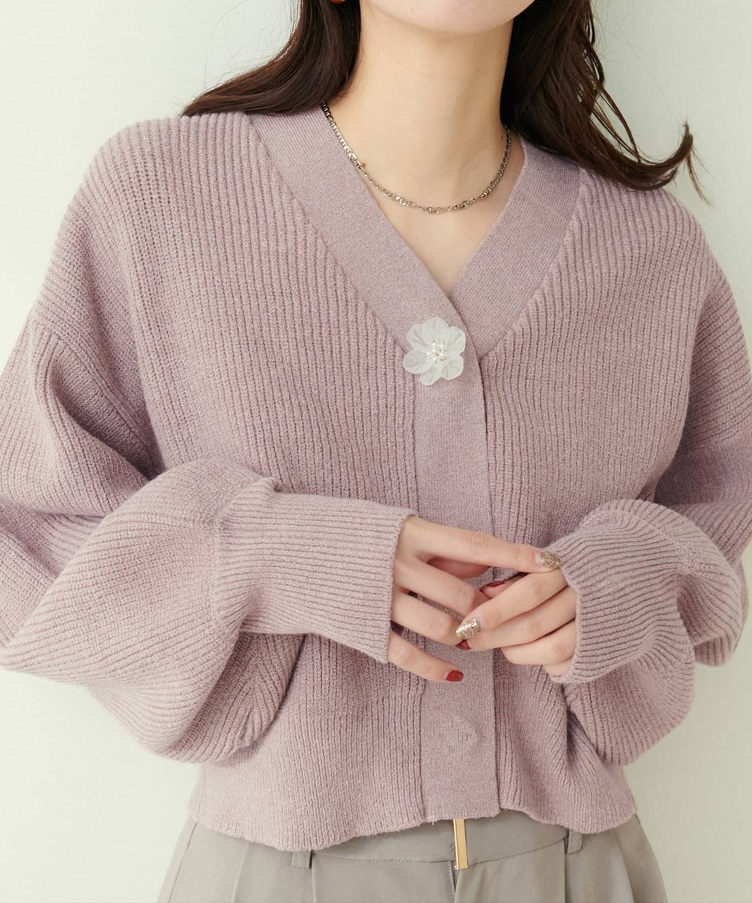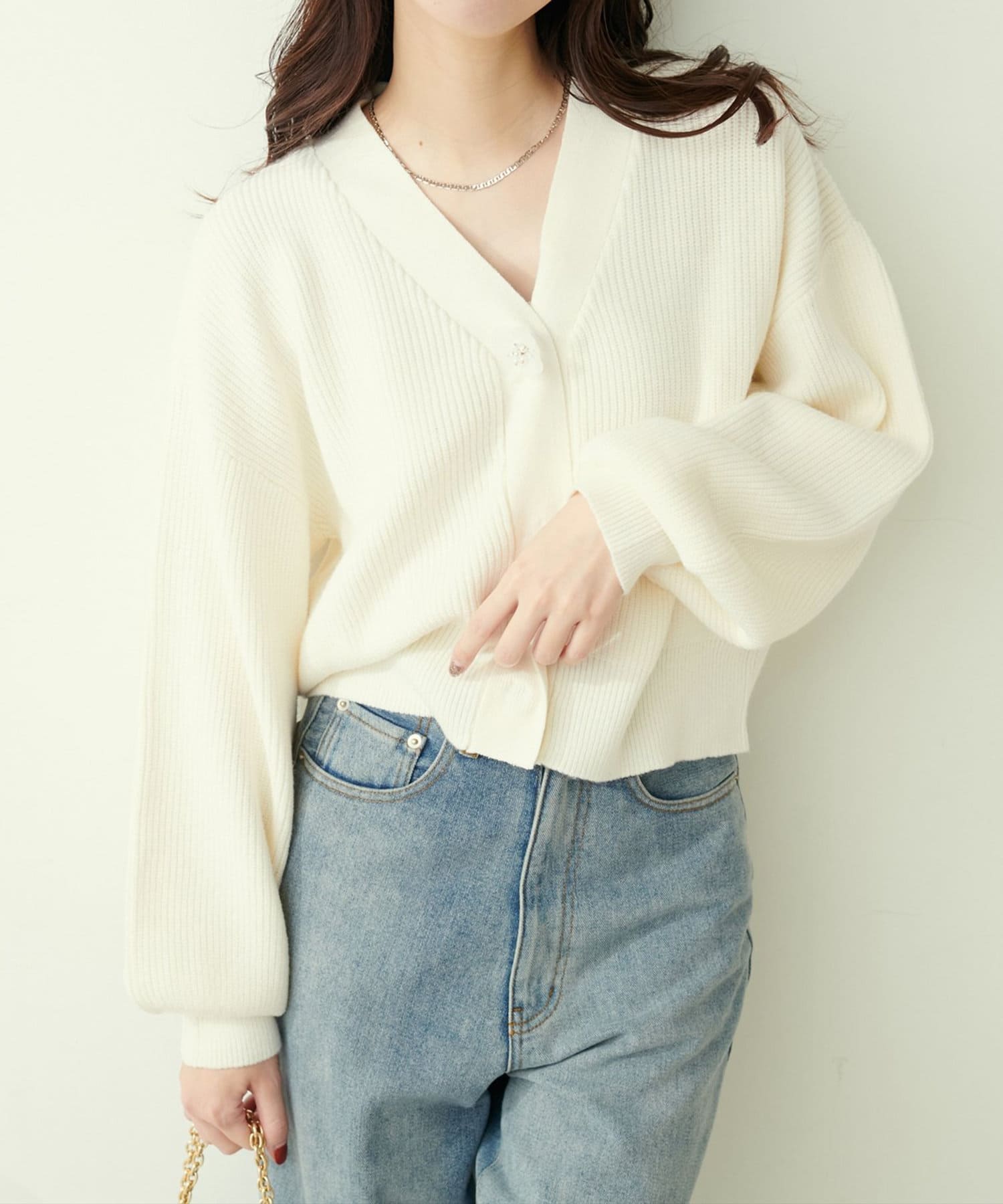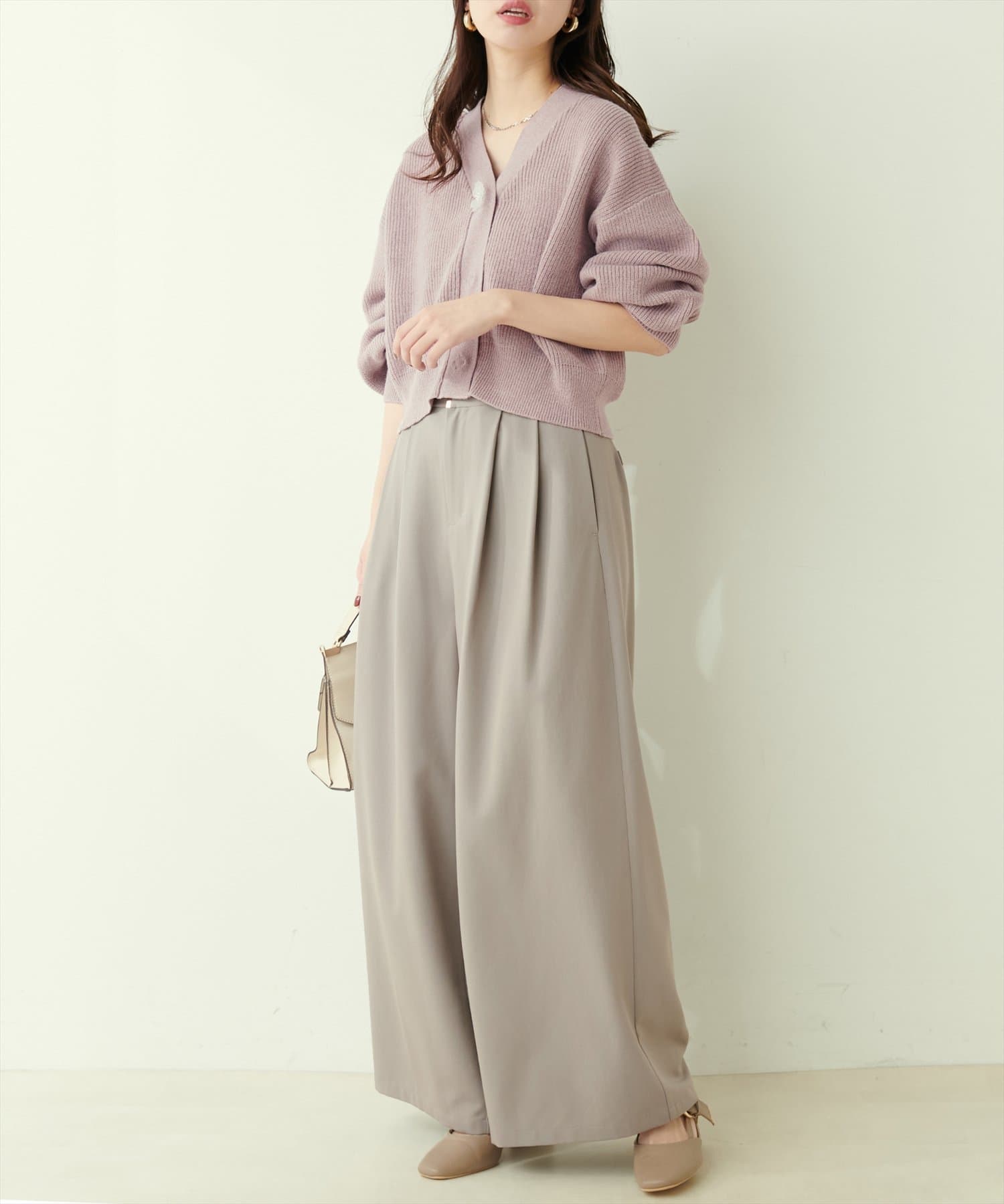 リブの編地でトレンド感があり、伸縮性にも優れていてリラクシーなカーディガン。