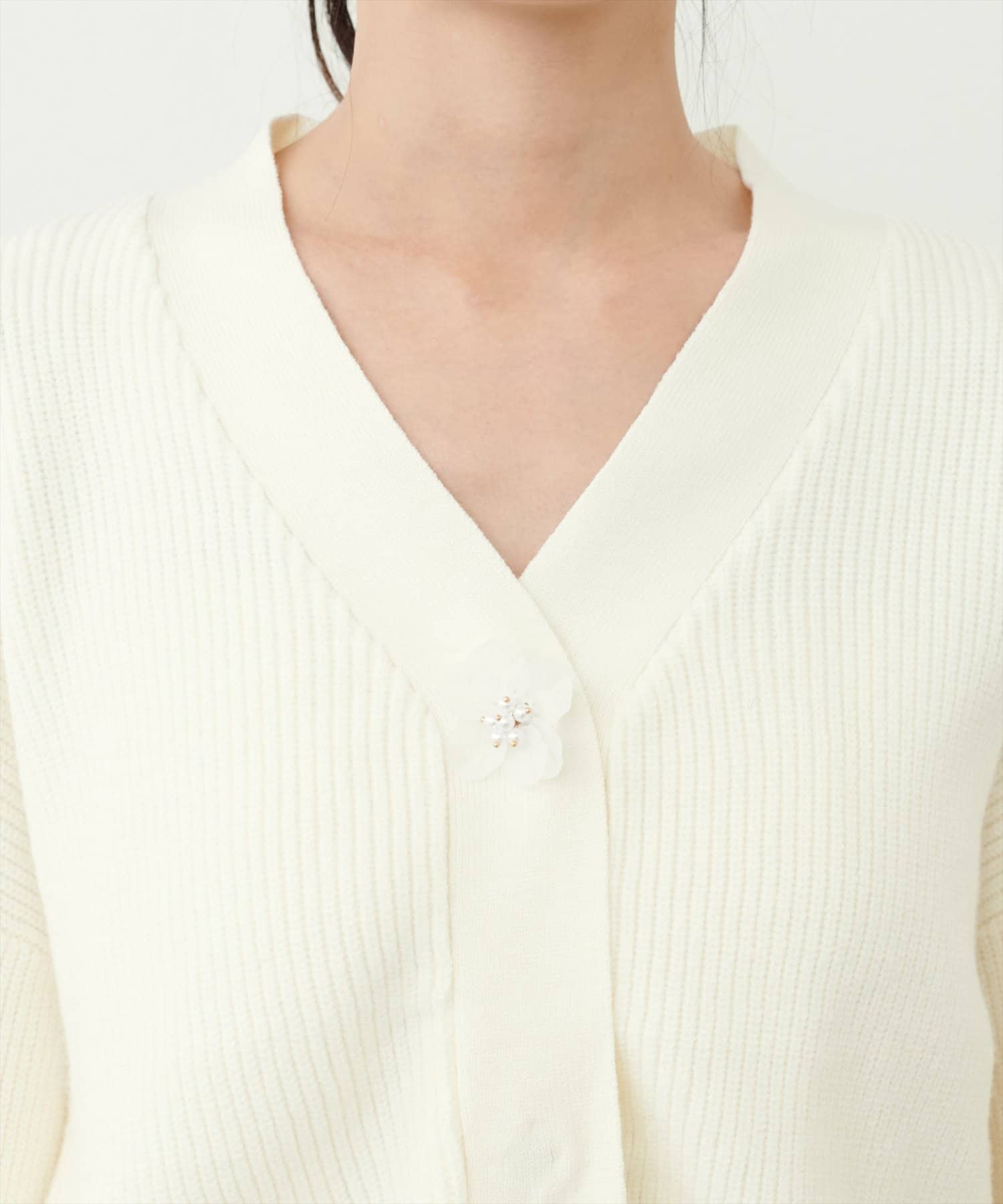 フロントのお花釦が目を引き、シンプルながら上品な1枚です。