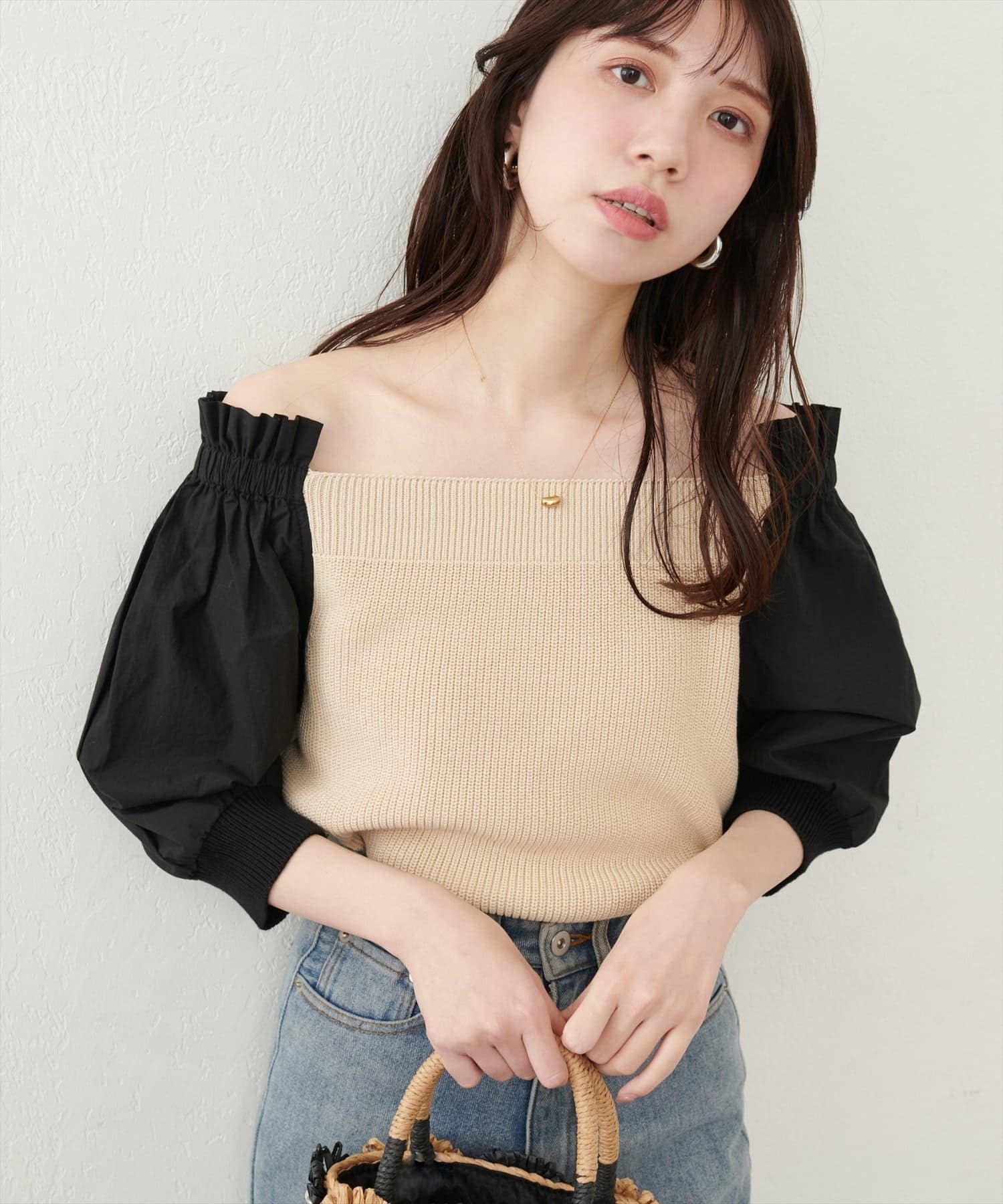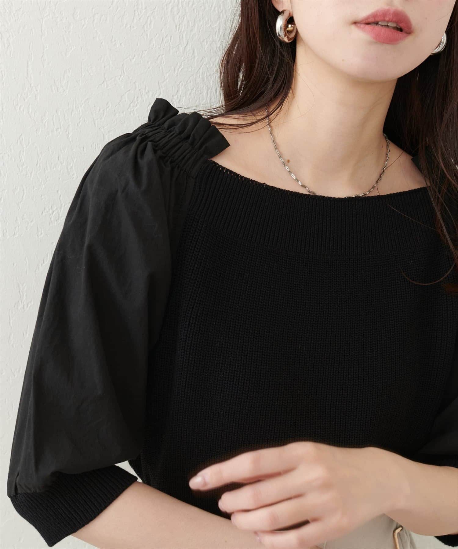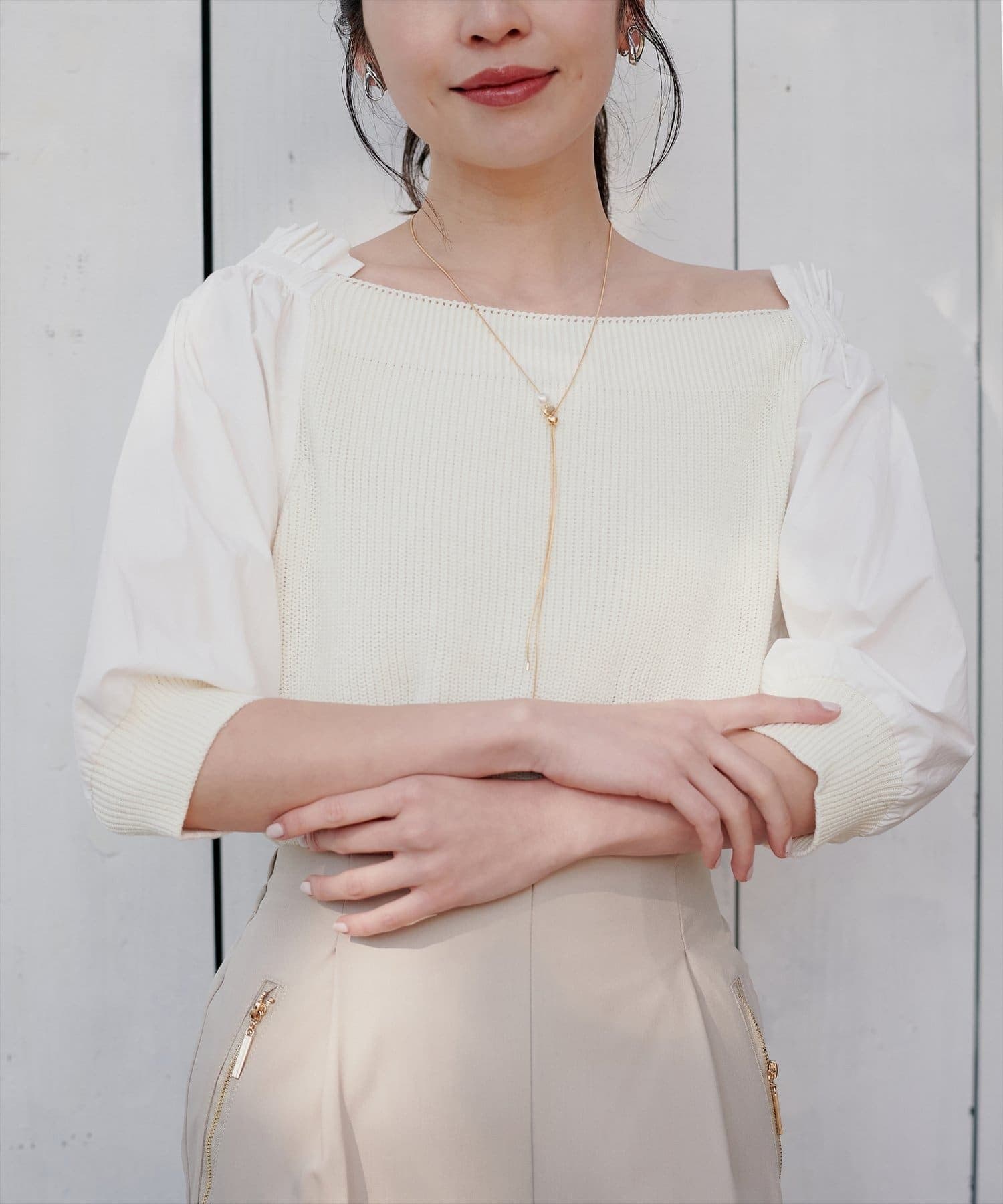【natural couture】2WAY布帛ドッキングニットプルオーバー