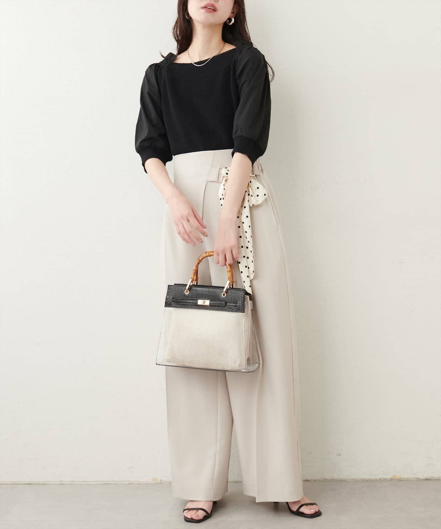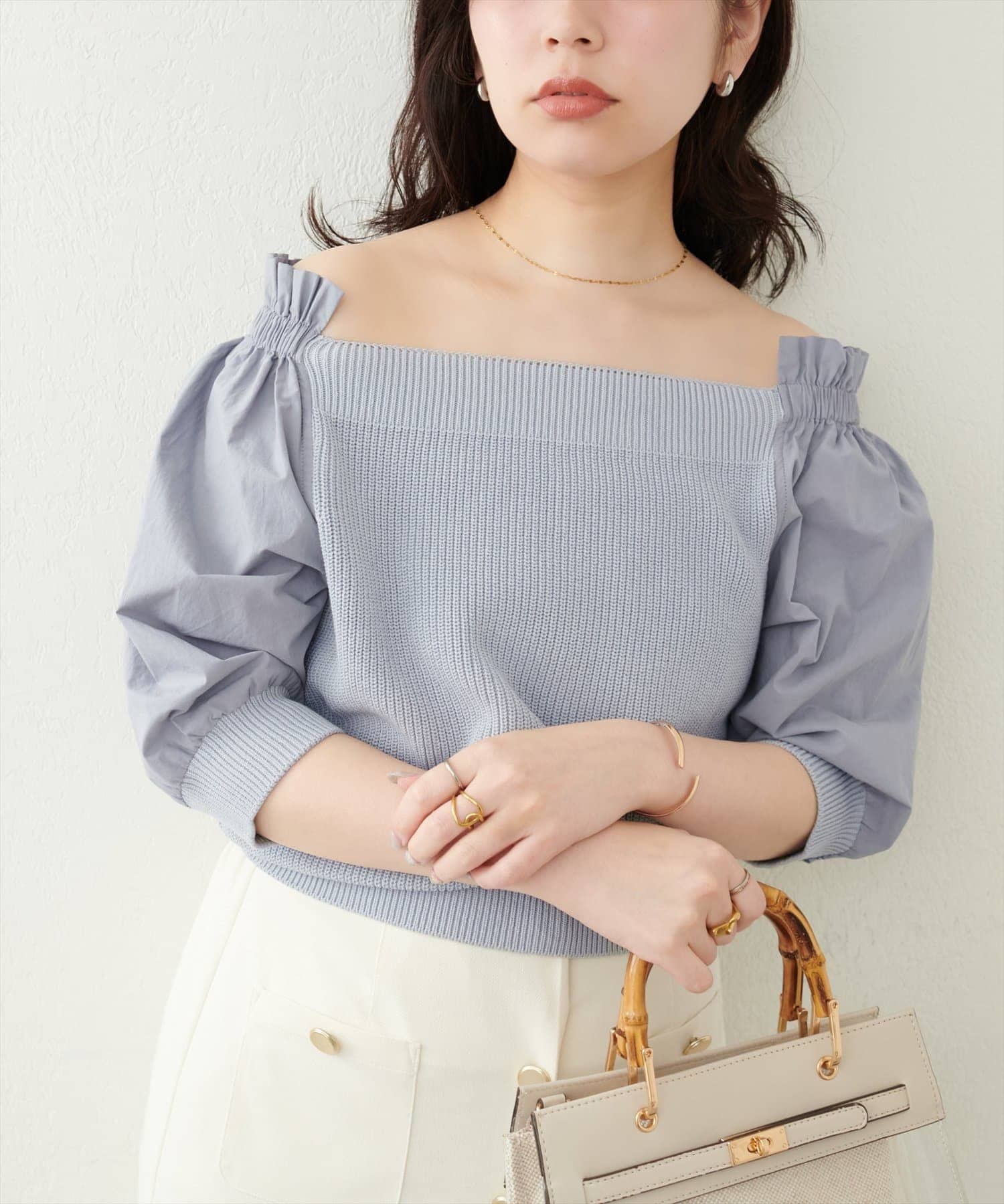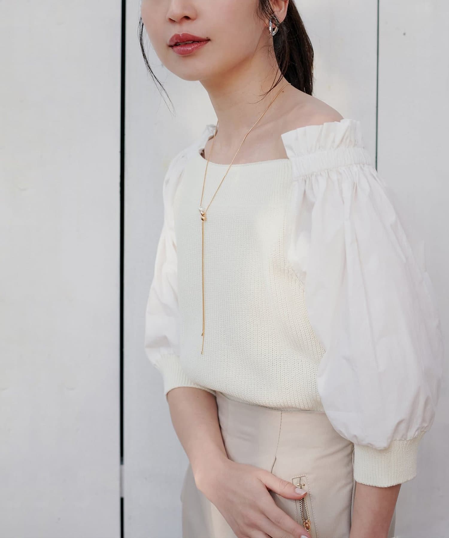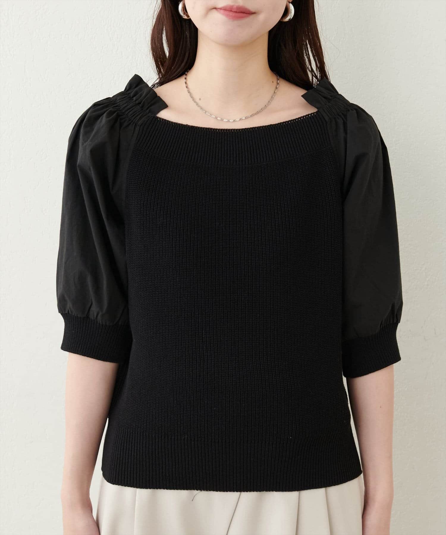 【natural couture】2WAY布帛ドッキングニットプルオーバー
