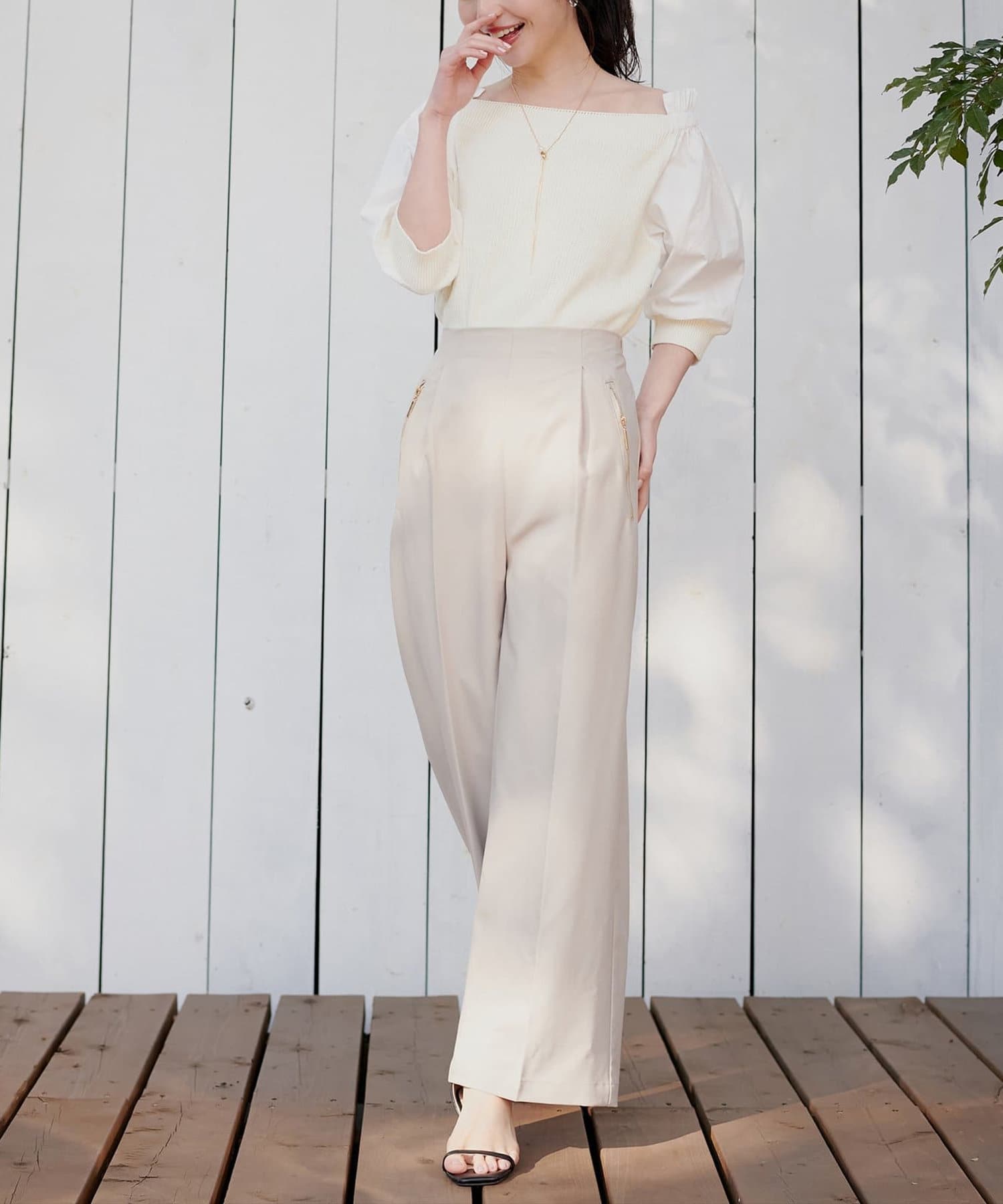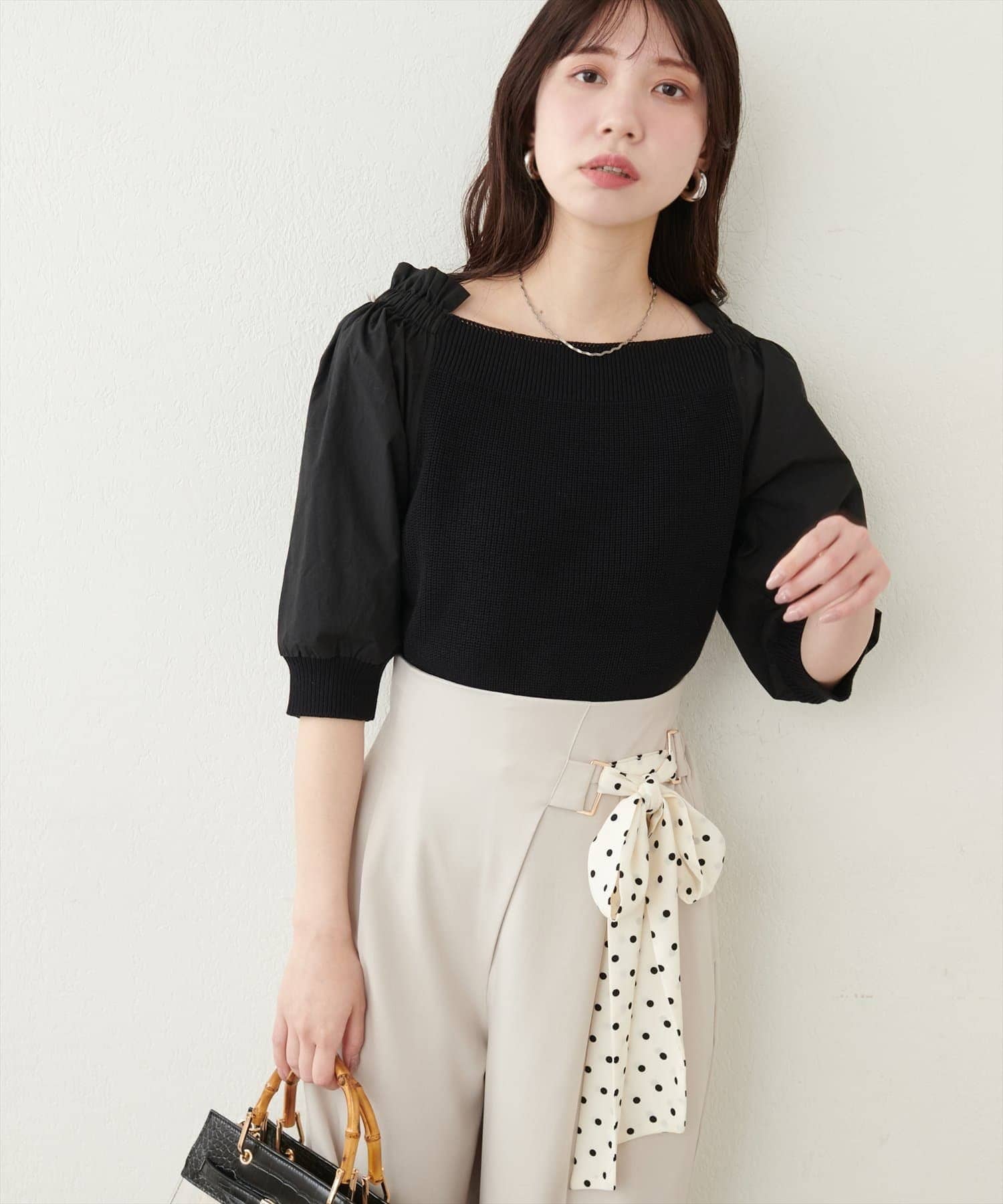 TOP > NICE CLAUP / OLIVE des OLIVE OUTLET > レディース > トップス > ニット/セーター > 【natural couture】2WAY布帛ドッキングニットプルオーバー