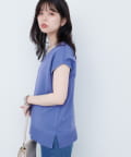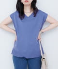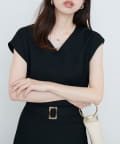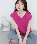 デコルテを美しく見せるVネックラインは、顔周りをすっきりとシャープな印象に。