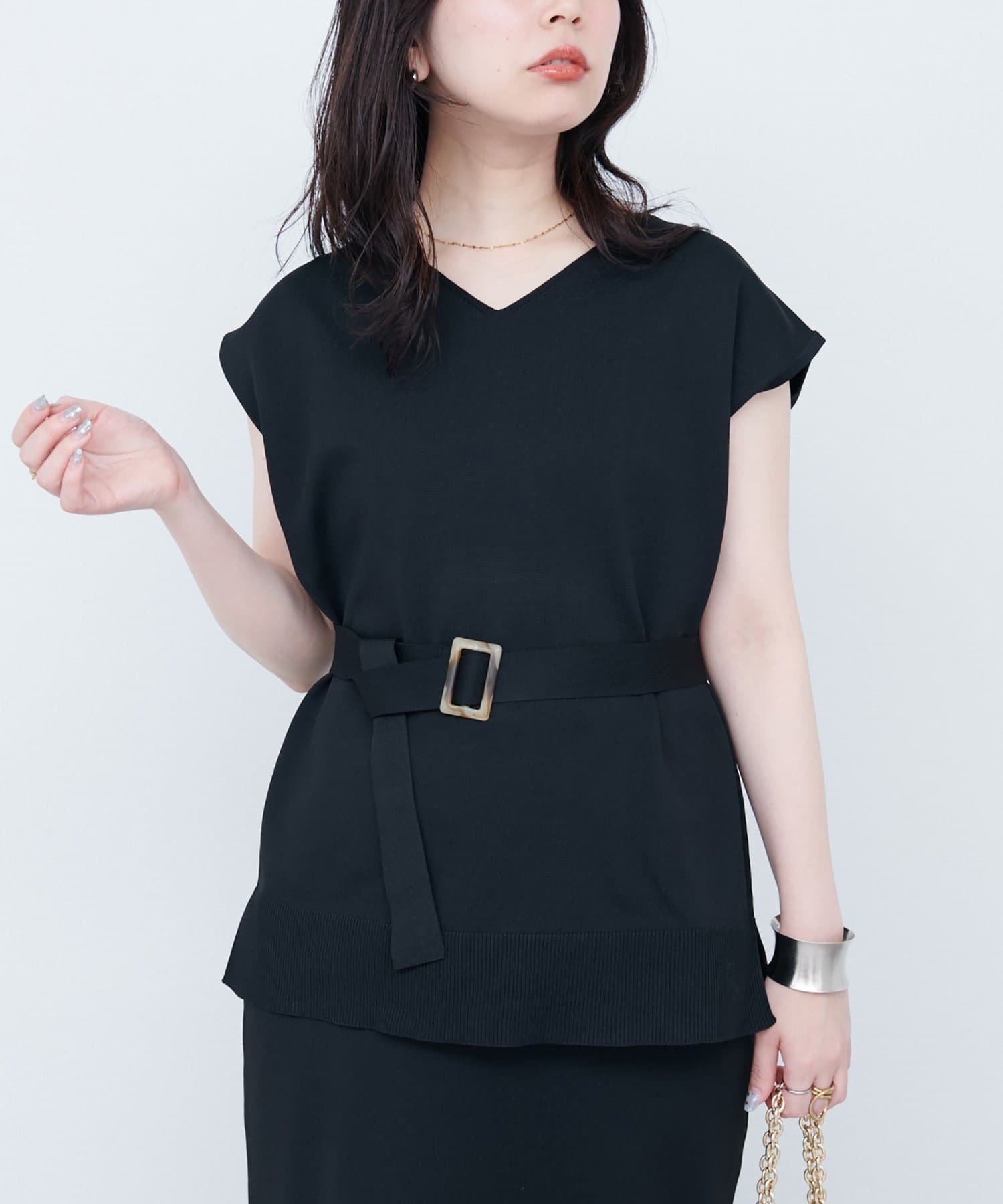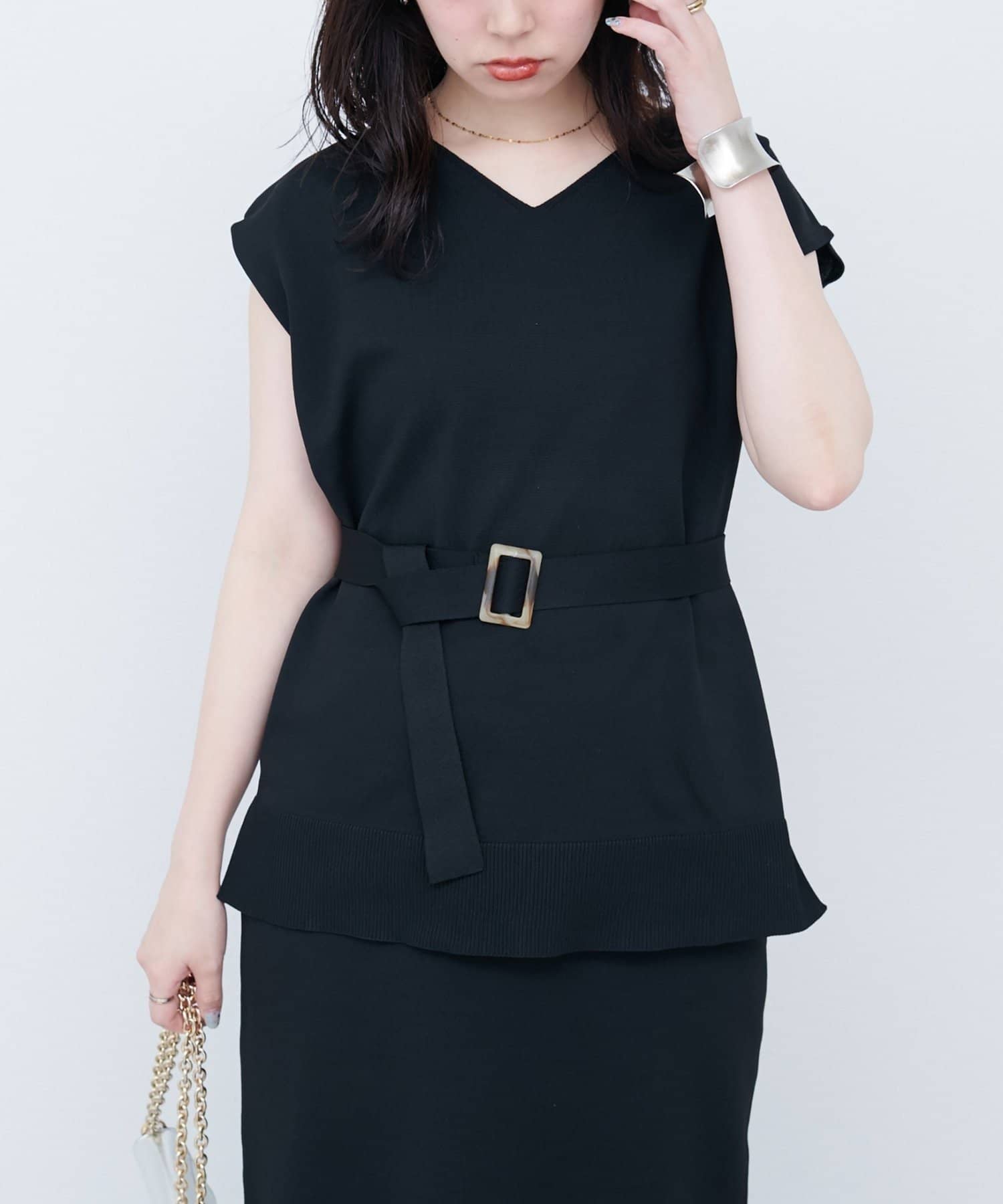 0351010620 セットアップ対応 べっこうベルト付きニットタイトスカート