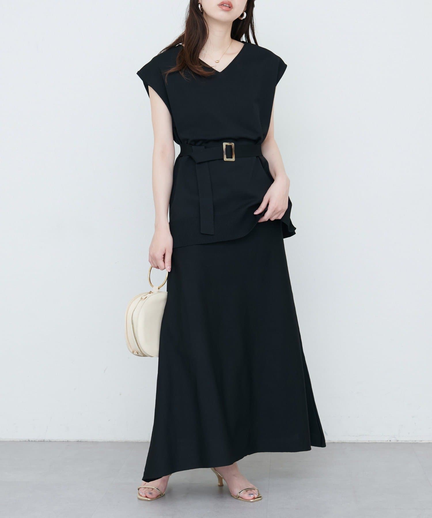 0351010630 セットアップ対応 べっこうベルト付きニットフレアスカート