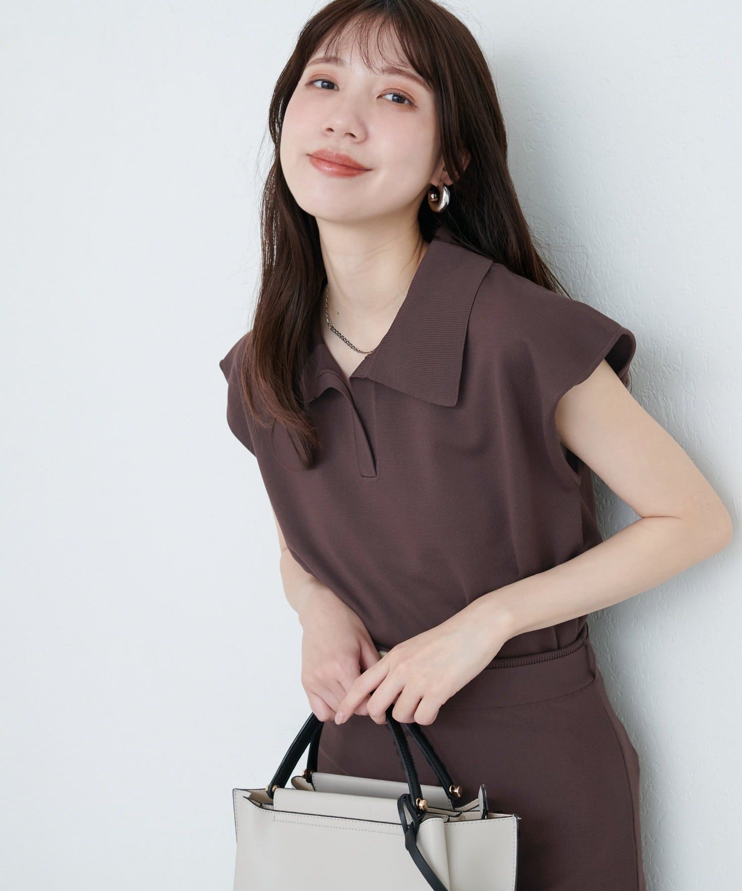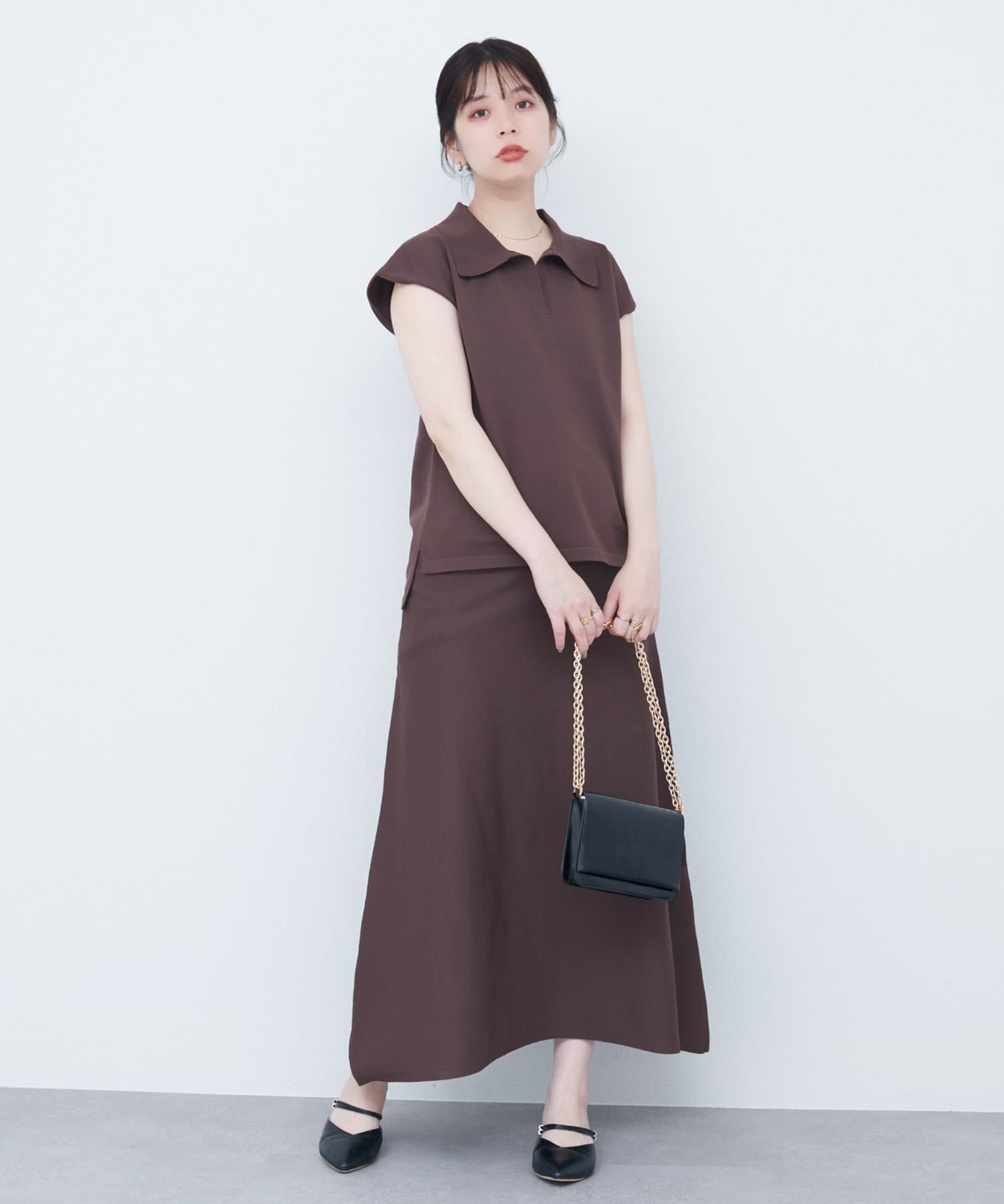 【natural couture】セットアップ対応ニットポロトップス