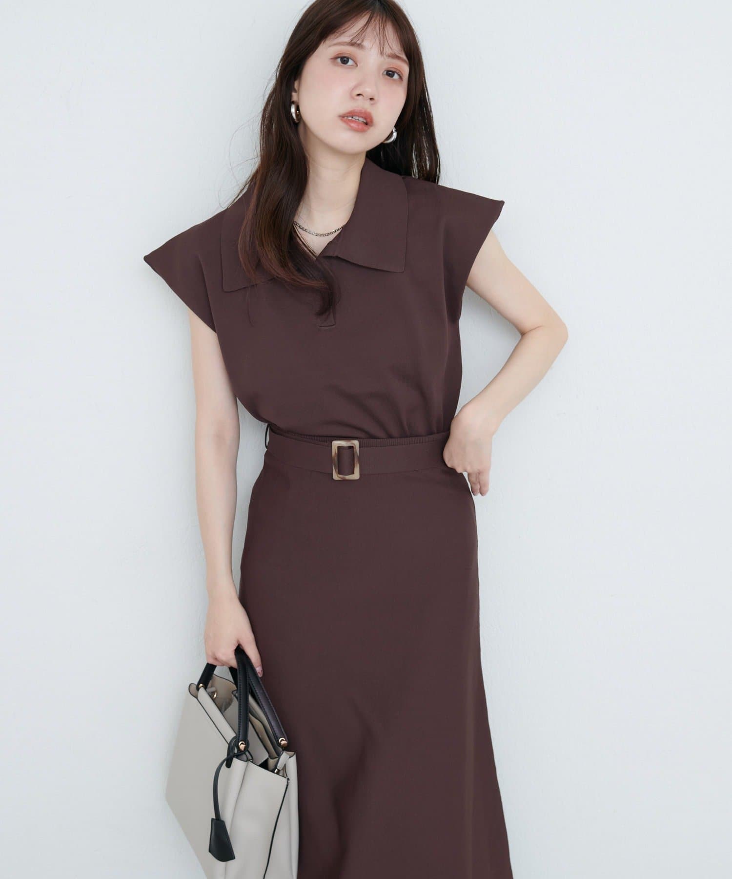 0351010620 セットアップ対応 べっこうベルト付きニットタイトスカート
