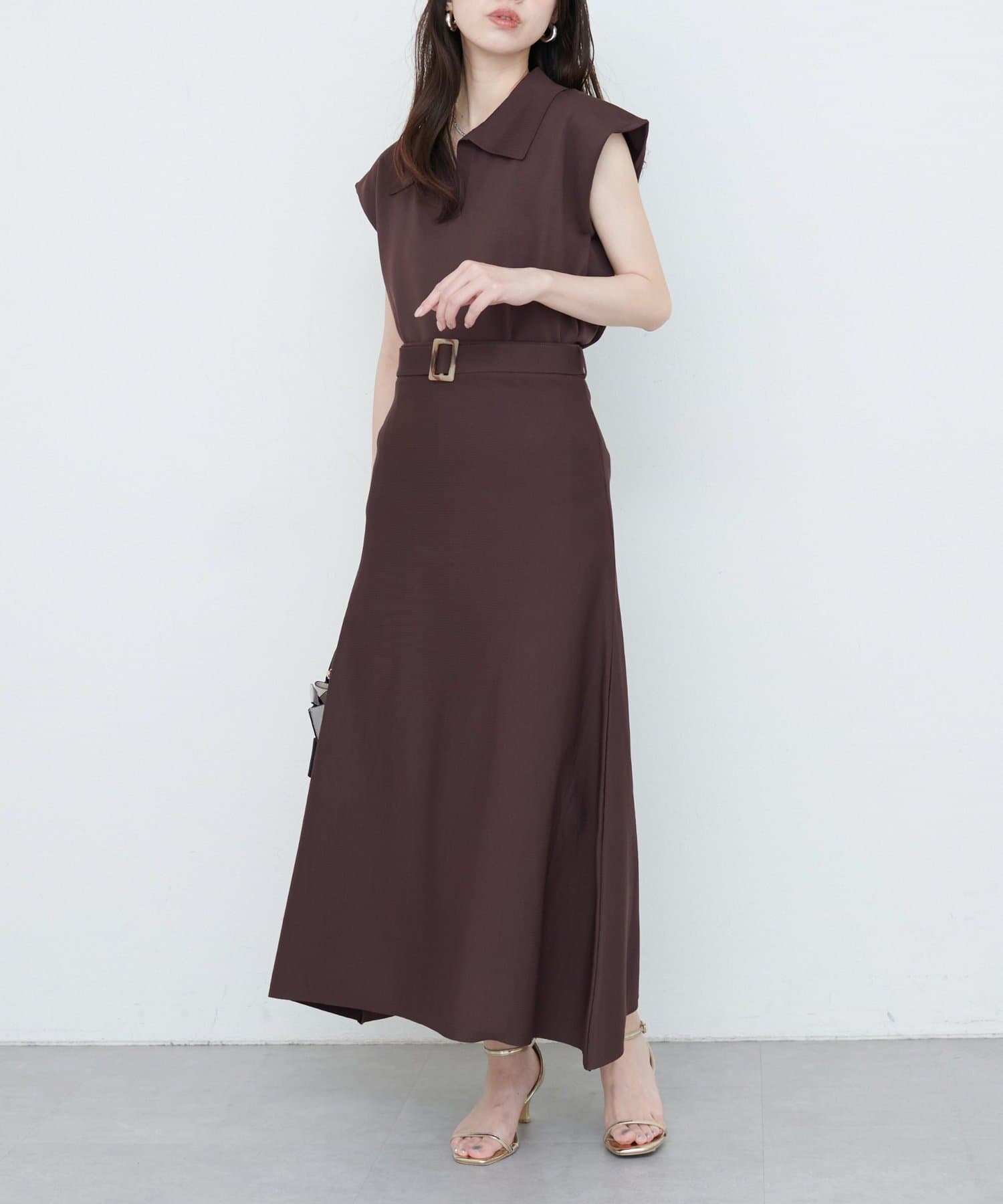 0351010630 セットアップ対応 べっこうベルト付きニットフレアスカート